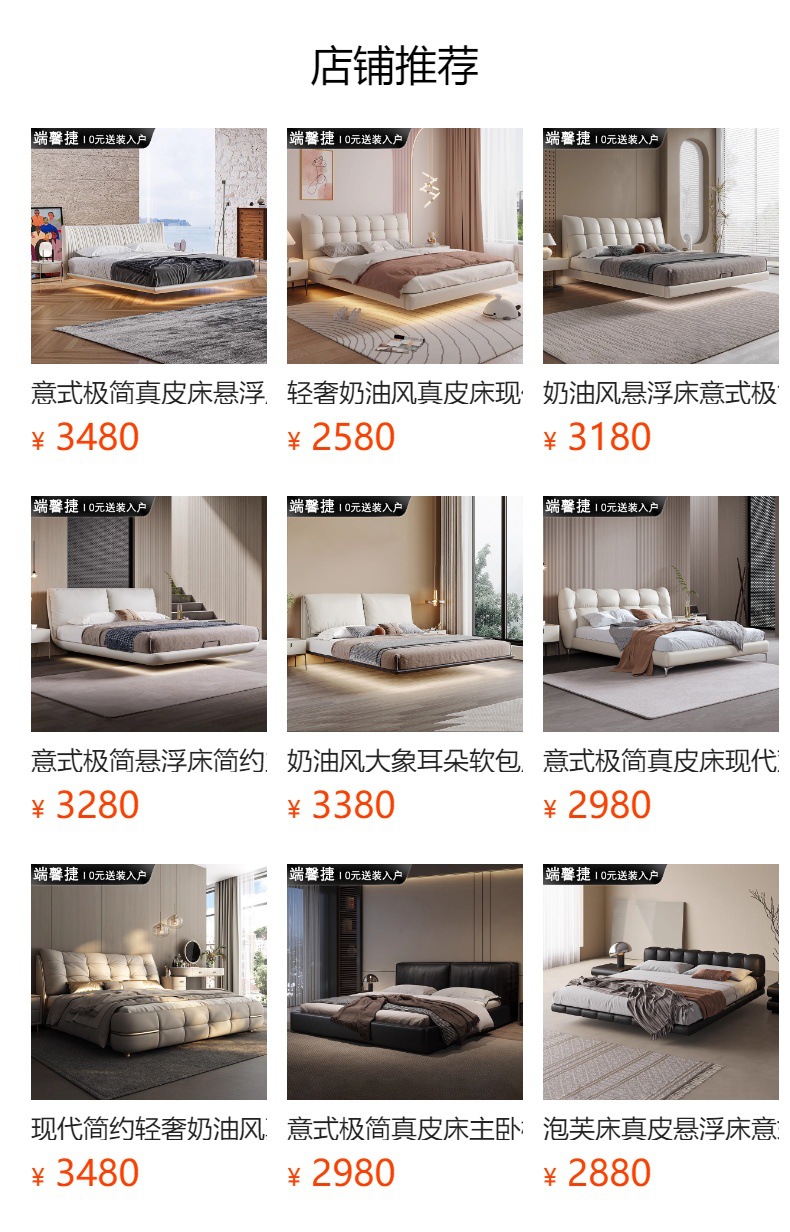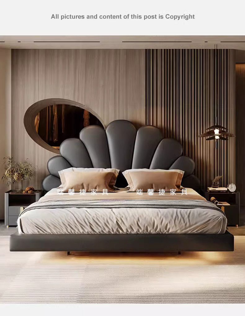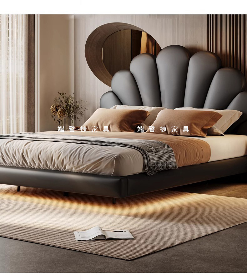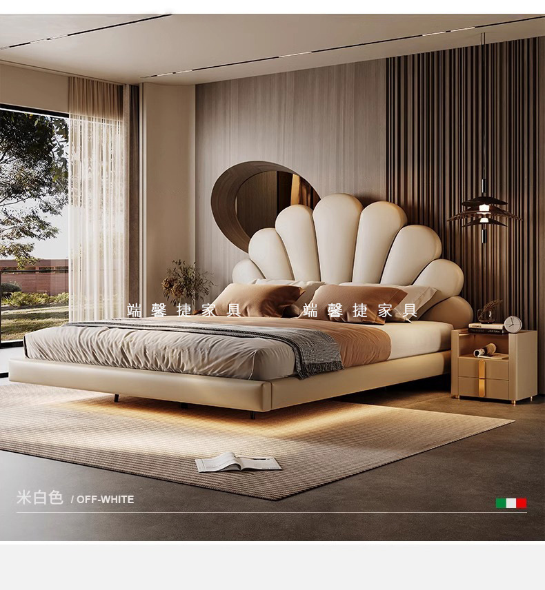 2024 nueva cama flotante italiana cama de cuero minimalista cama principal cama doble 2 * 2 metros