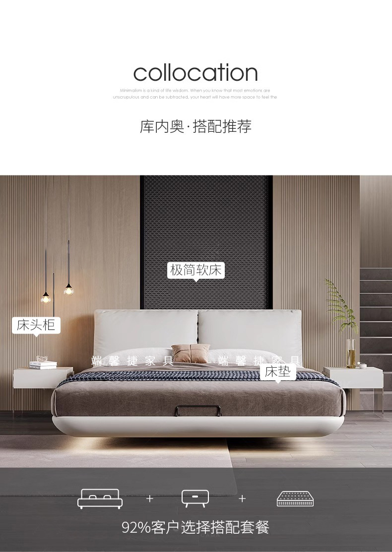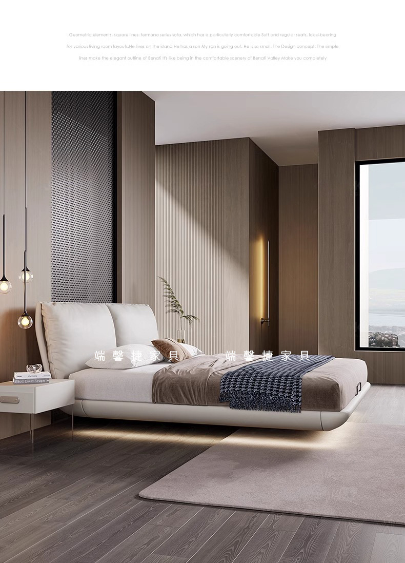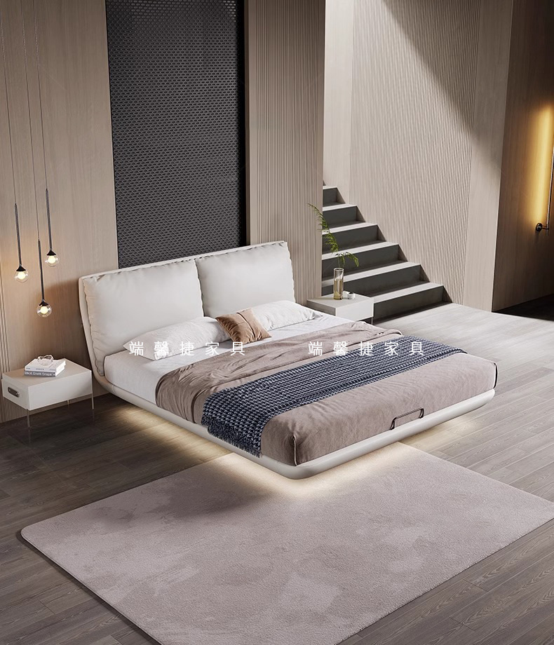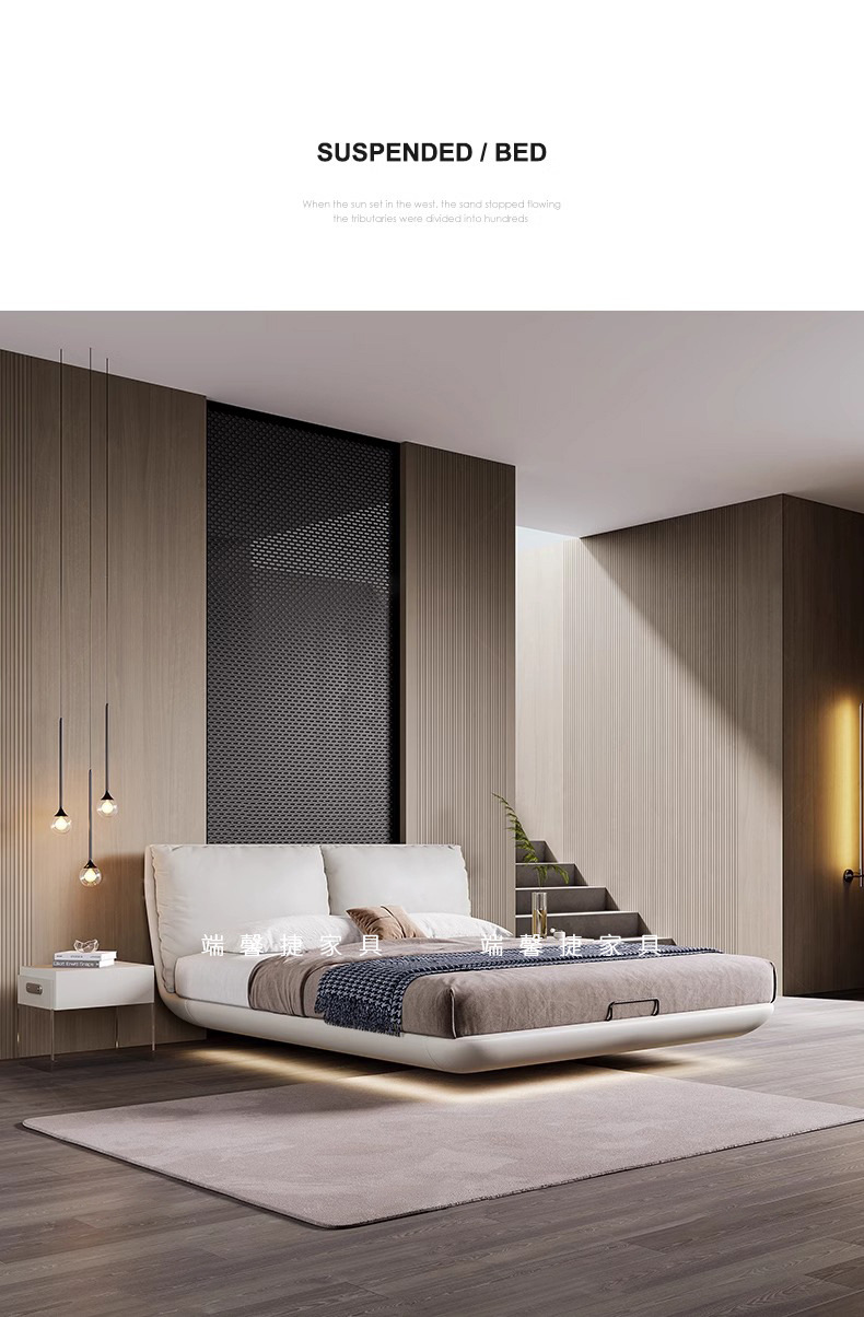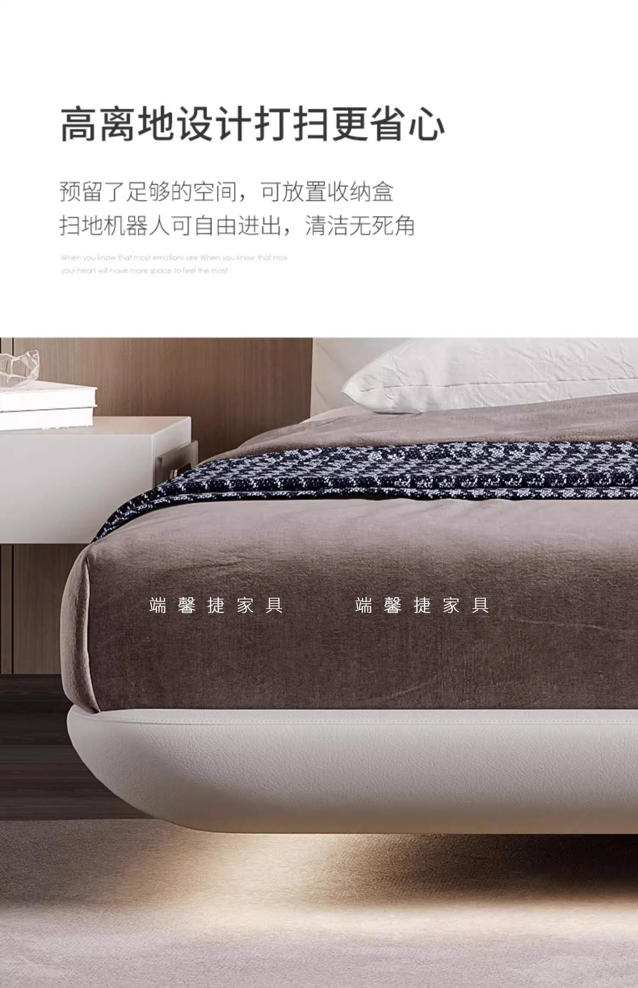 Cama de suspensión minimalista italiana dormitorio principal simple cama de cuero cama de envoltura blanda cama de matrimonio 2 * 2.2m cama doble cama de pluma