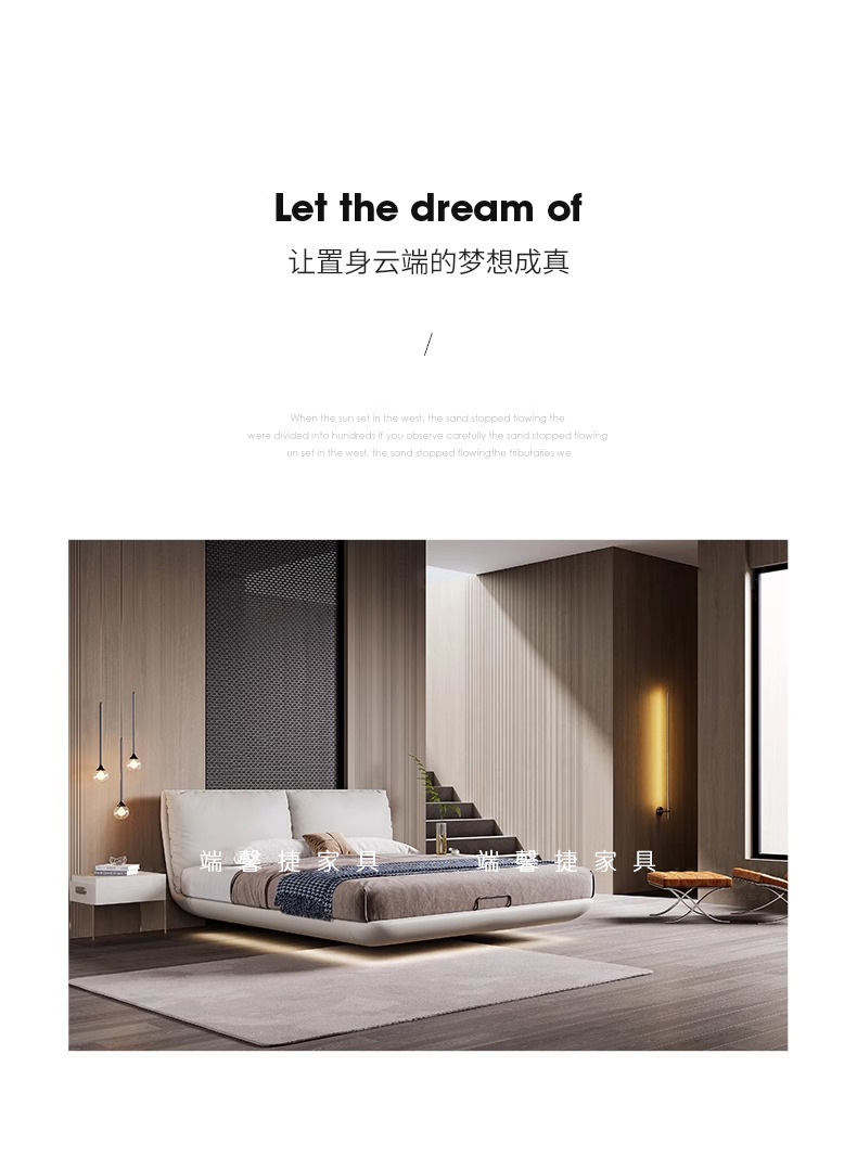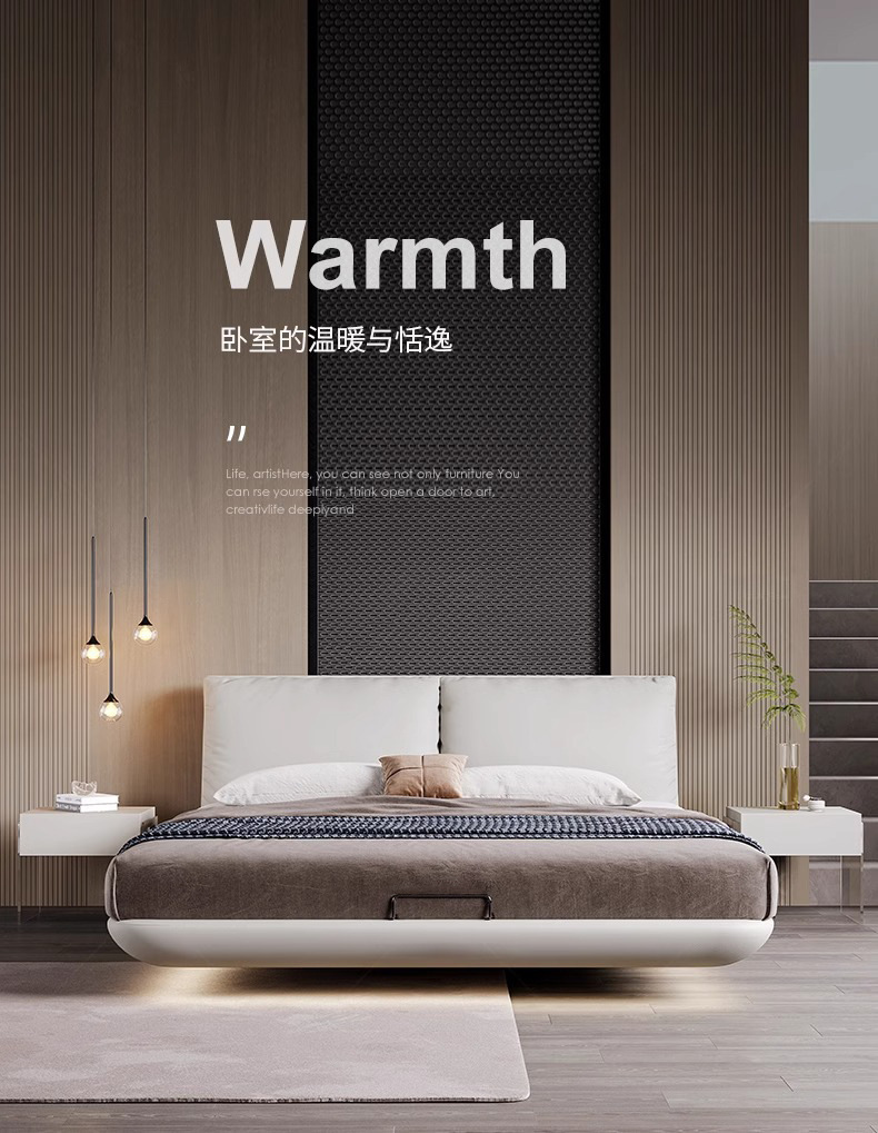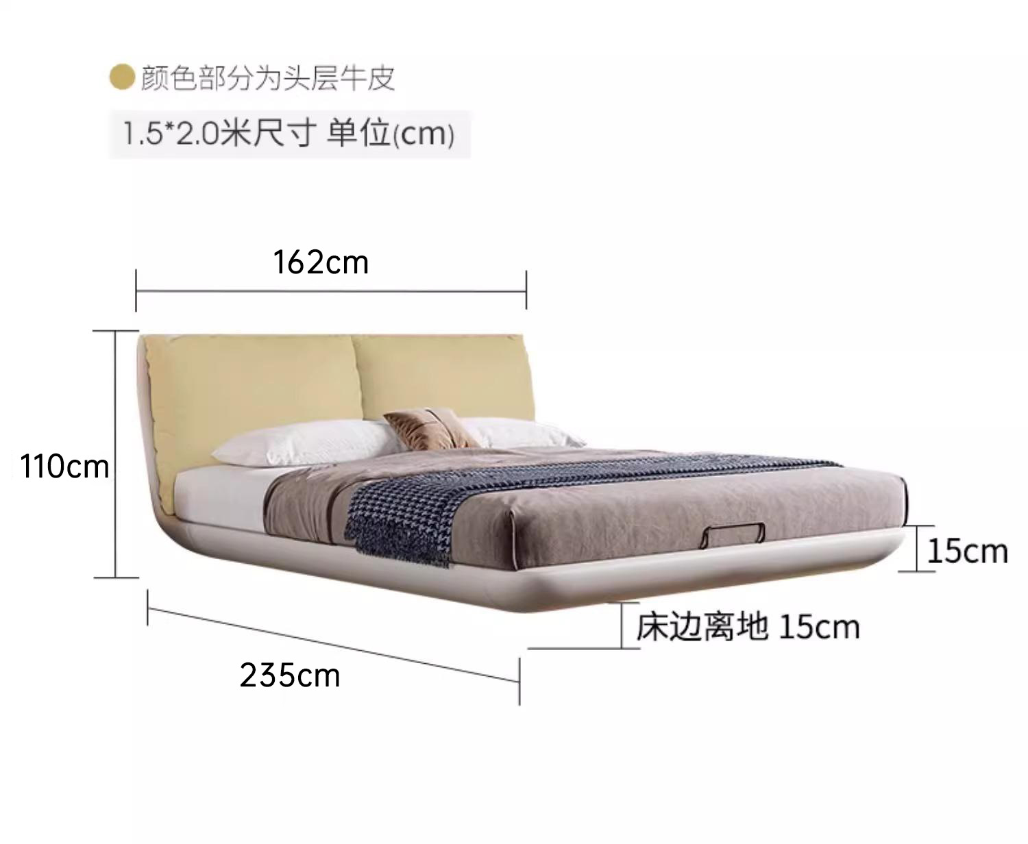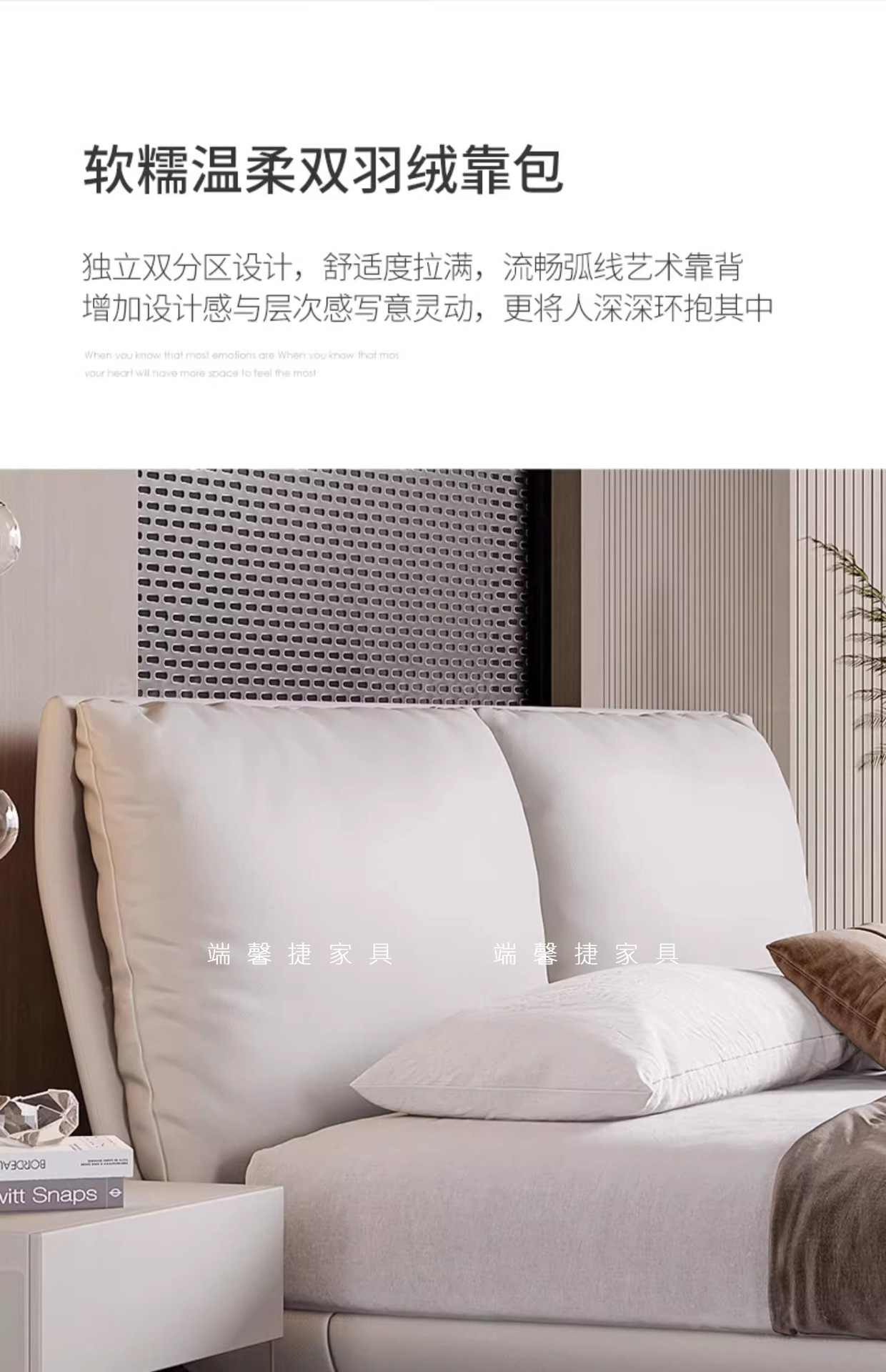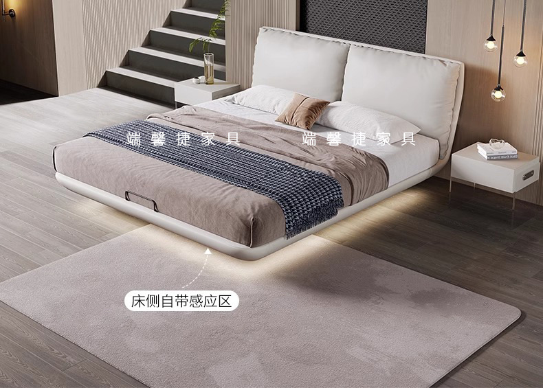 Cama de suspensión minimalista italiana dormitorio principal simple cama de cuero cama de envoltura blanda cama de matrimonio 2 * 2.2m cama doble cama de pluma