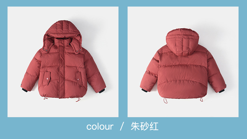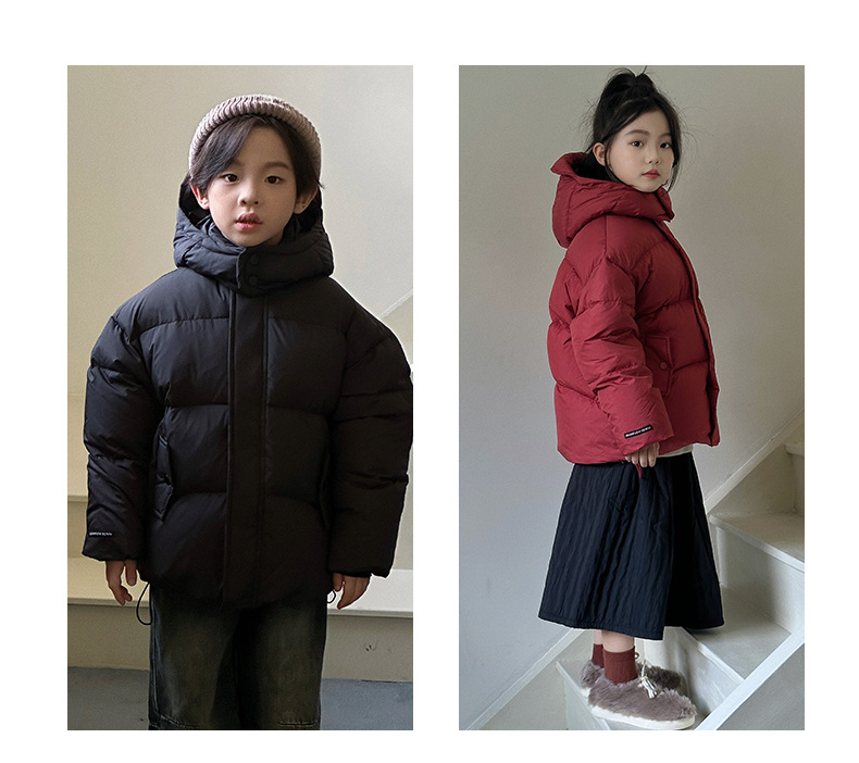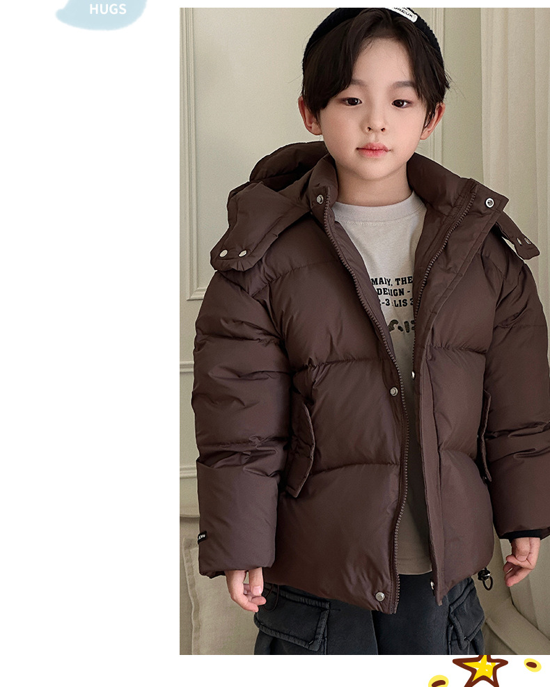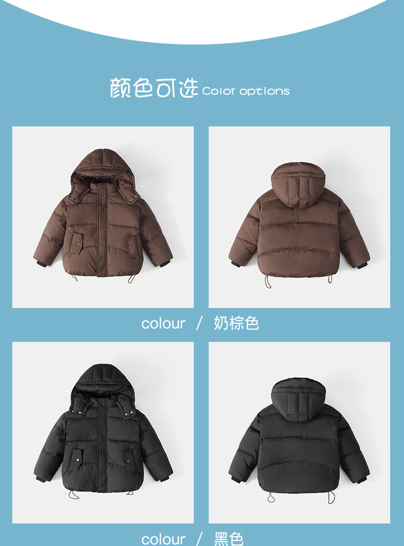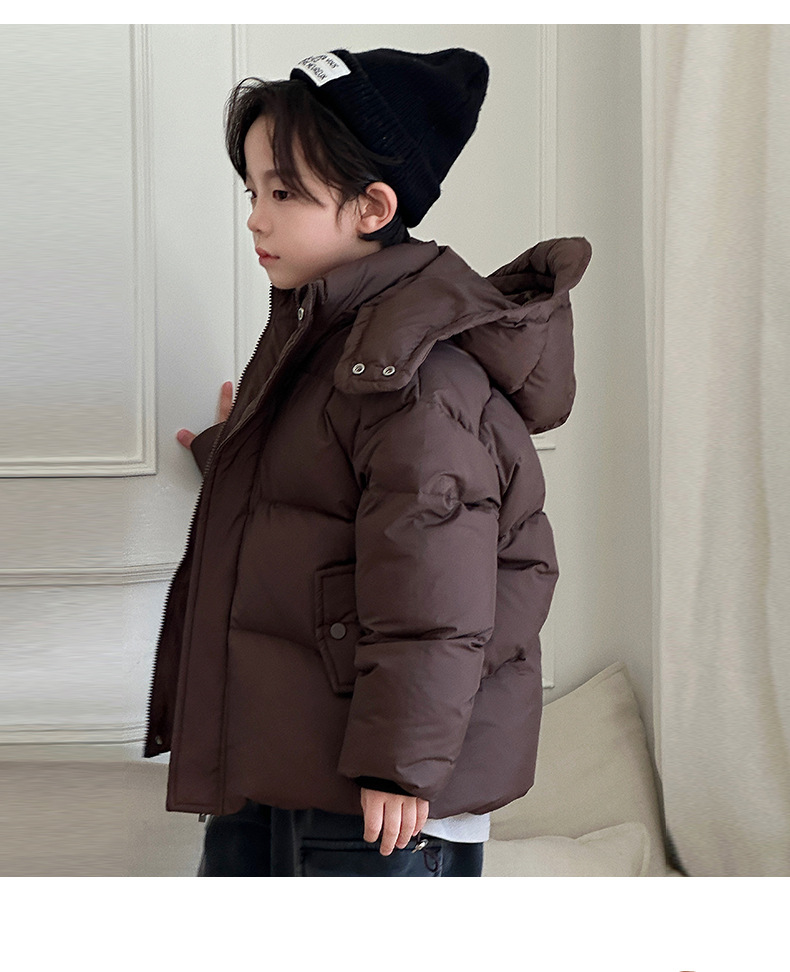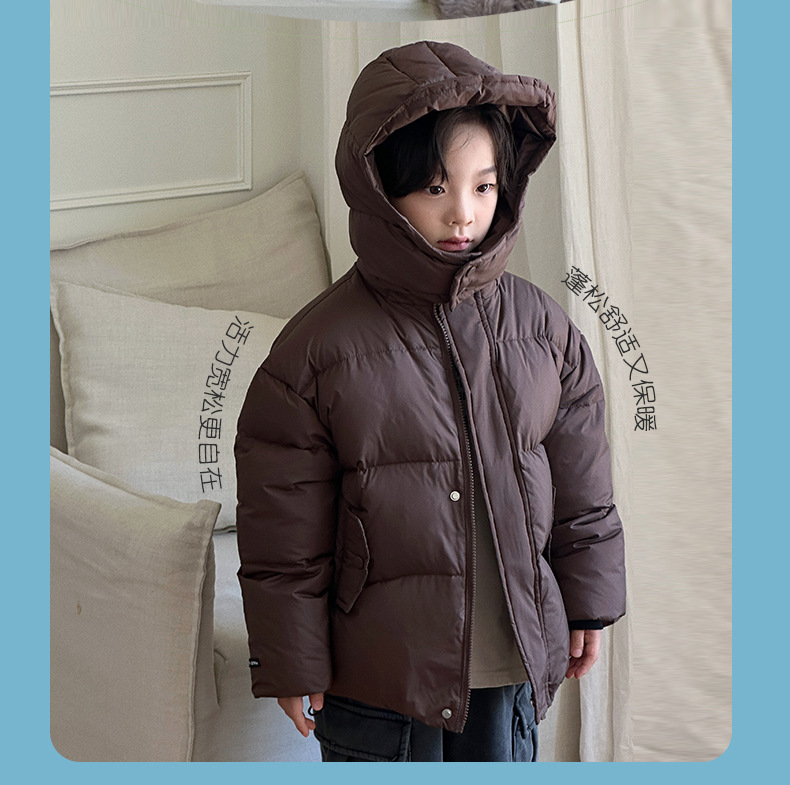 2025 invierno nuevo tipo de ropa infantil para niños niños de tamaño mediano con capuzas gruesas chaqueta de plumón caliente abrigo corto