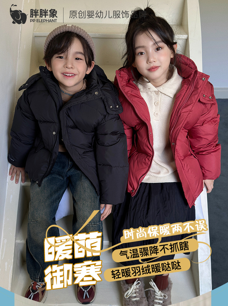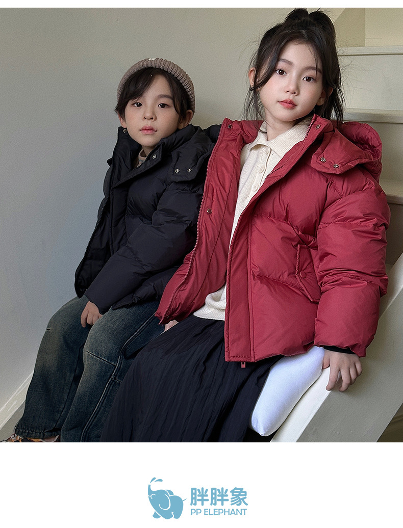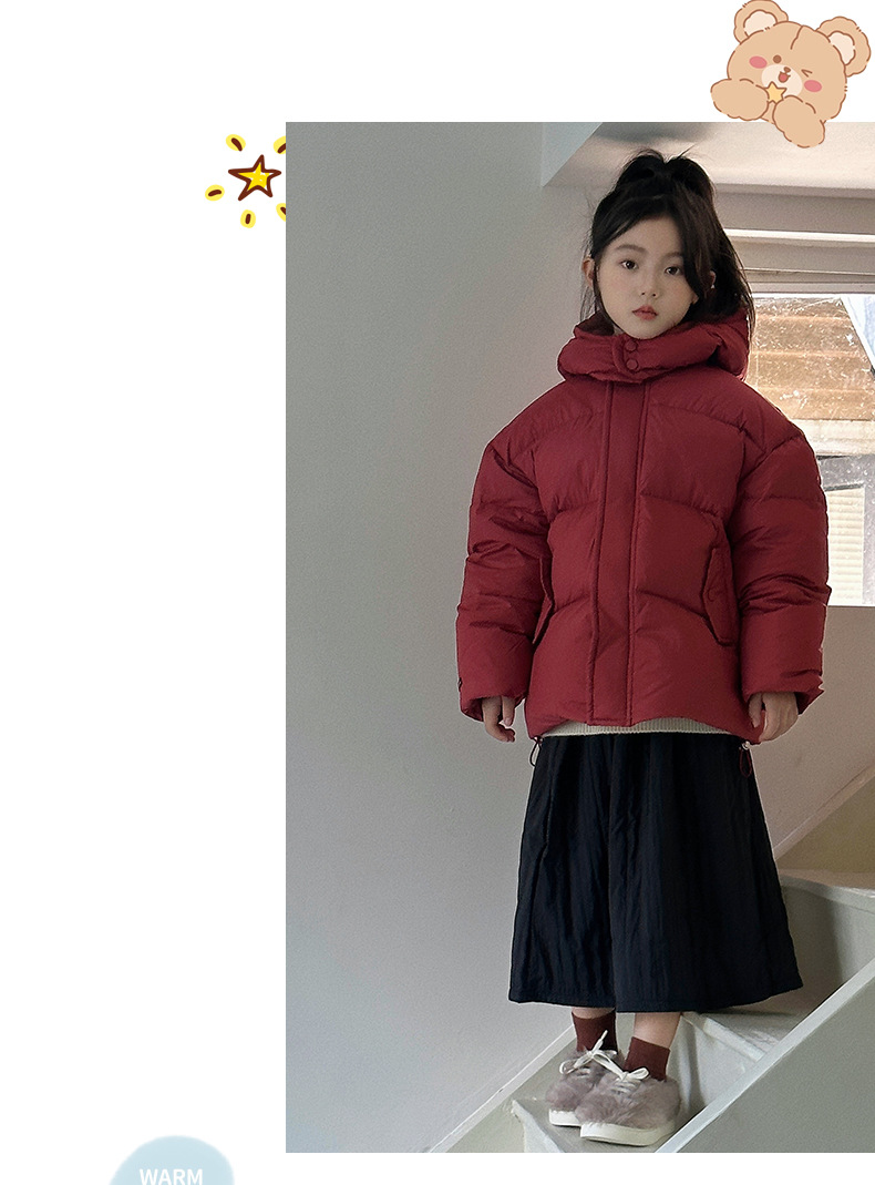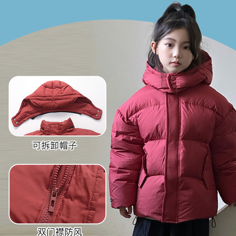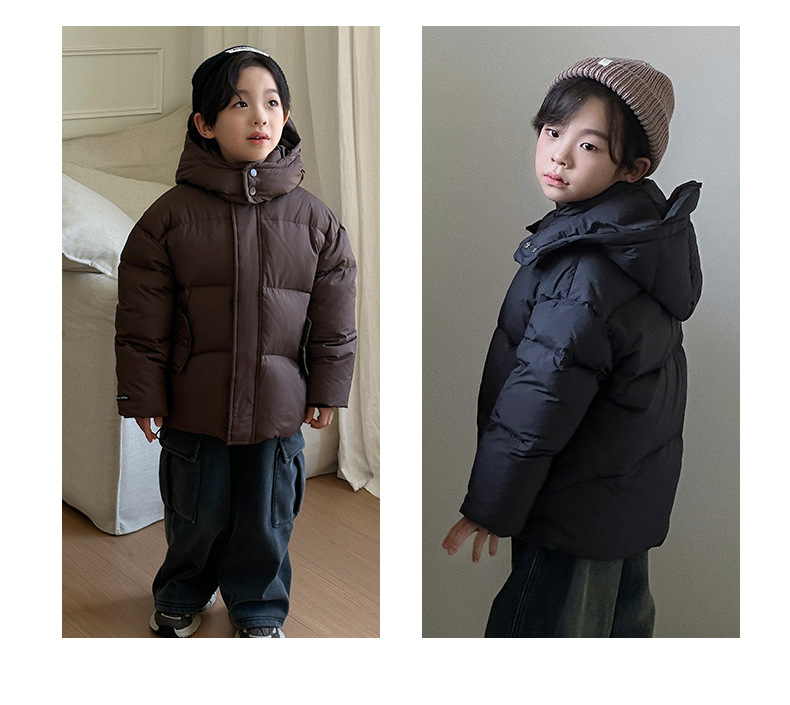 2025 invierno nuevo tipo de ropa infantil para niños niños de tamaño mediano con capuzas gruesas chaqueta de plumón caliente abrigo corto