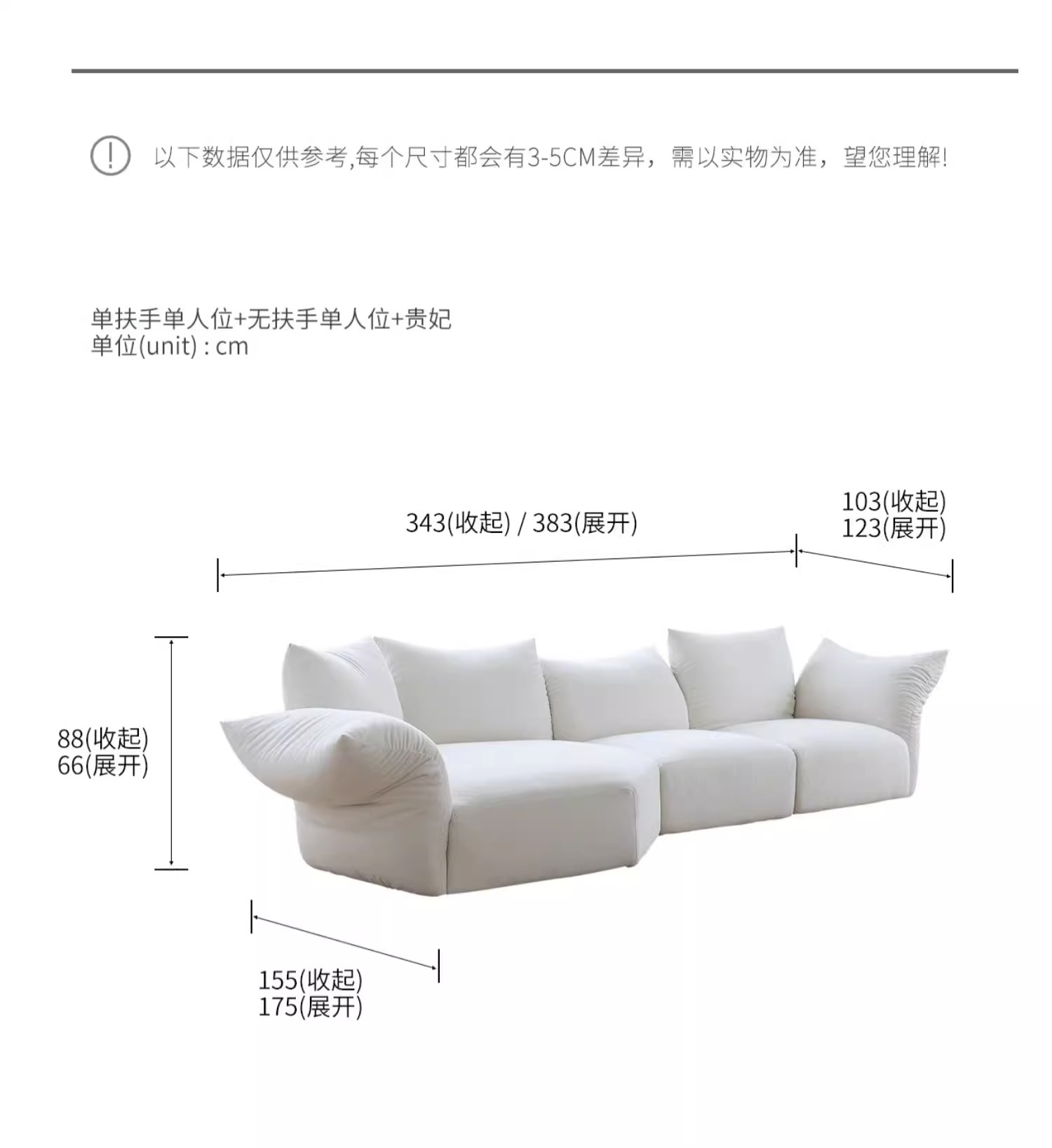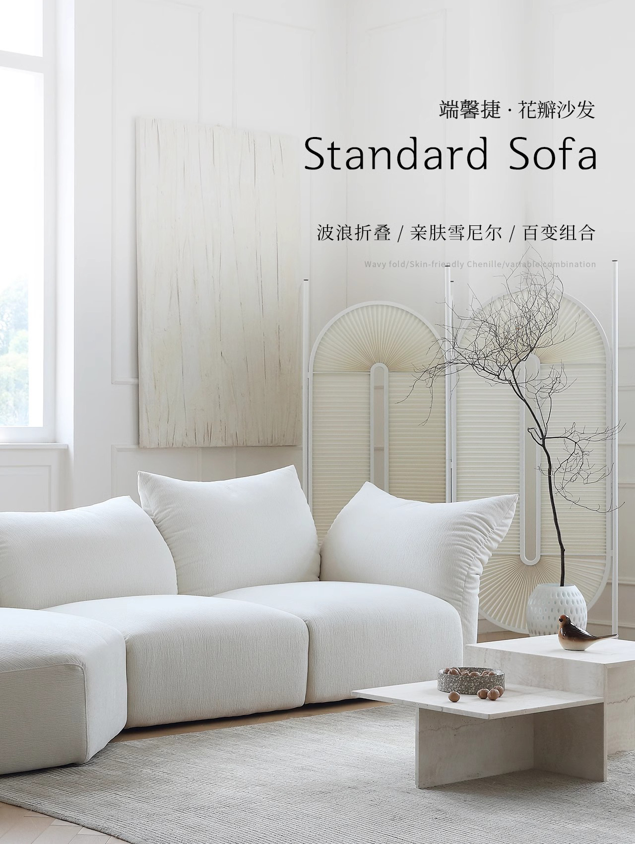 Cream viento pétalos arena moderna minimalista creativo módulo de forma especial sofá de esquina tela sofá villa gran piso plano