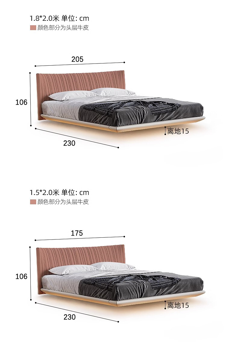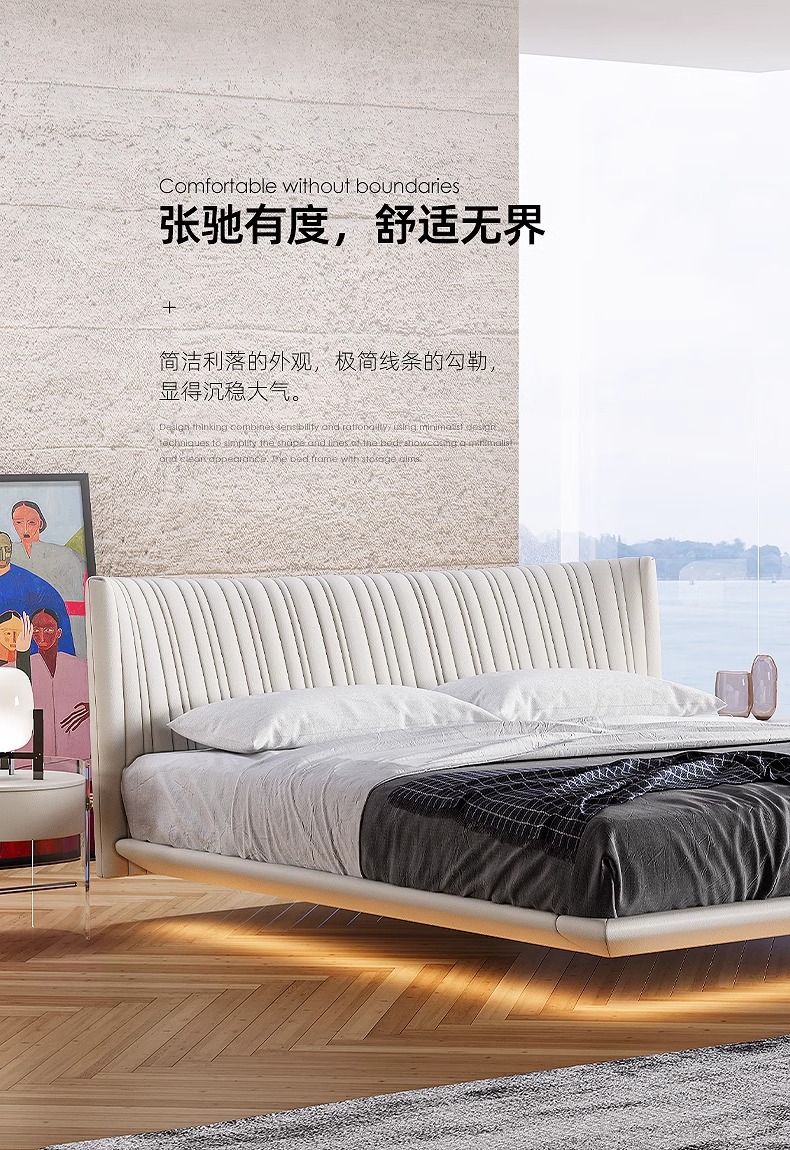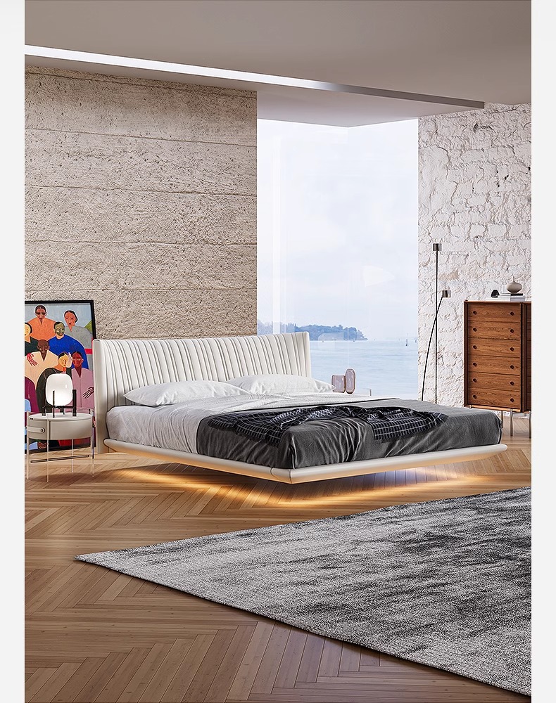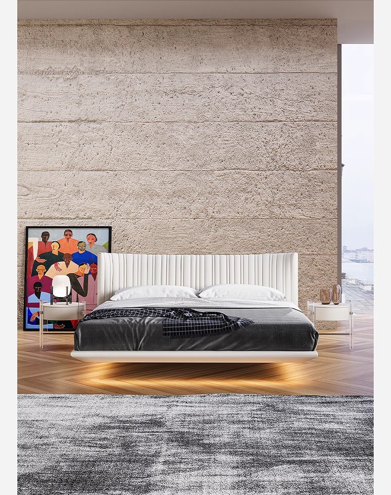 Italiano minimalista cama de cuero genuino cama de suspensión dormitorio principal cama de boda doble 1,8 m cama suave cama de cuero de diseño de alta gama