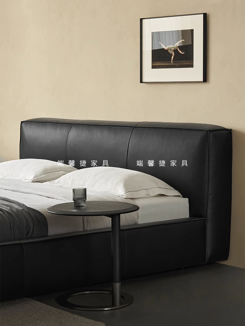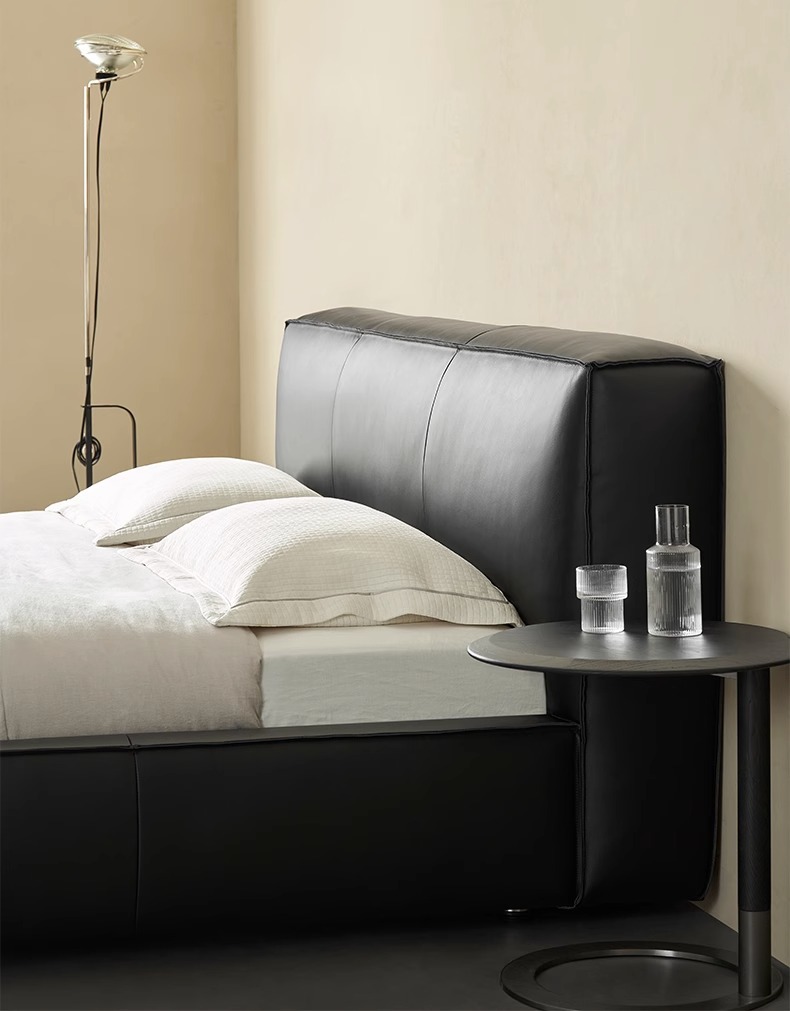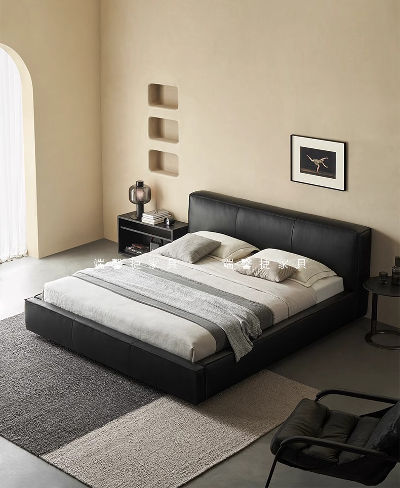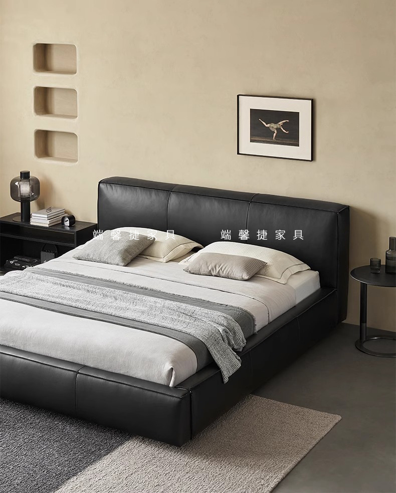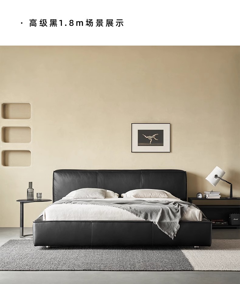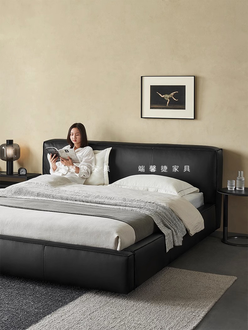 Toast cama de cuero completo negro italiano minimalista dormitorio principal de alta gama elegante cama de cuero real doble 1,8 m bolsa suave cama de boda