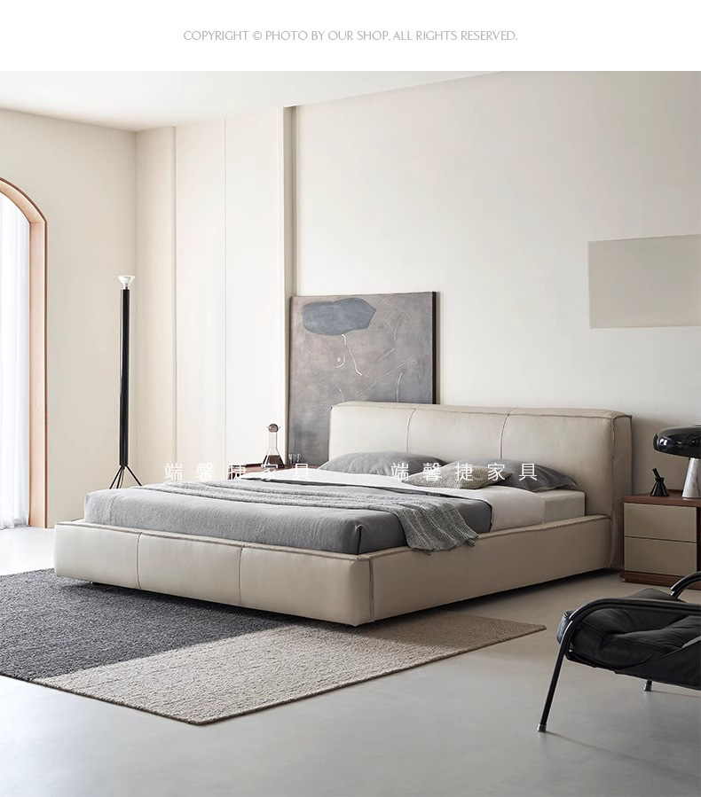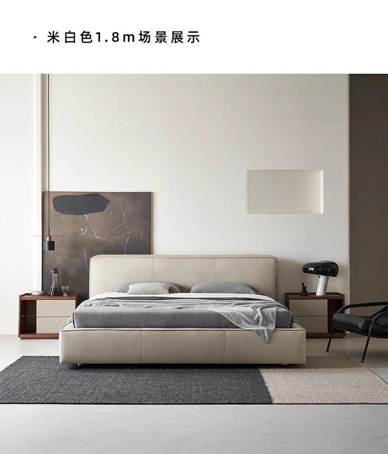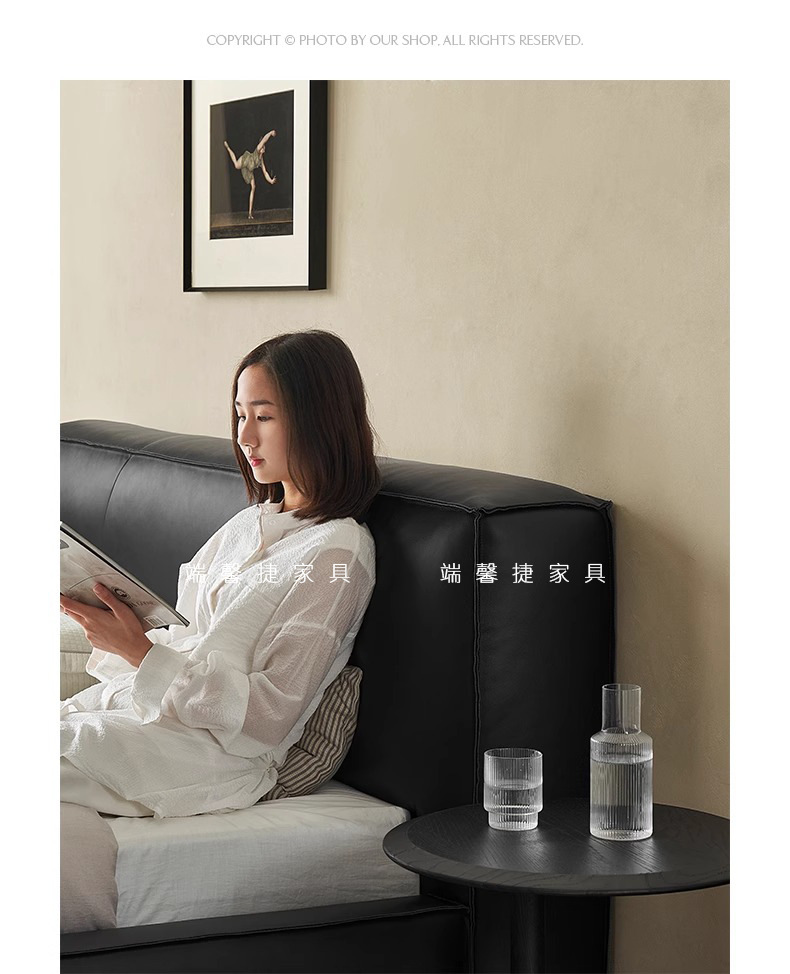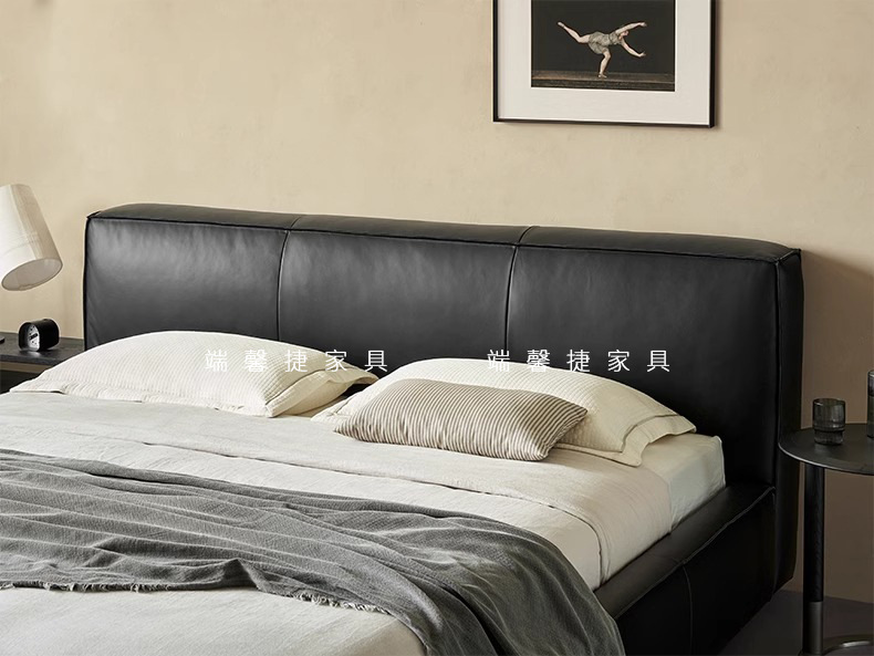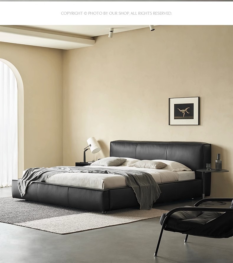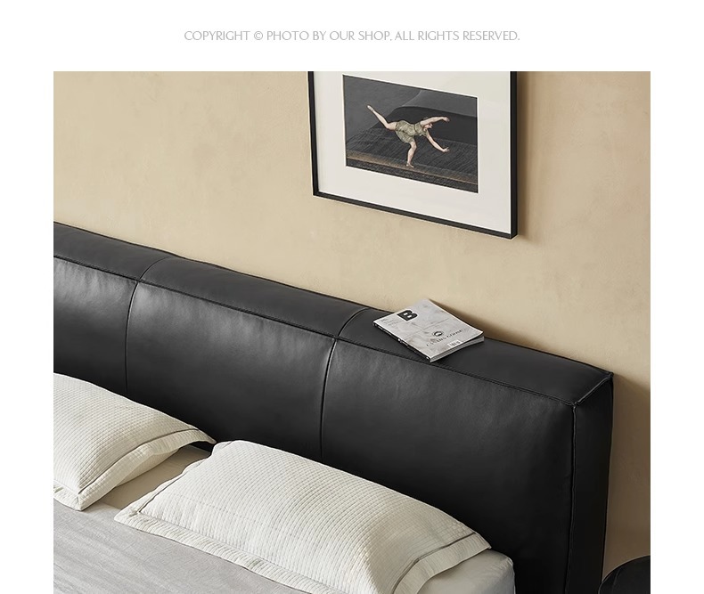 Toast cama de cuero completo negro italiano minimalista dormitorio principal de alta gama elegante cama de cuero real doble 1,8 m bolsa suave cama de boda