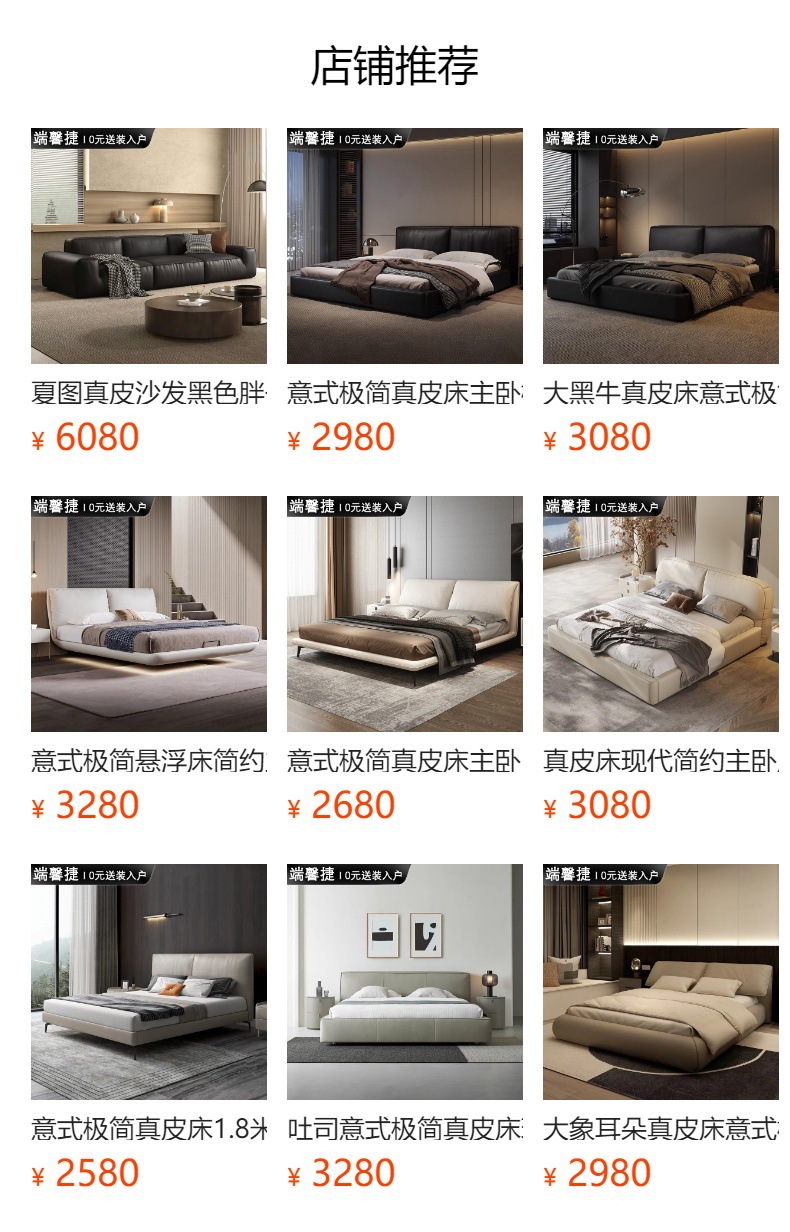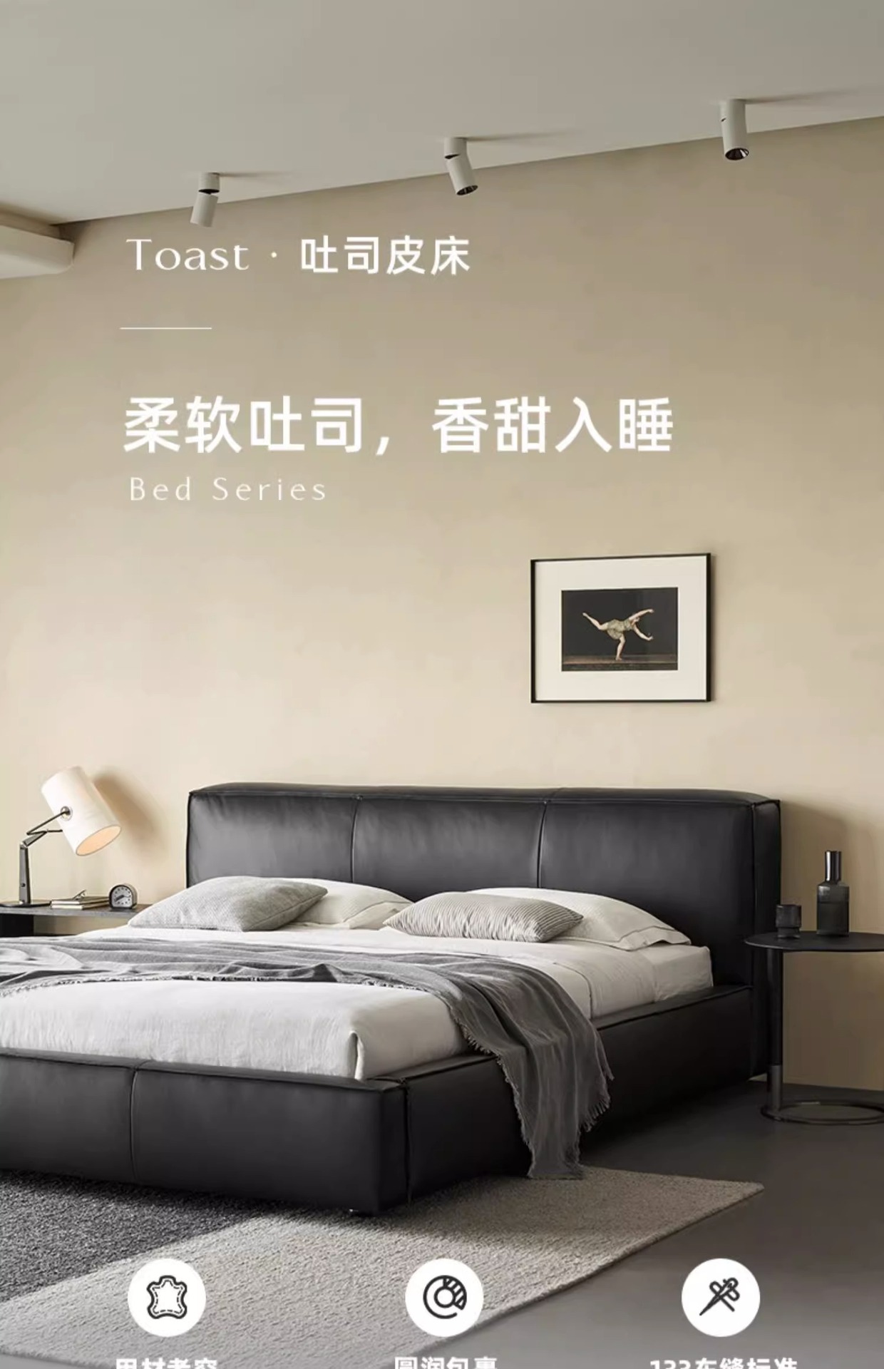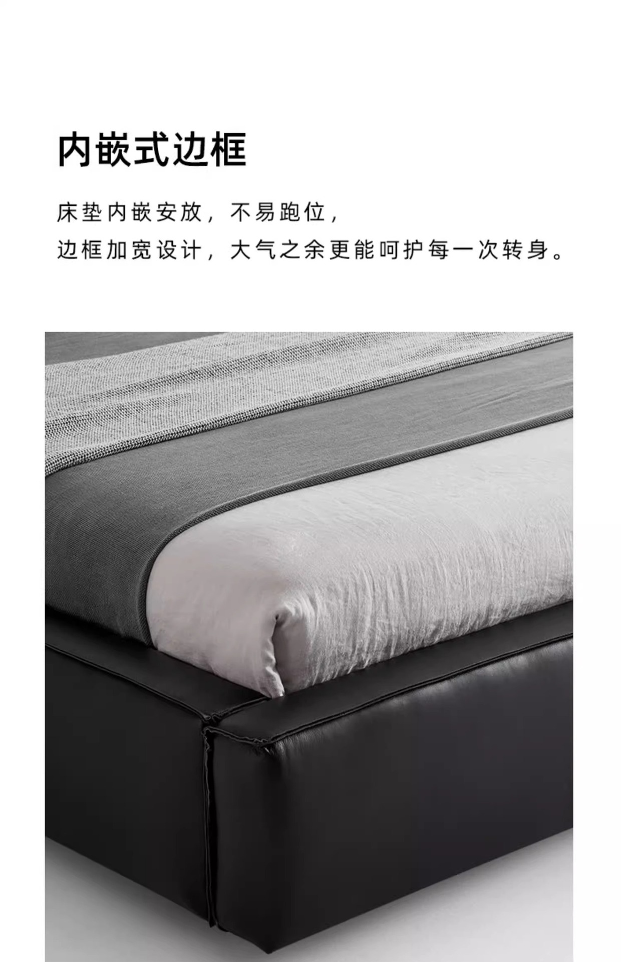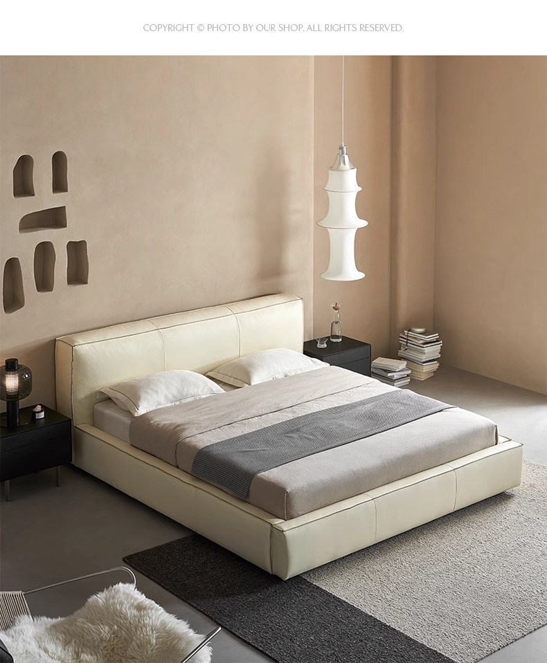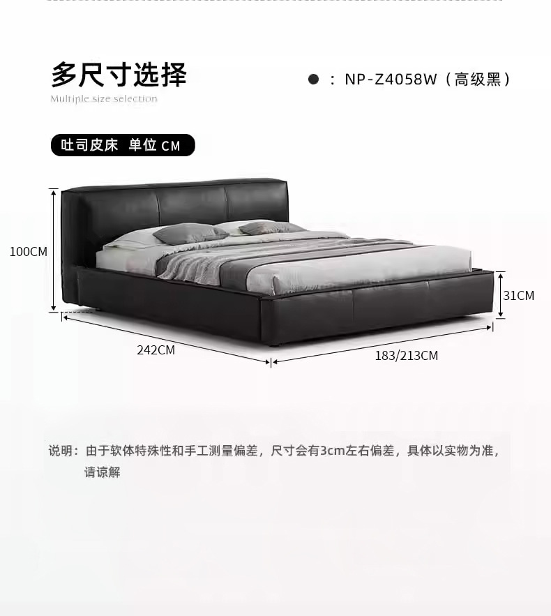 Toast cama de cuero completo negro italiano minimalista dormitorio principal de alta gama elegante cama de cuero real doble 1,8 m bolsa suave cama de boda