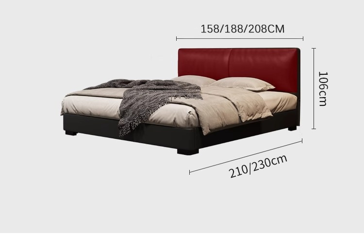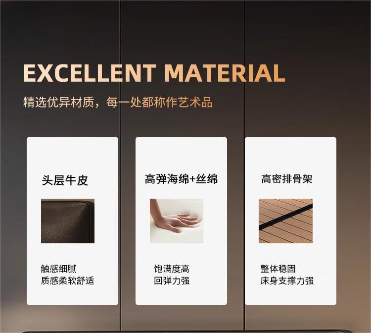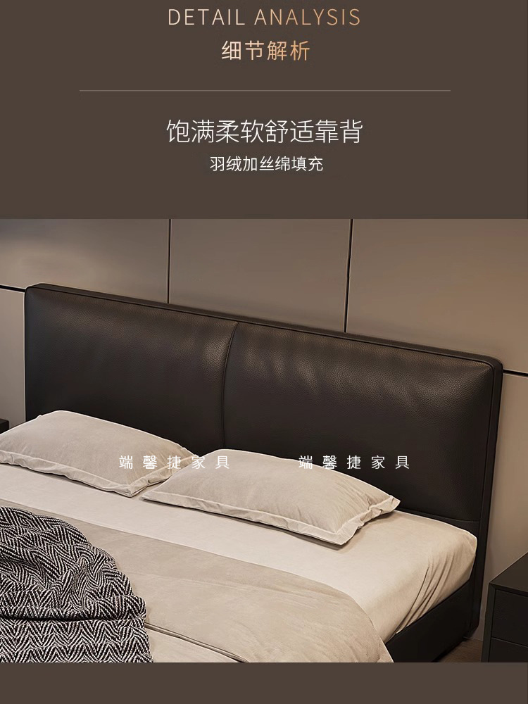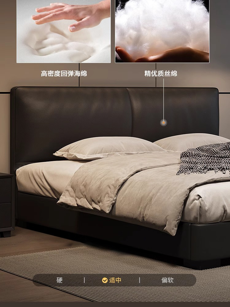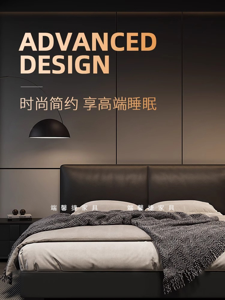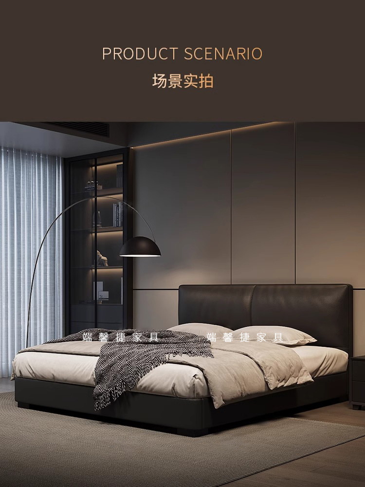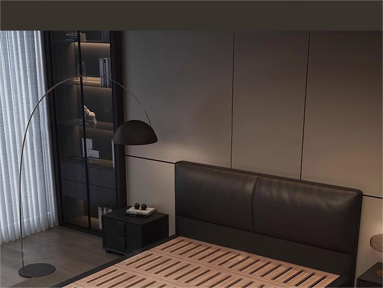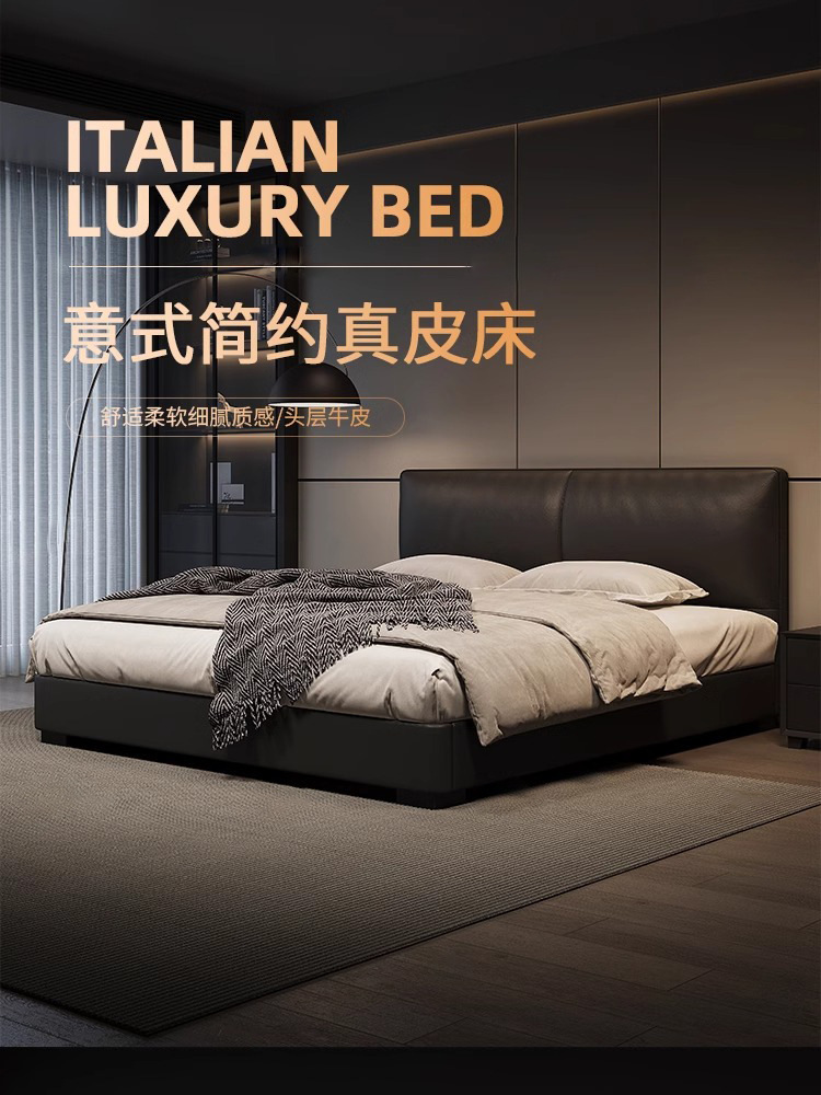 2023 Nueva cama de cuero genuino Cama doble minimalista italiana Cama de cuero negro minimalista moderna Cama de dormitorio principal Cama de boda de 1,8 m