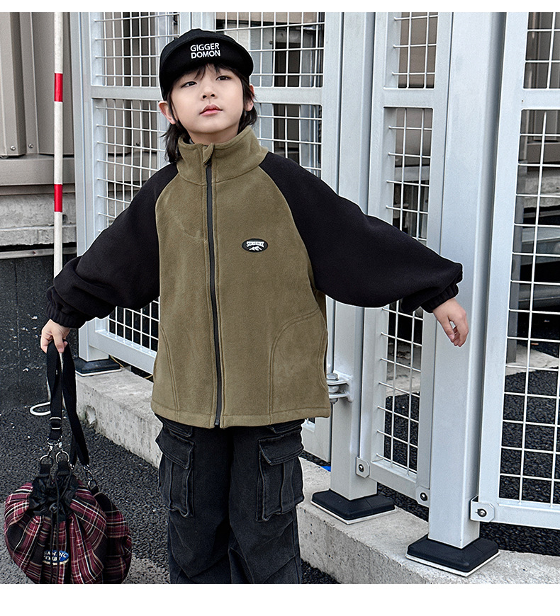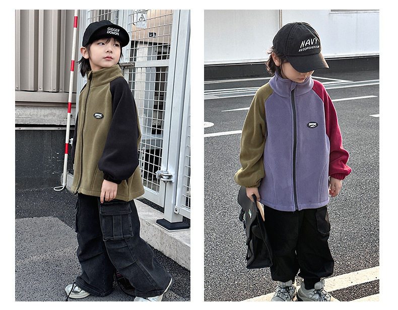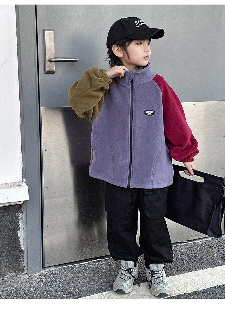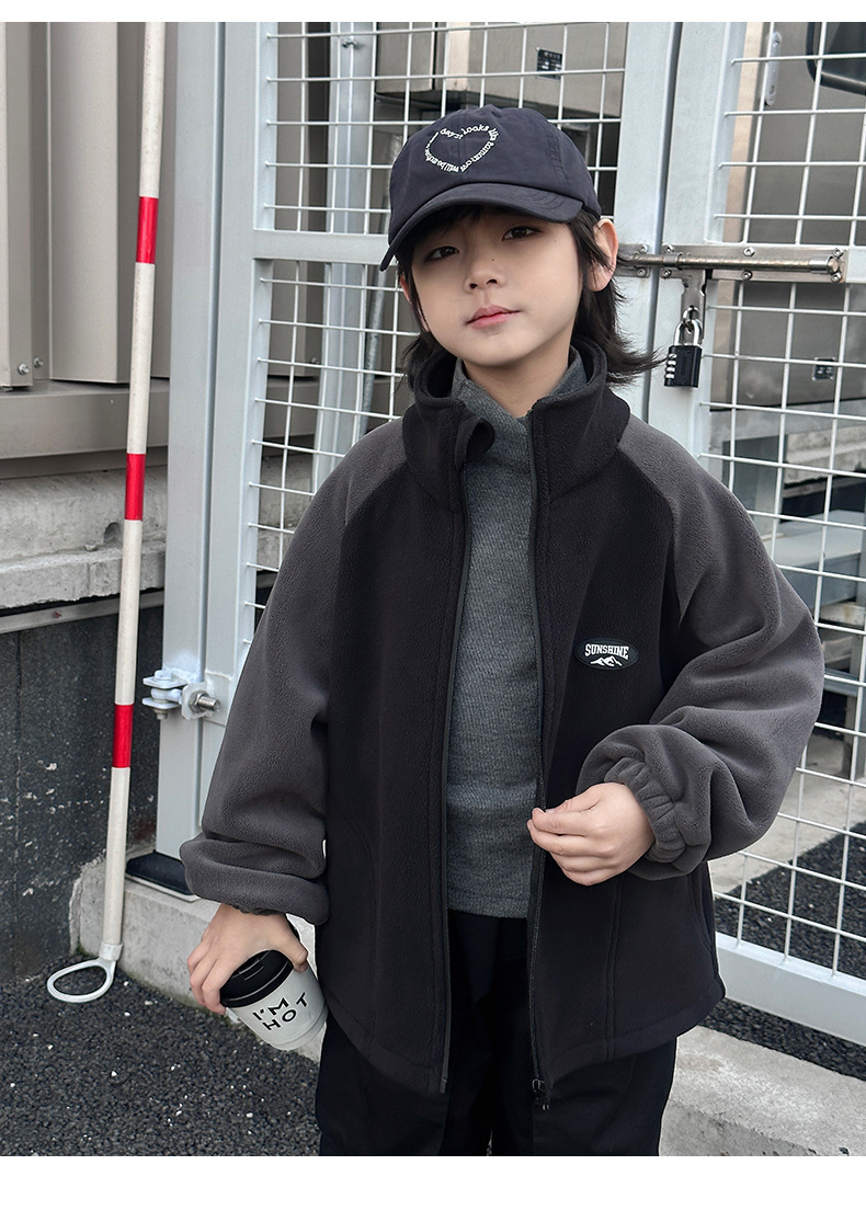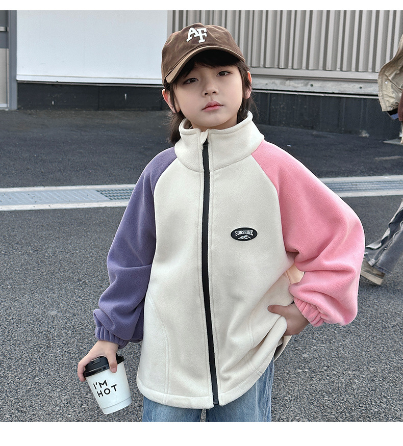 Niños de doble cara chaqueta de terciopelo de grano austríaco primavera y otoño ropa infantil nuevo color combinado para hombres y mujeres con cardigan de terciopelo grueso chaqueta de algodón para niños grandes