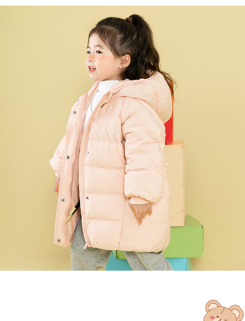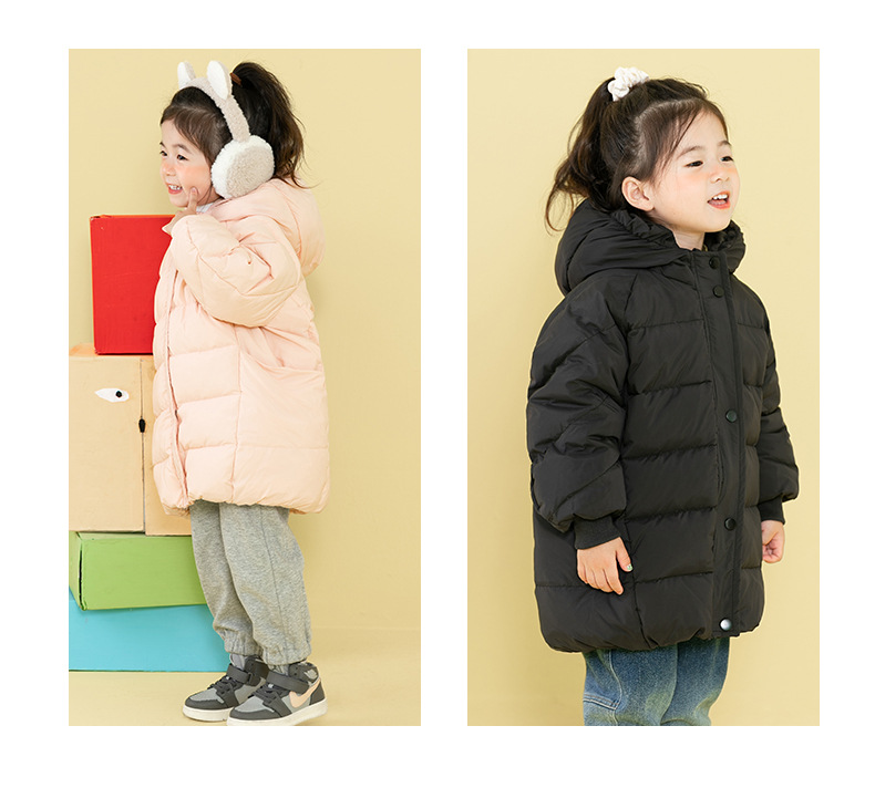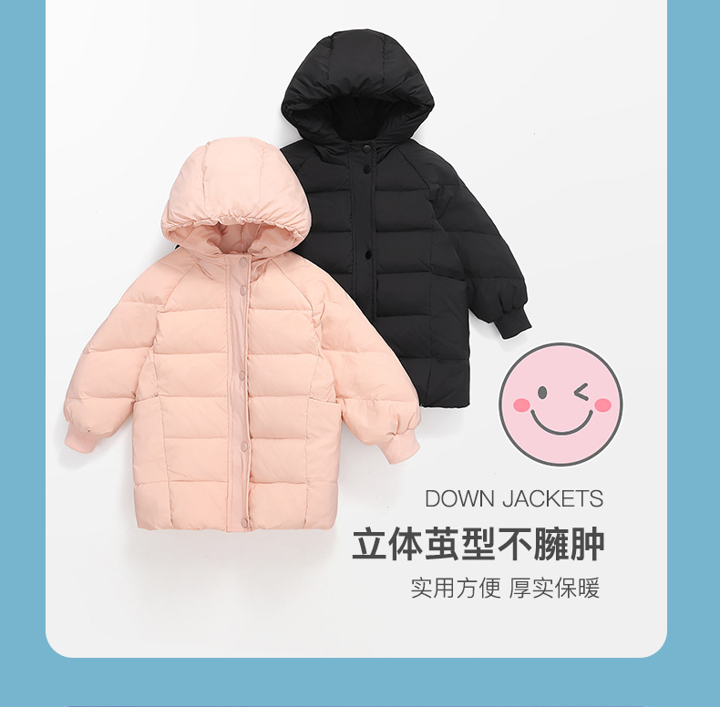 90% sobre la detección de invierno de las niñas de los niños de longitud media mediana y grande de los niños chaqueta de pato blanco abajo abrigo de color sólido