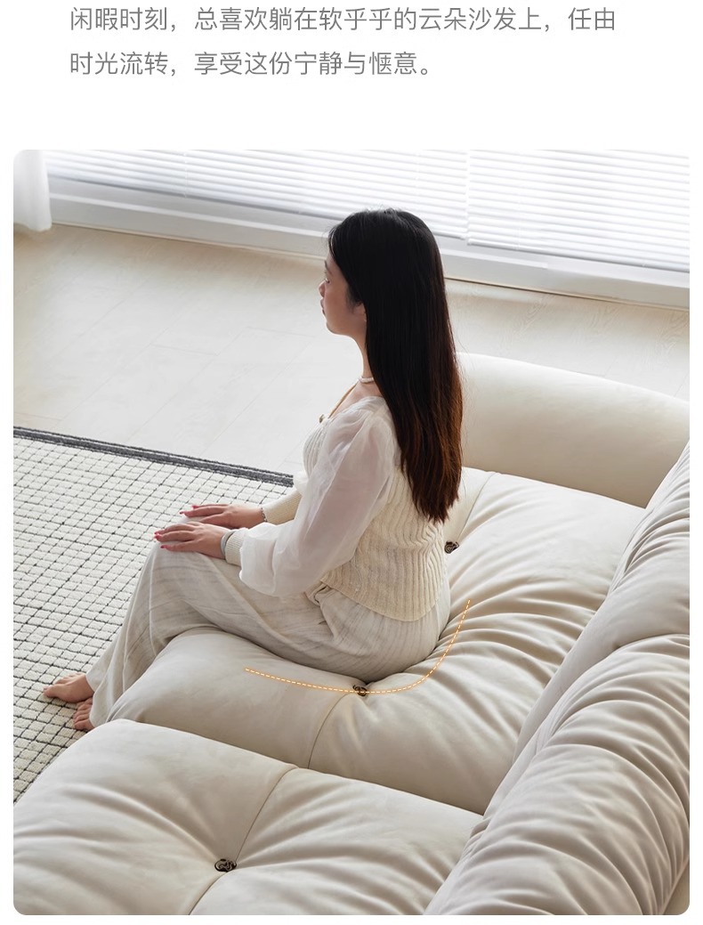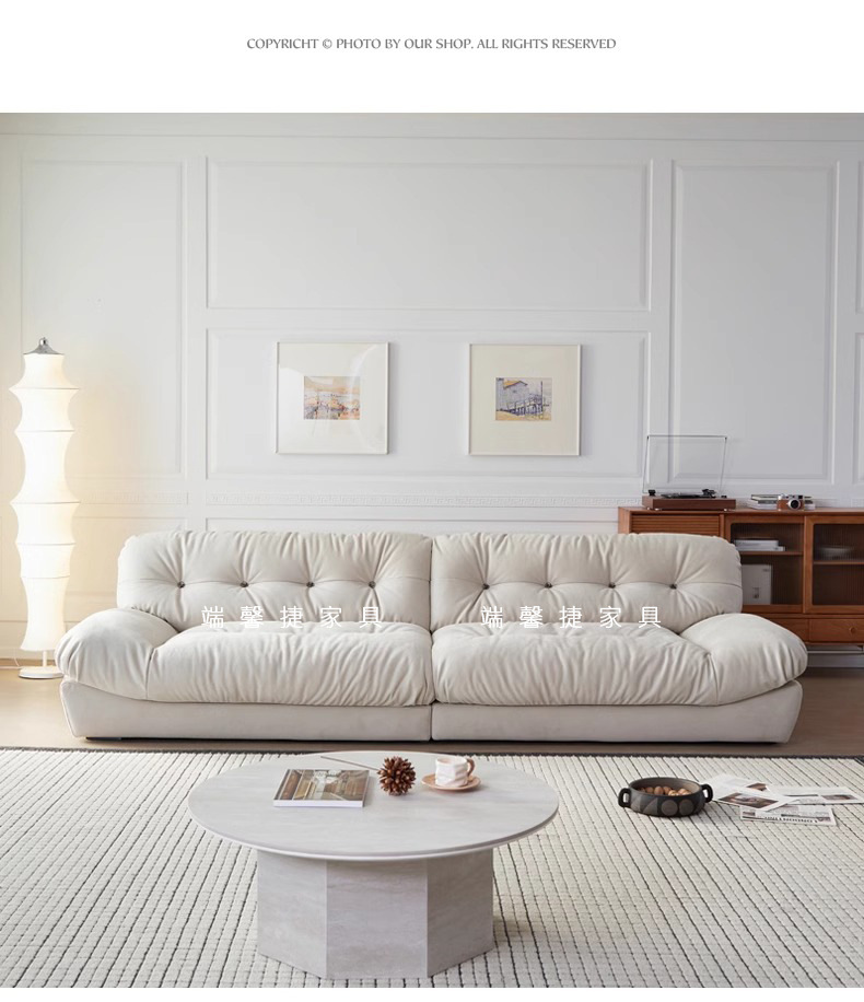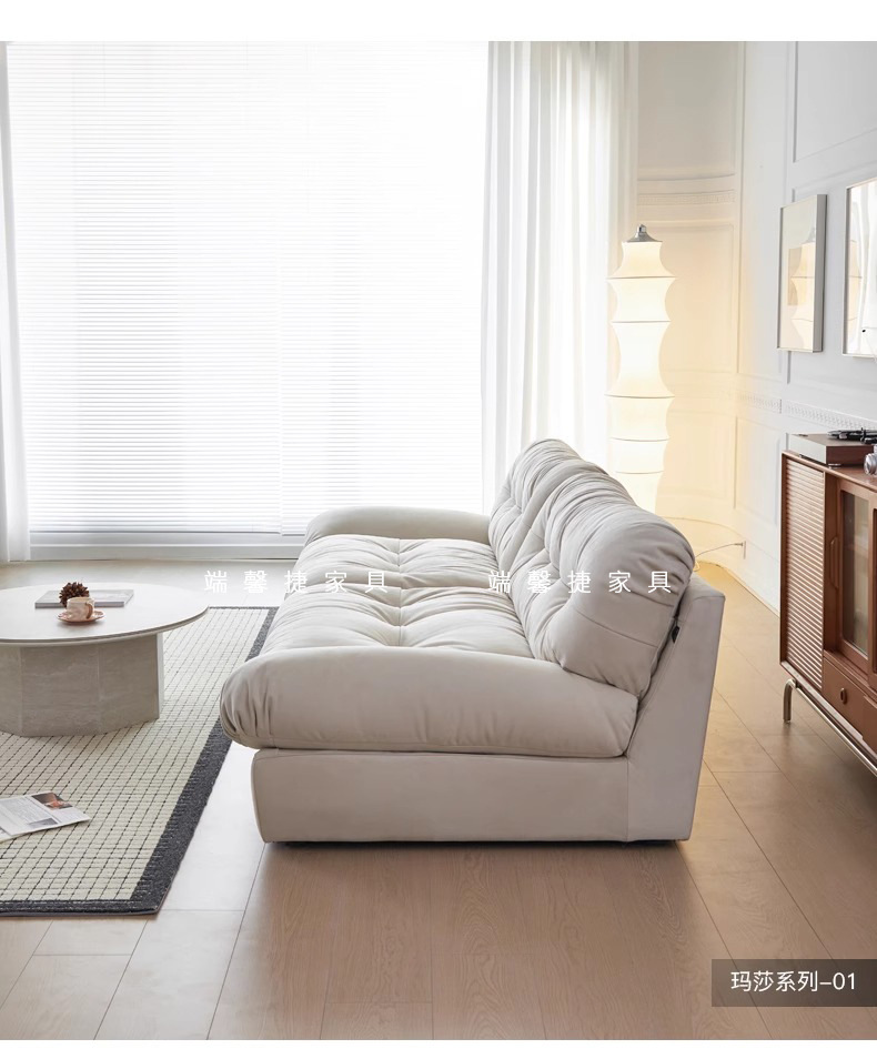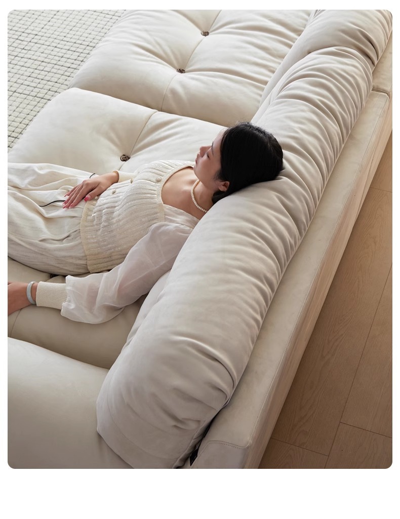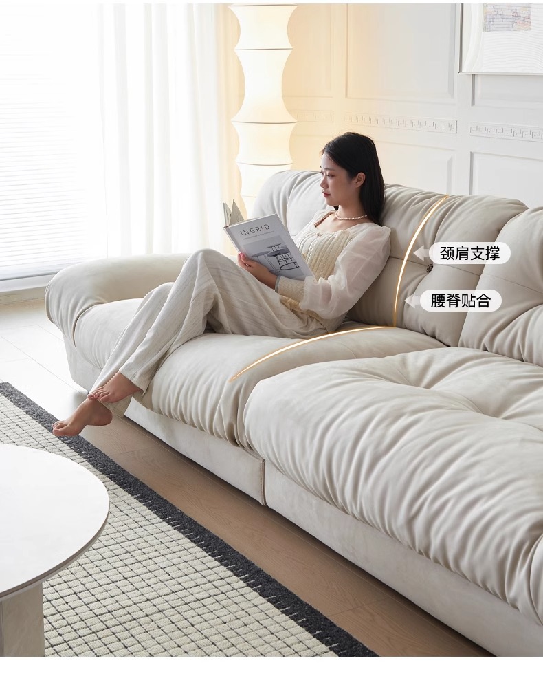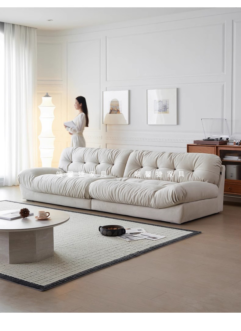 Sofá de nube línea recta crema estilo retrógrado anti-cat tela esmerizada pluma sofá de tres personas