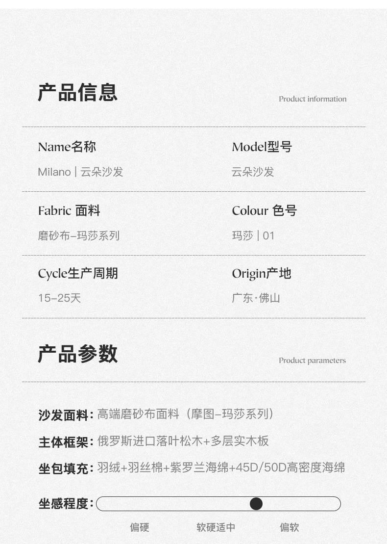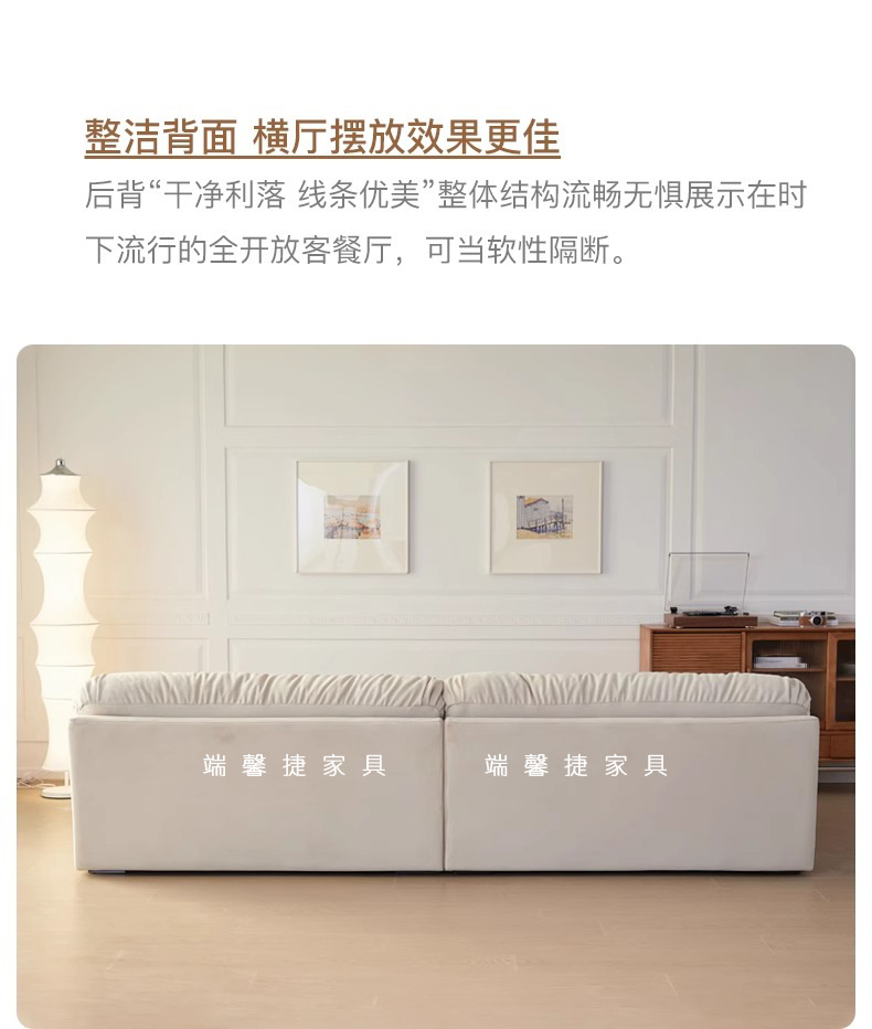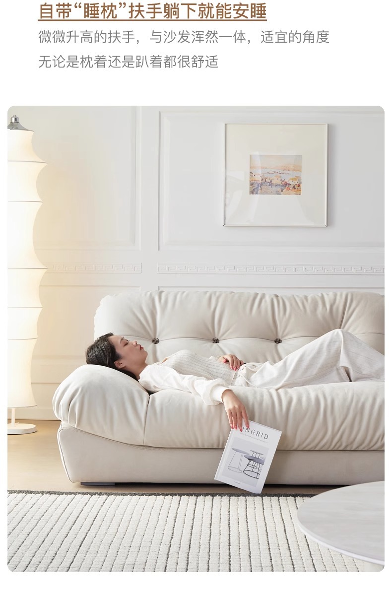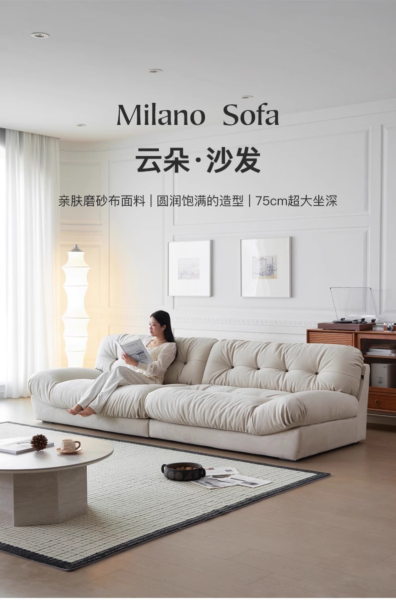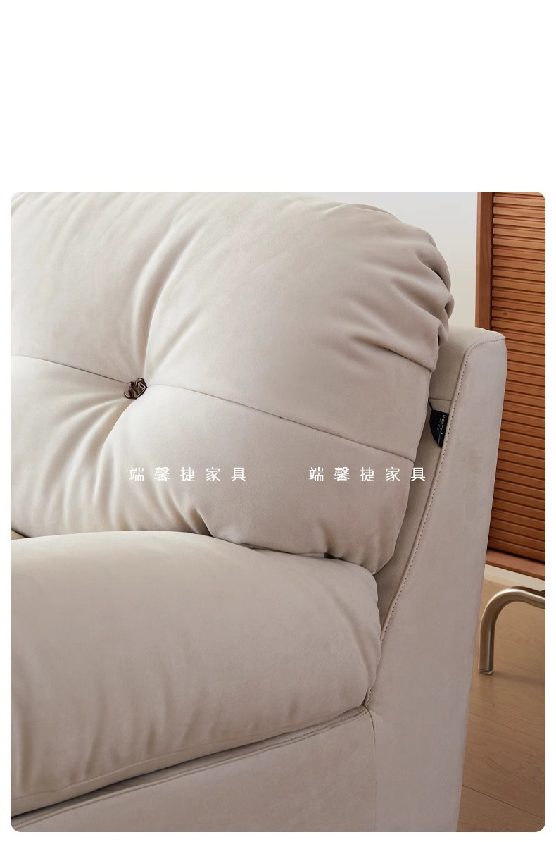 Sofá de nube línea recta crema estilo retrógrado anti-cat tela esmerizada pluma sofá de tres personas