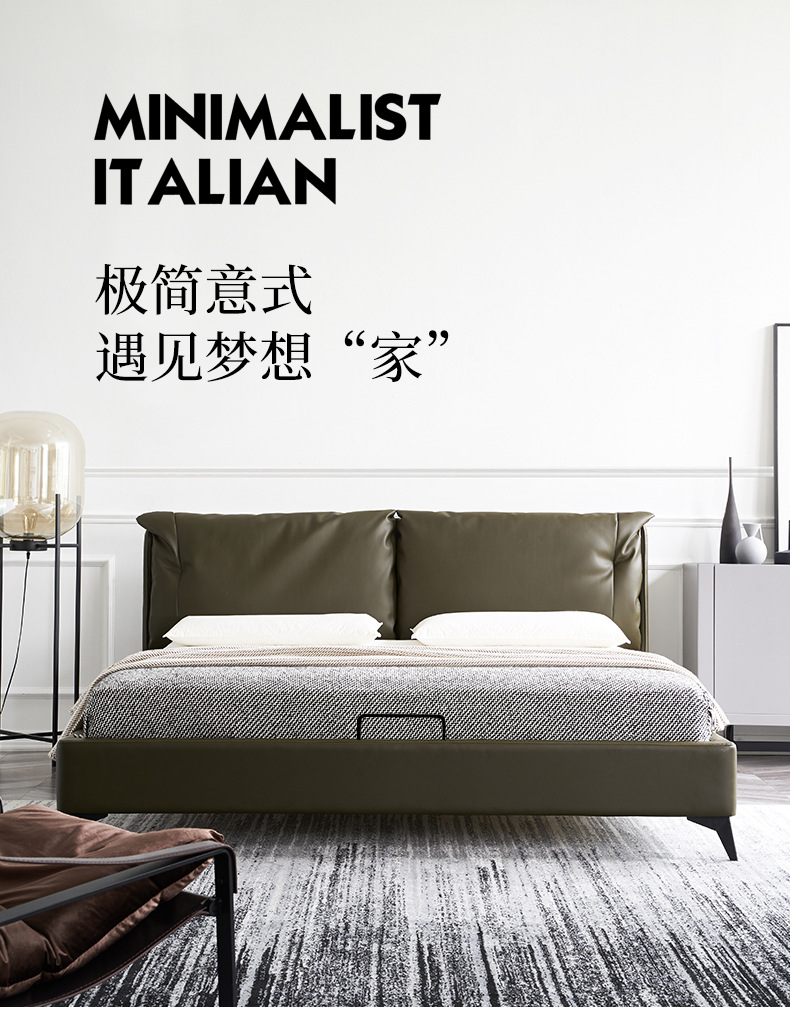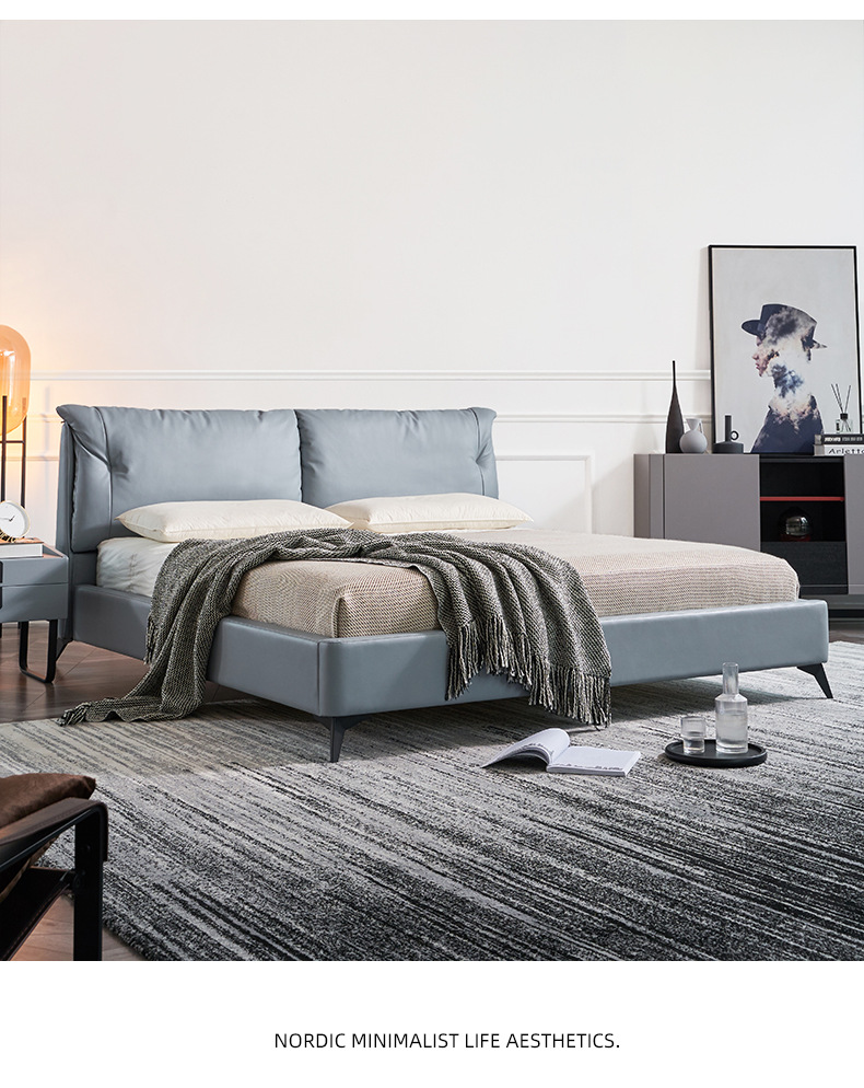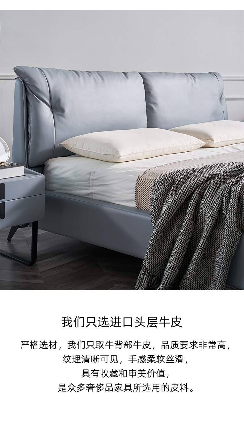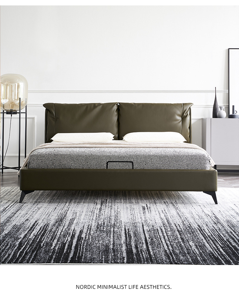 Cama de cuero genuino italiano minimalista cama suave dormitorio principal 1,8 m cojín pequeño apartamento cama doble cama de boda ventas directas de la fábrica