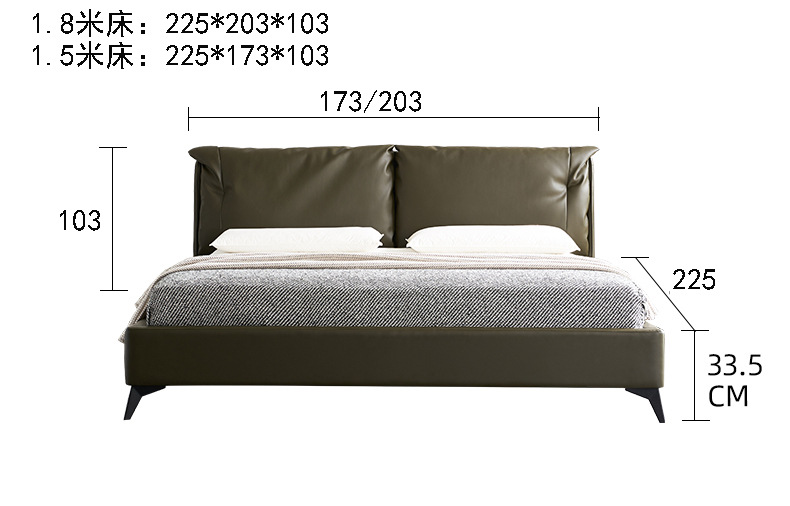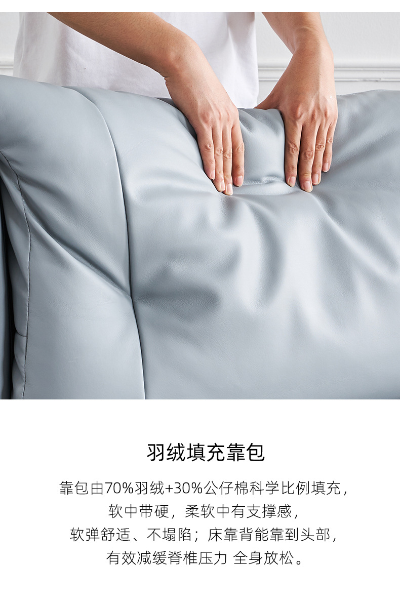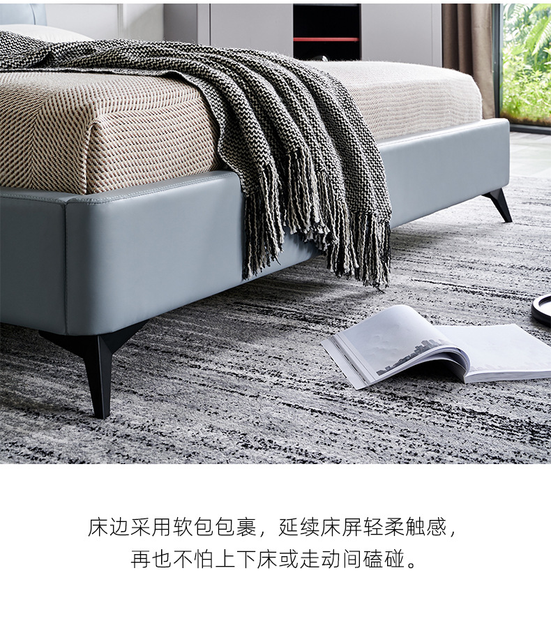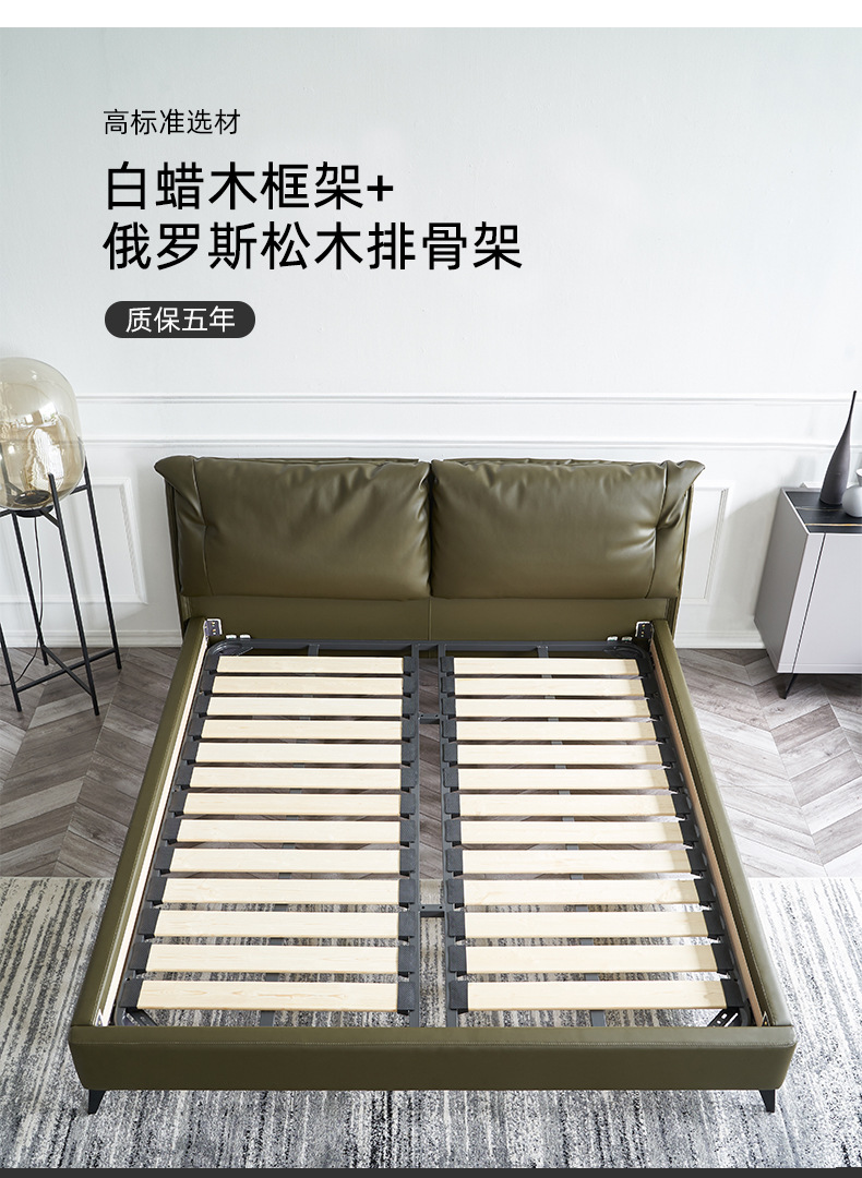 Cama de cuero genuino italiano minimalista cama suave dormitorio principal 1,8 m cojín pequeño apartamento cama doble cama de boda ventas directas de la fábrica