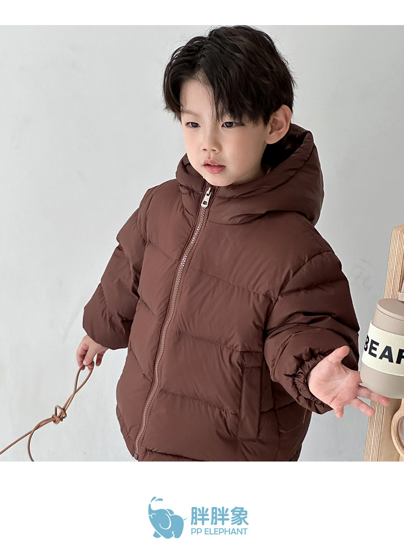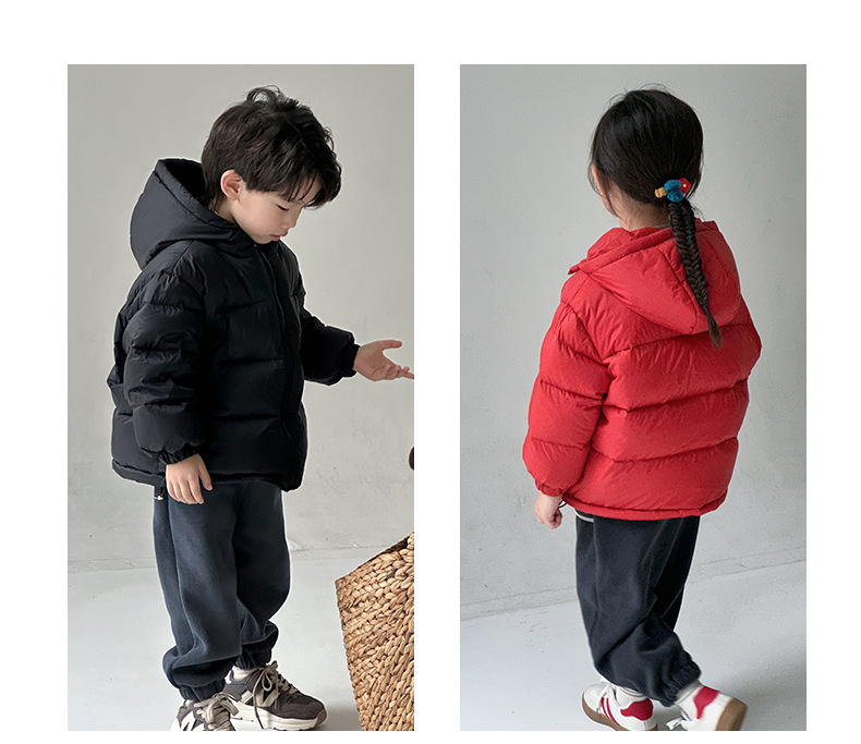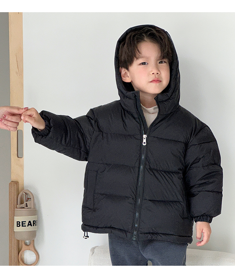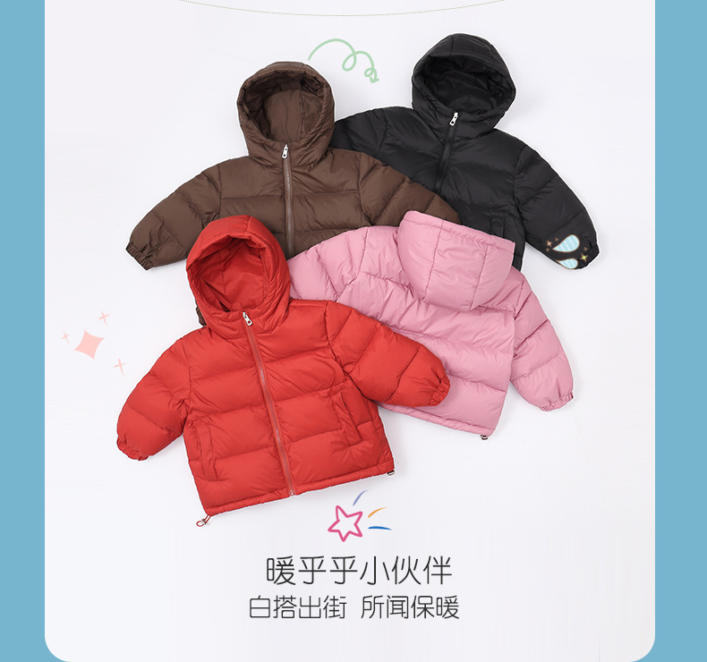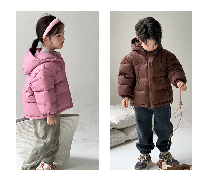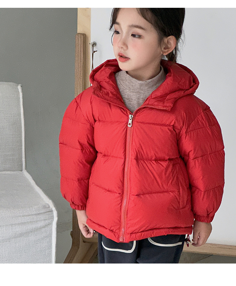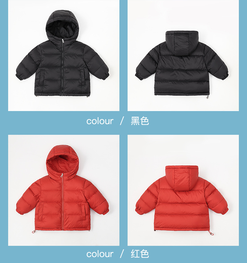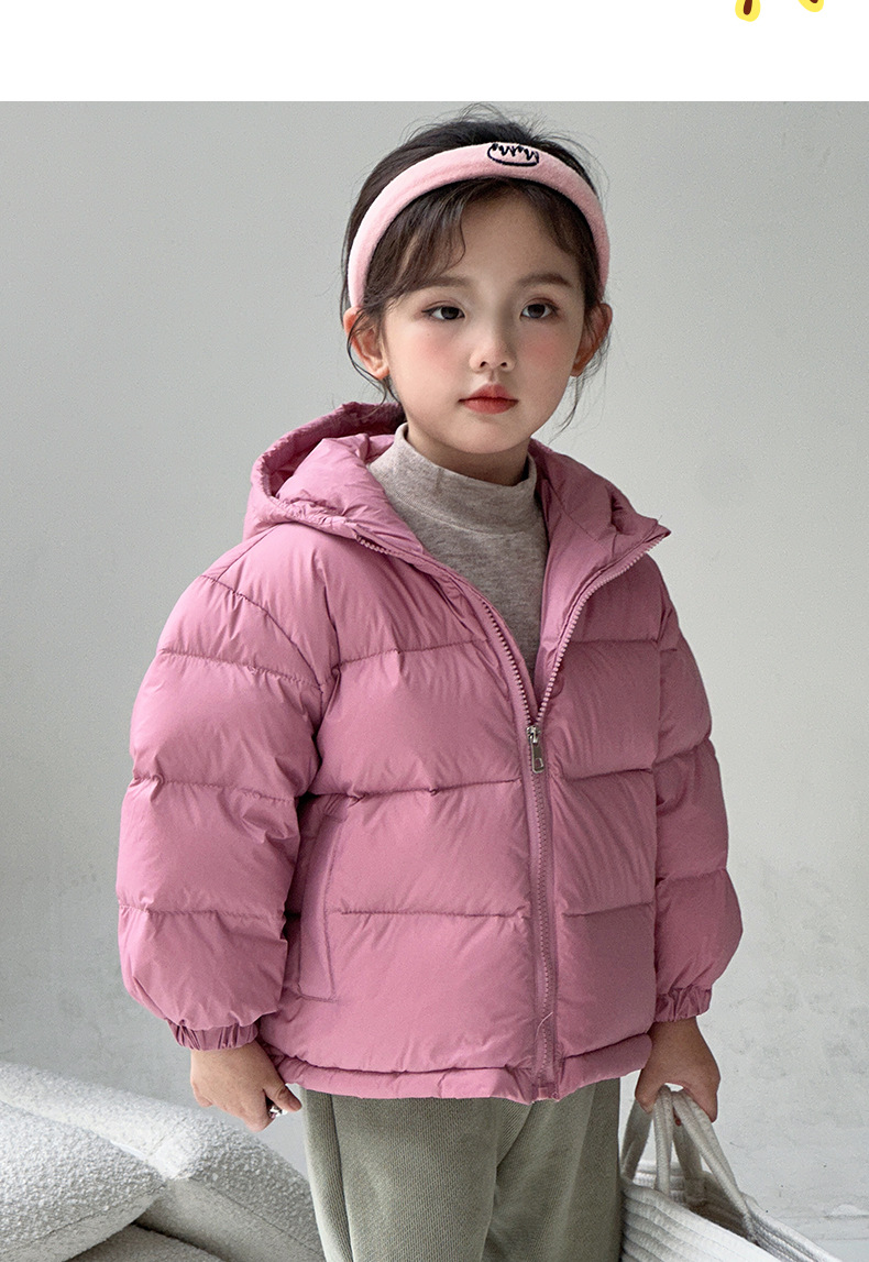 Invierno nuevos niños y niñas color sólido de Los Niños engrosada con capucha ropa para niños medianos y pequeños pato blanco abajo Chaqueta corta