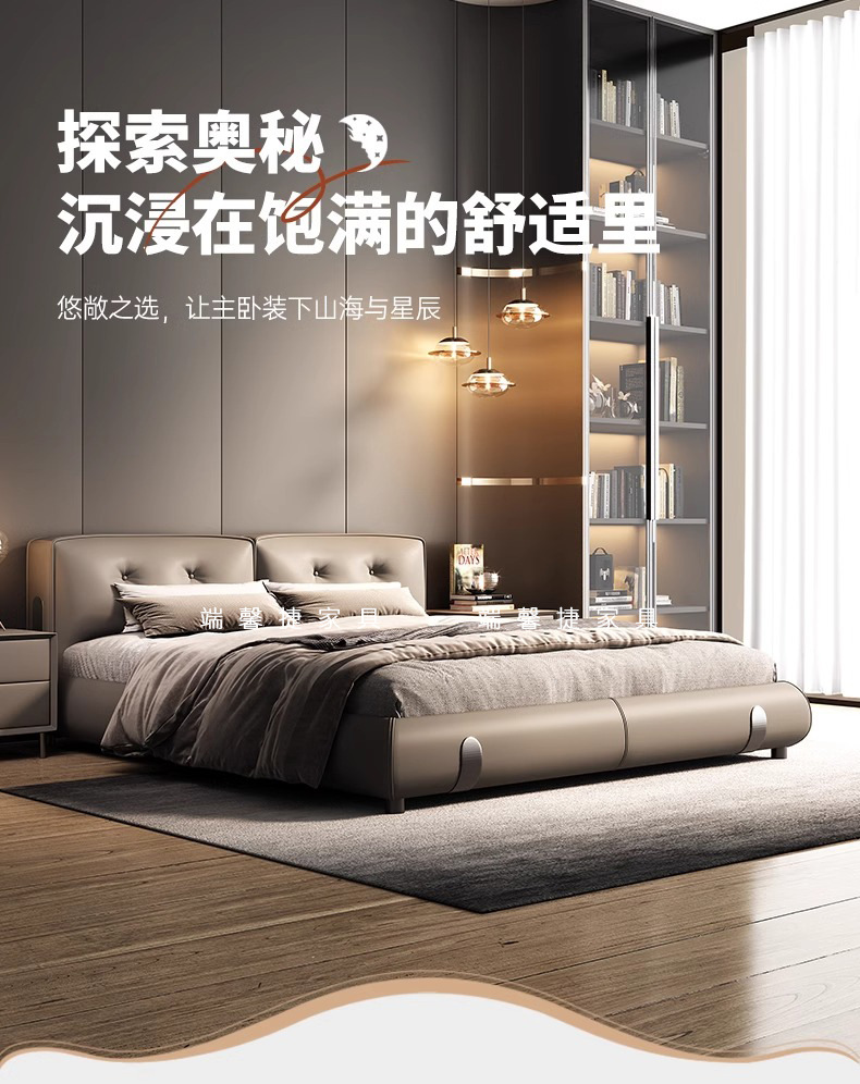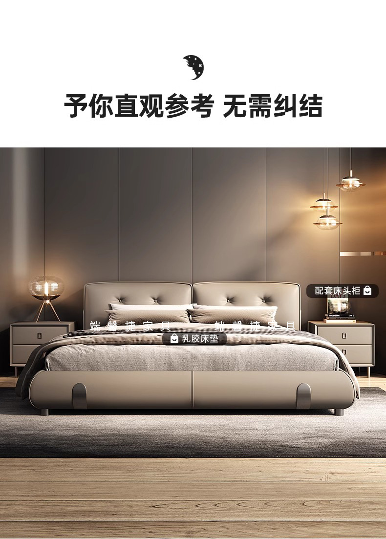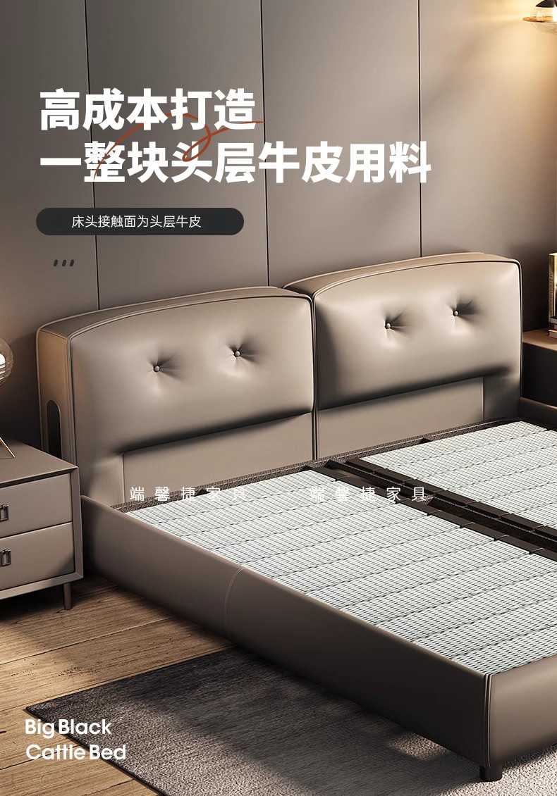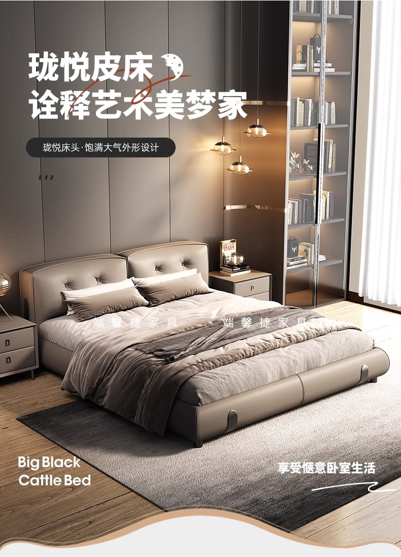 Moderno simple y lujoso cama de cuero real cama de cama principal de cuero de vaca 2024 nueva cama Dylan de alta gama de la atmósfera cama de boda de envoltura suave