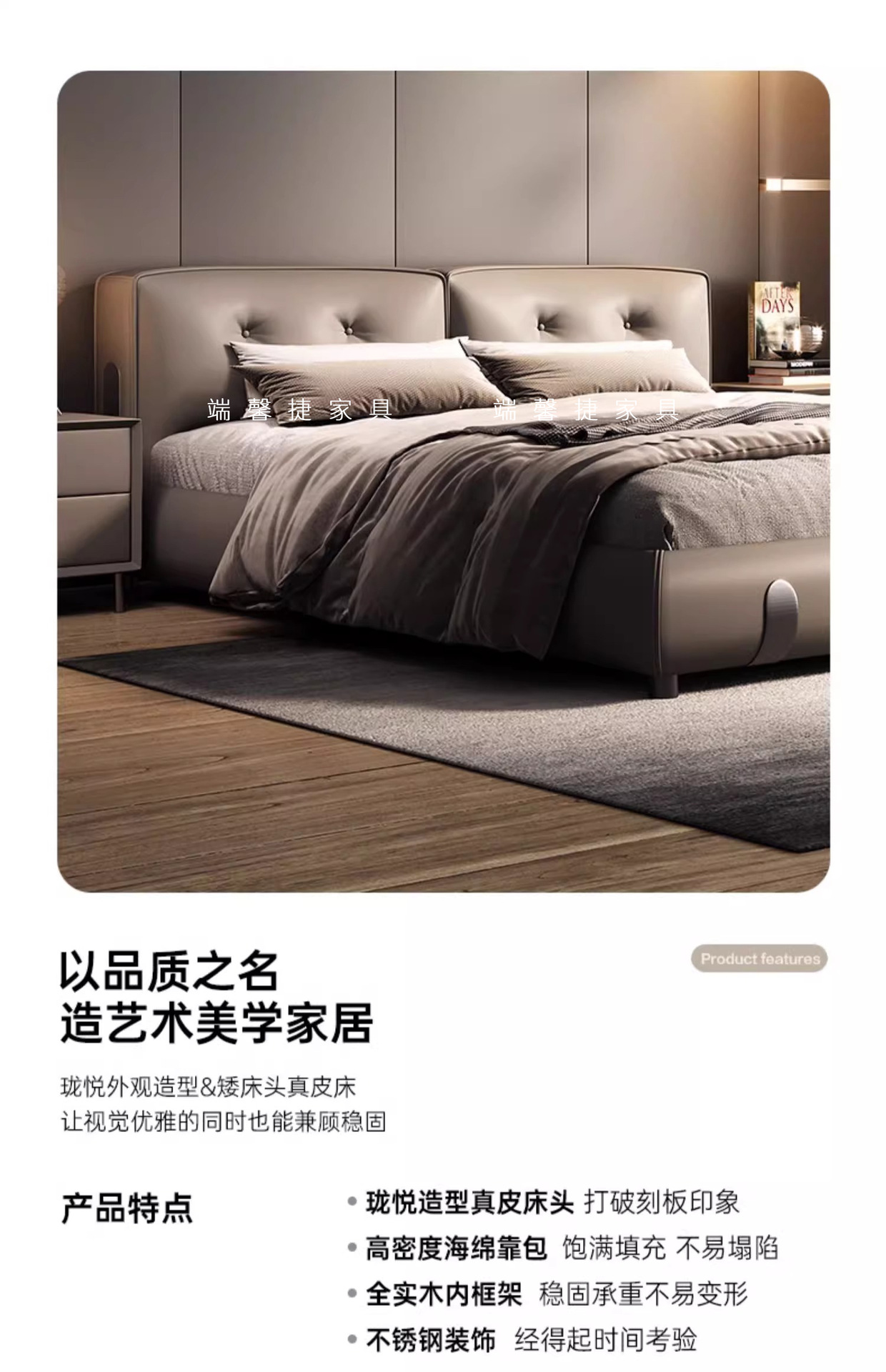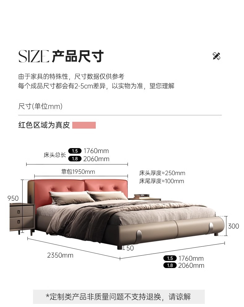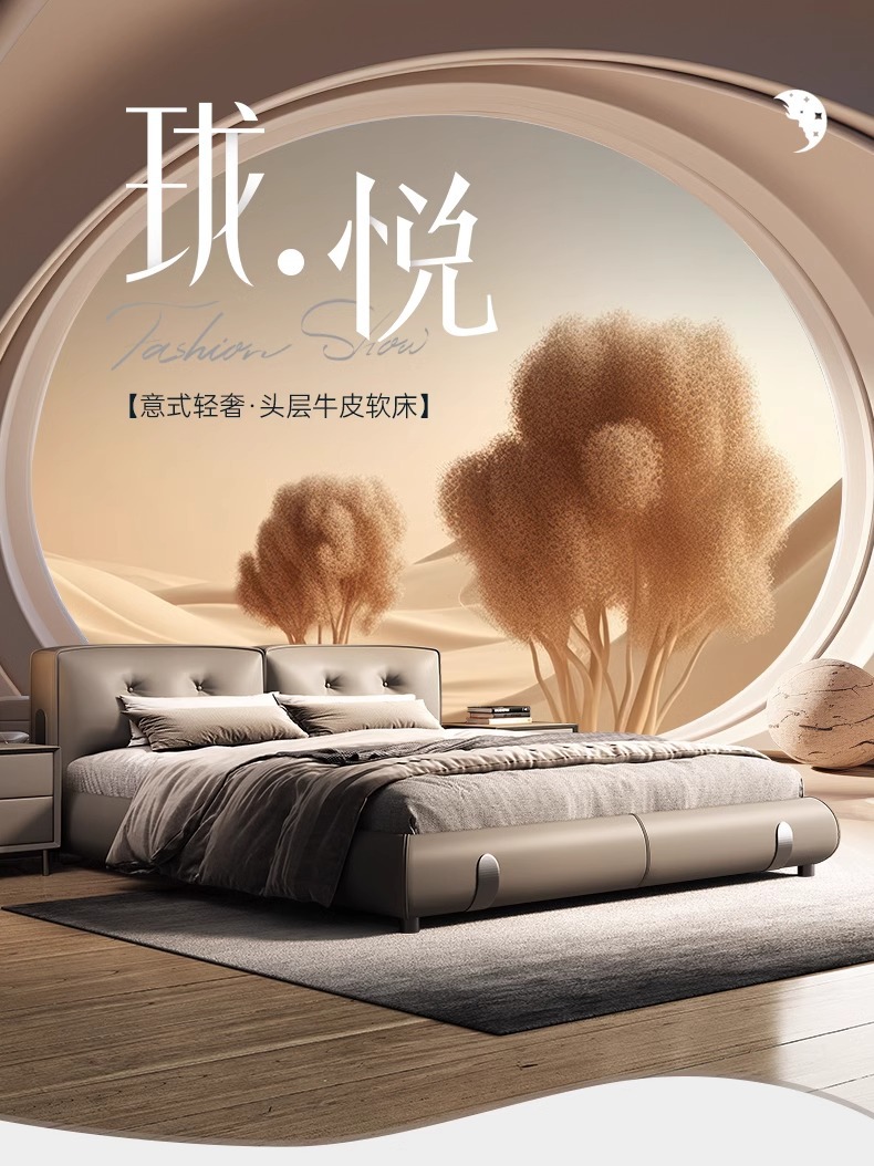 Moderno simple y lujoso cama de cuero real cama de cama principal de cuero de vaca 2024 nueva cama Dylan de alta gama de la atmósfera cama de boda de envoltura suave