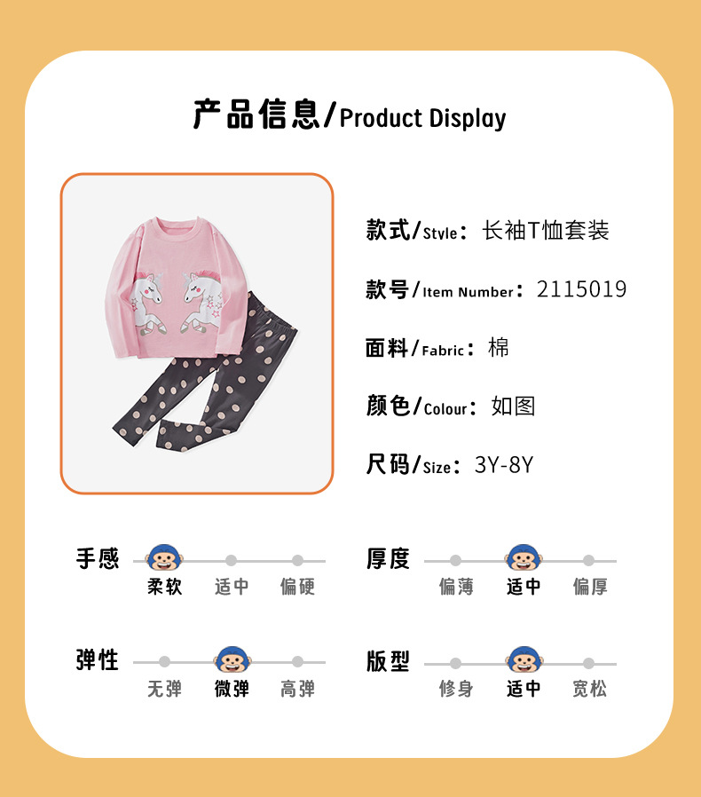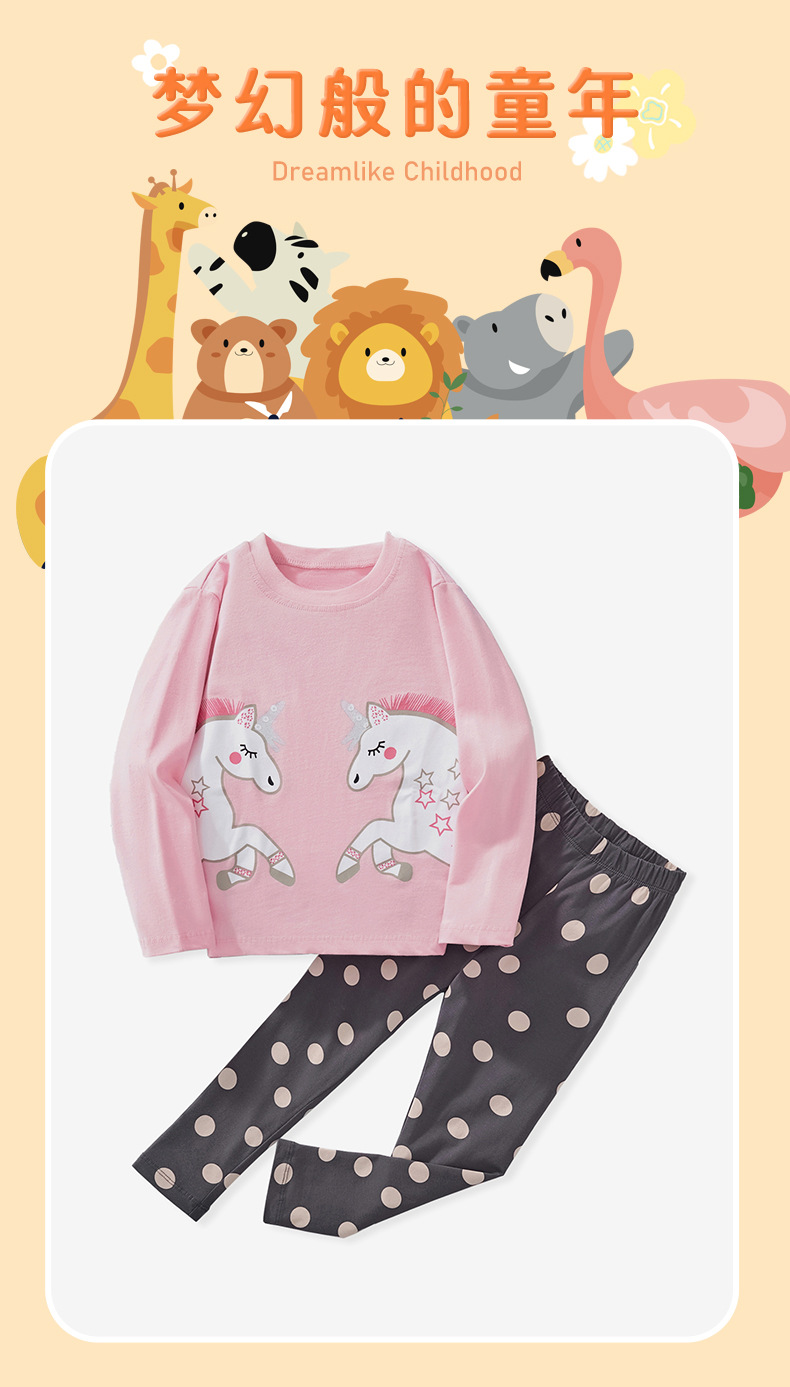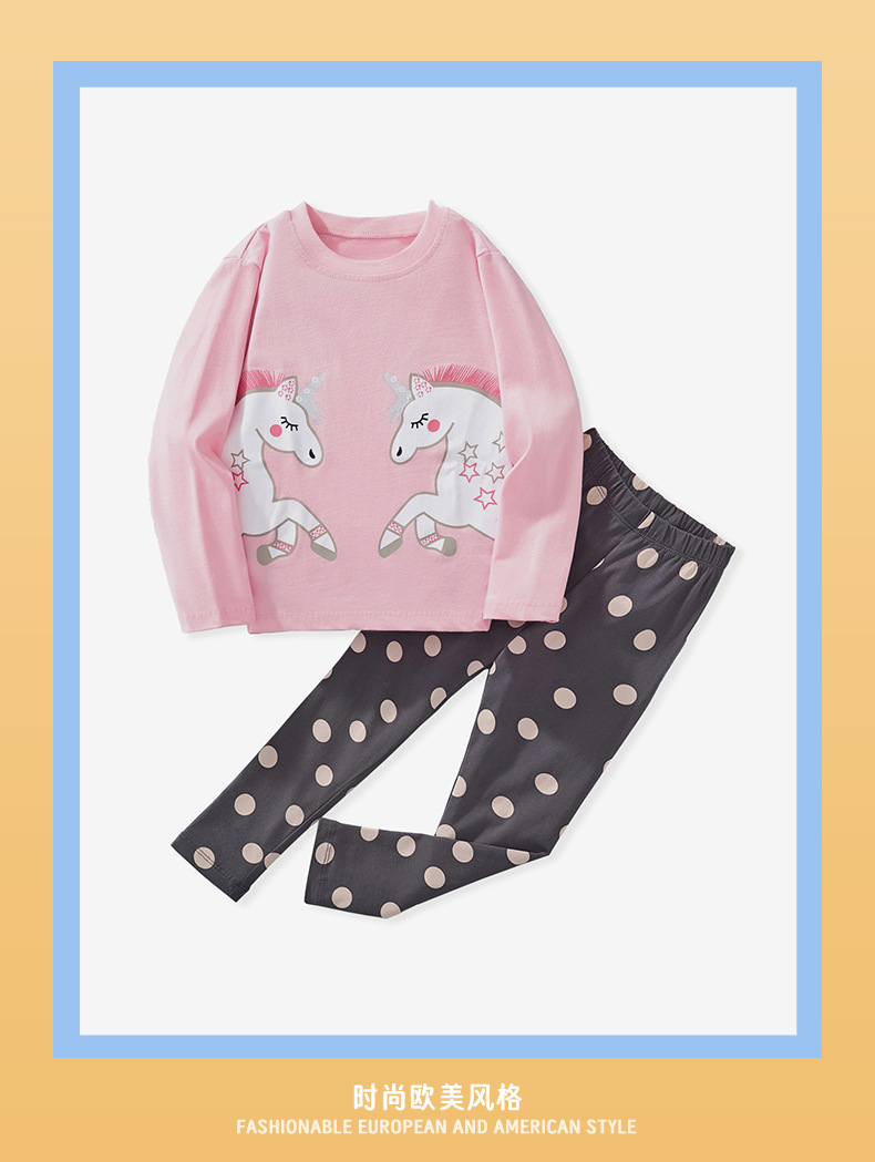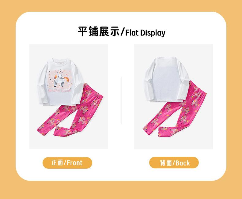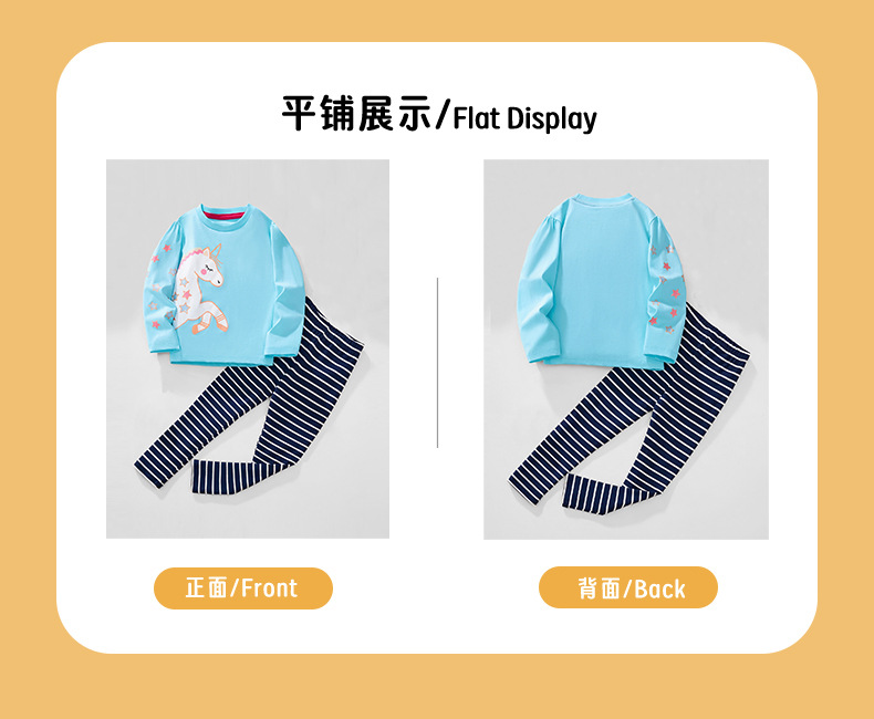 Europa y América ropa infantil ropa de hogar pantalones de manga larga dos piezas de dibujos animados unicornio impresión transfronteriza al por mayor set de algodón