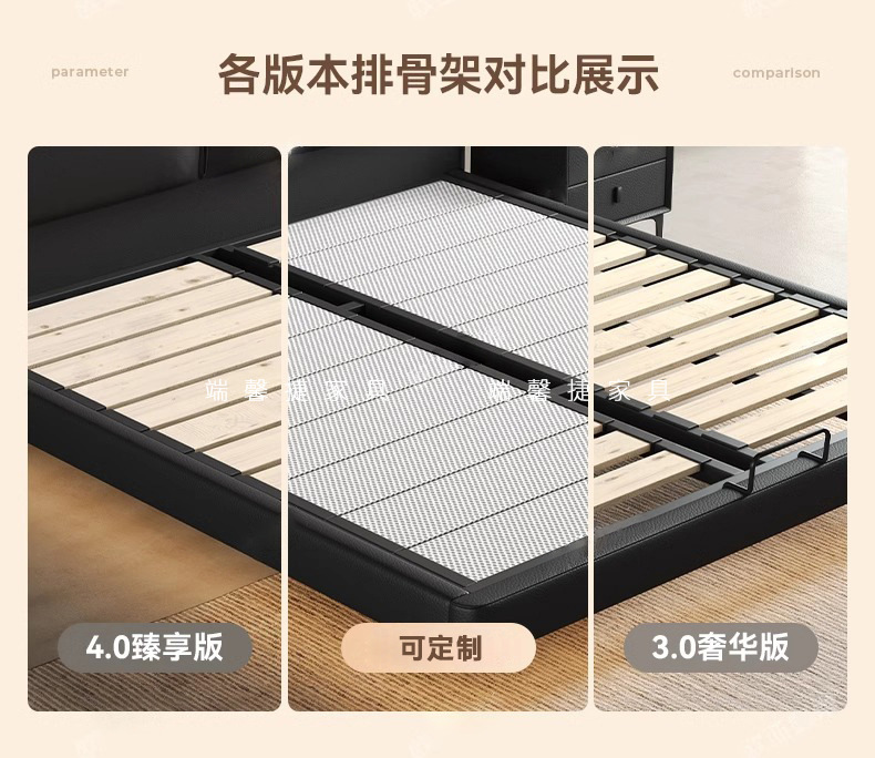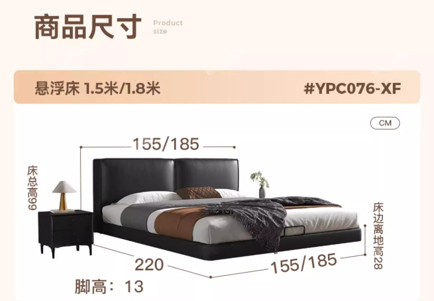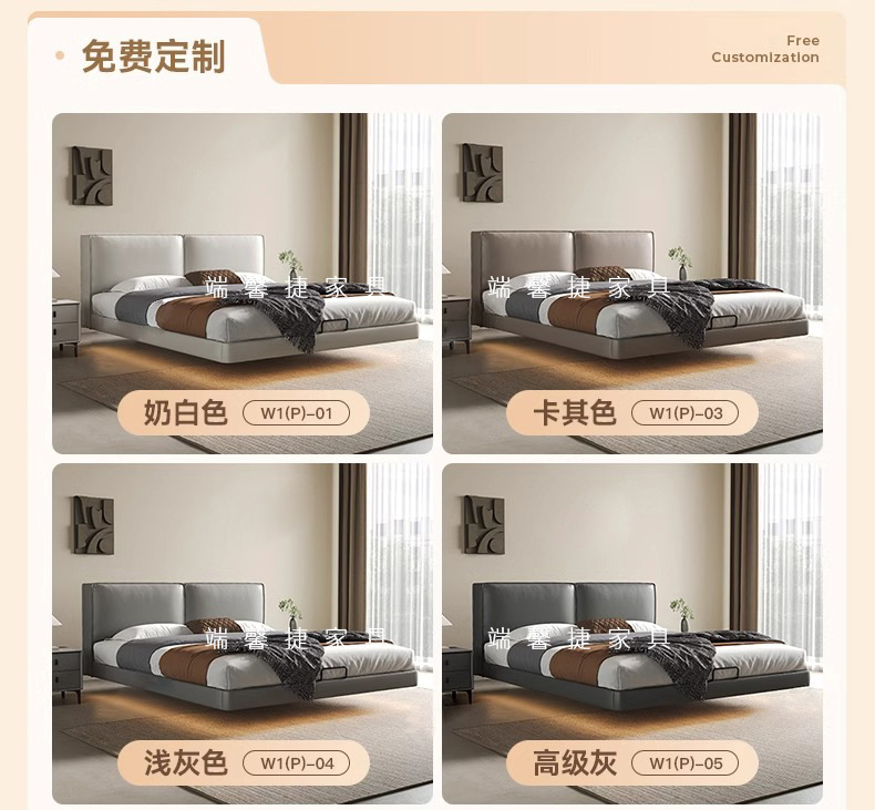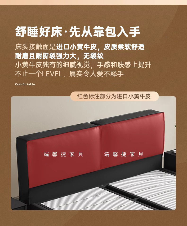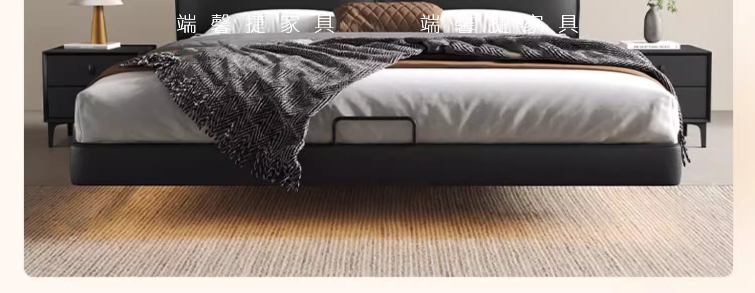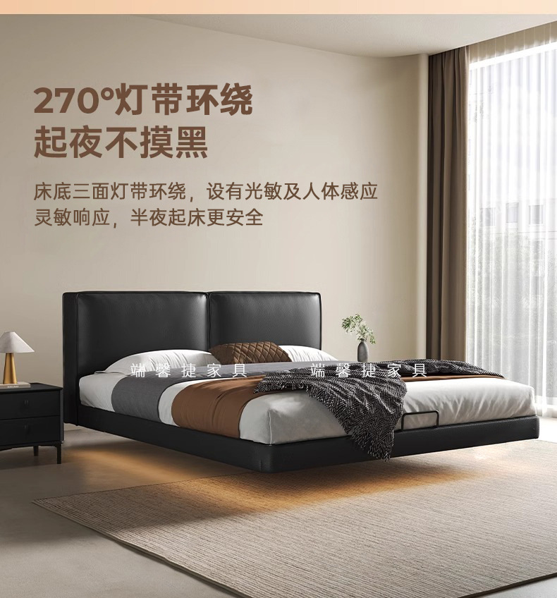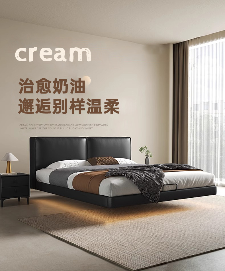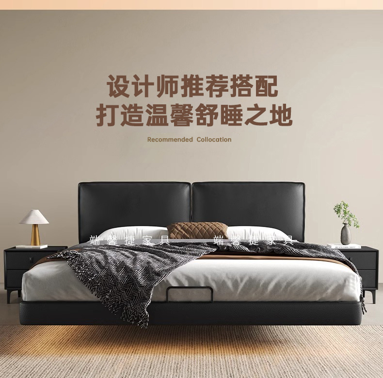 Cama de cuero de buey negro, cama principal, tofu negro, cama flotante, cama doble, cama de matrimonio simple.