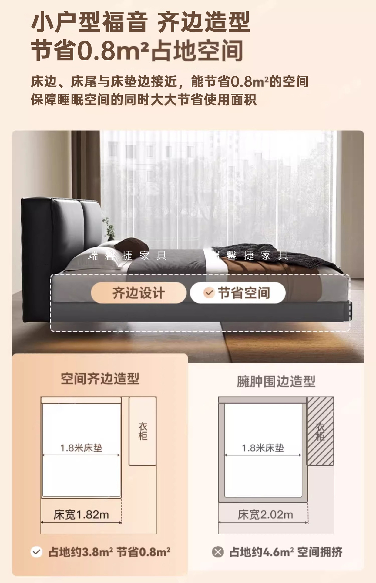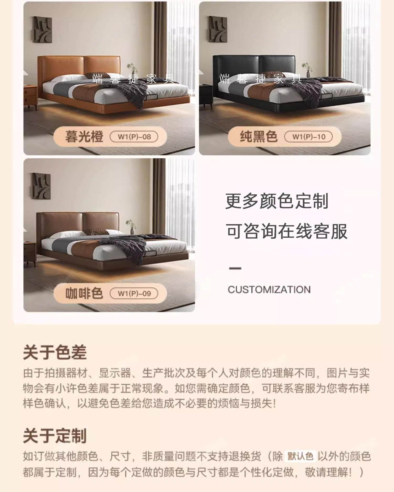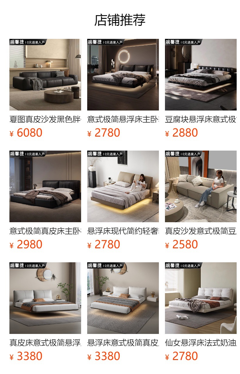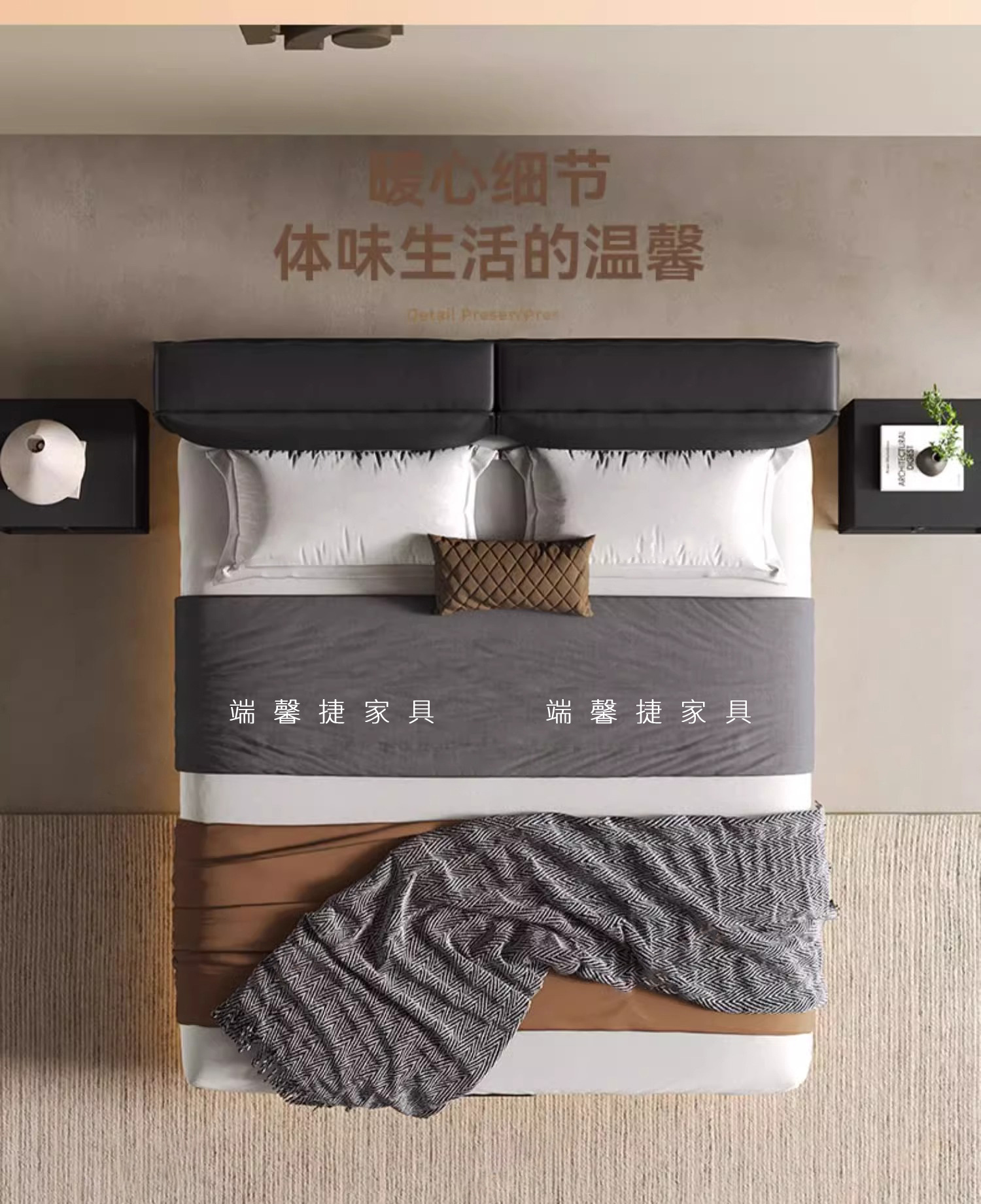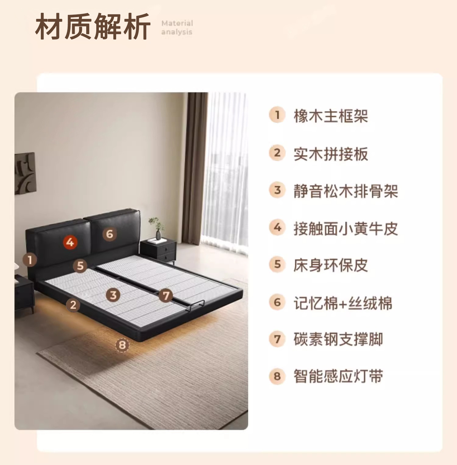 Cama de cuero de buey negro, cama principal, tofu negro, cama flotante, cama doble, cama de matrimonio simple.
