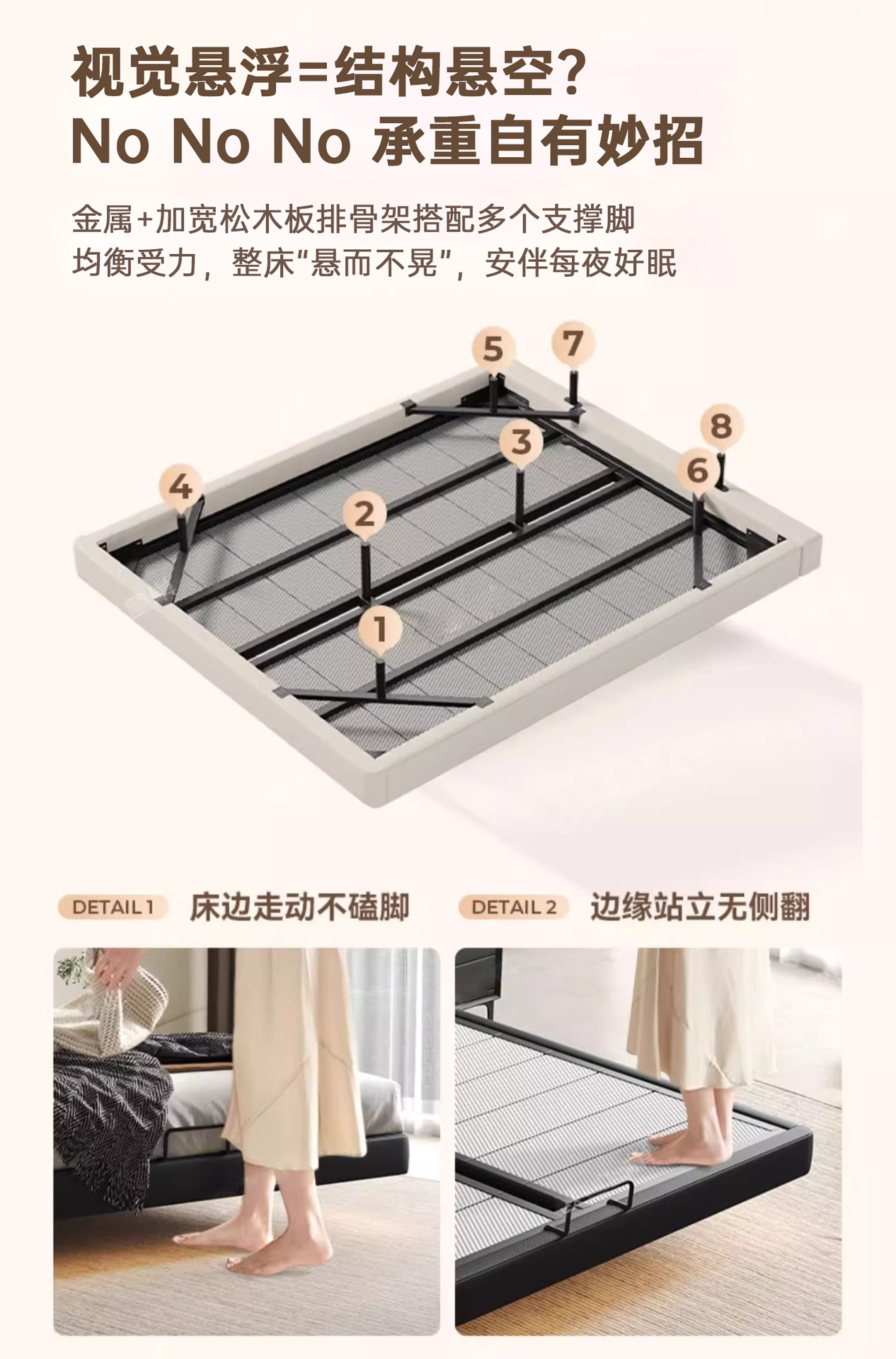 Cama flotante 1.5 * 2 m + colchón de látex natural