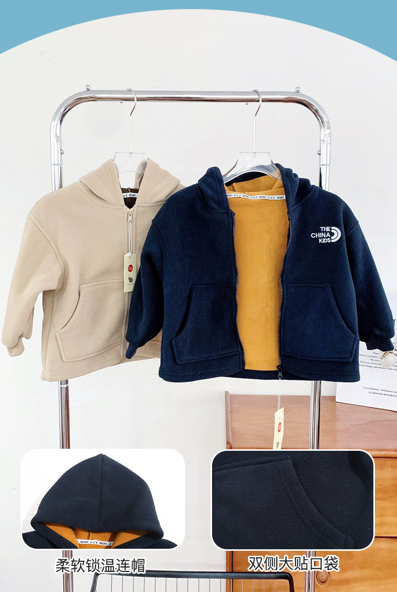 Chaqueta de vellón polar para niños, modelos de primavera y otoño 2024, nuevos niños, ropa de otoño con capucha para niños, chaqueta gruesa para niños