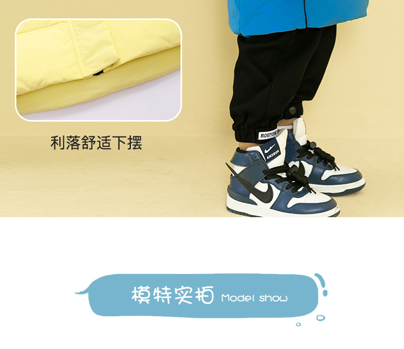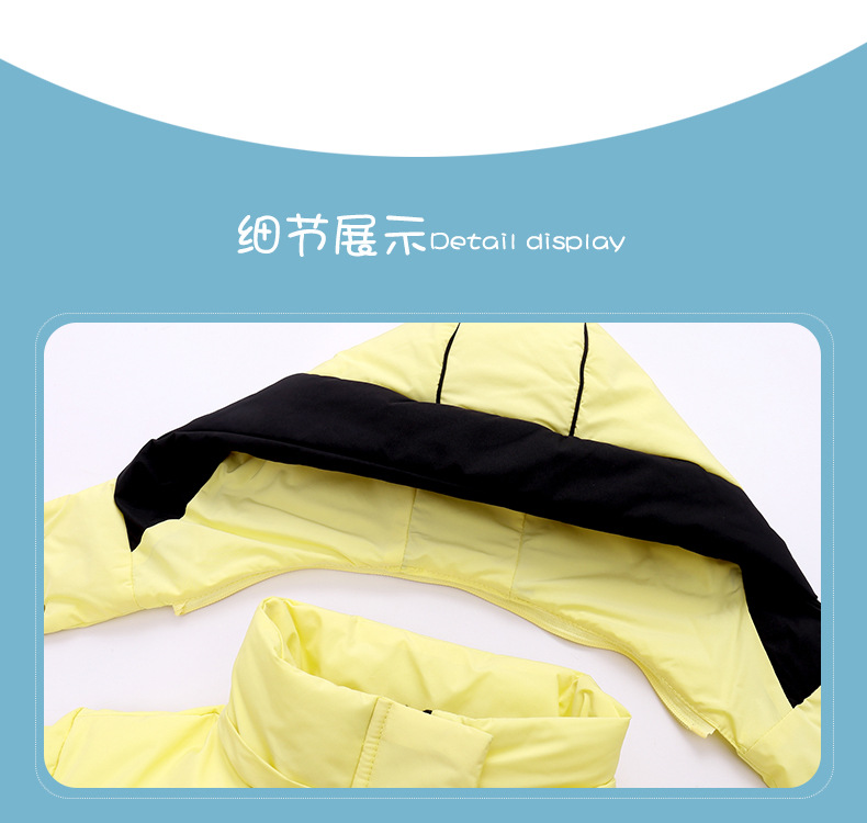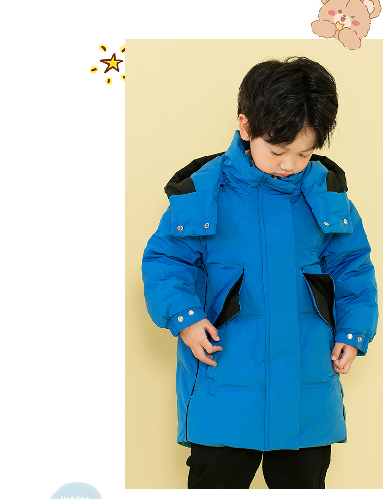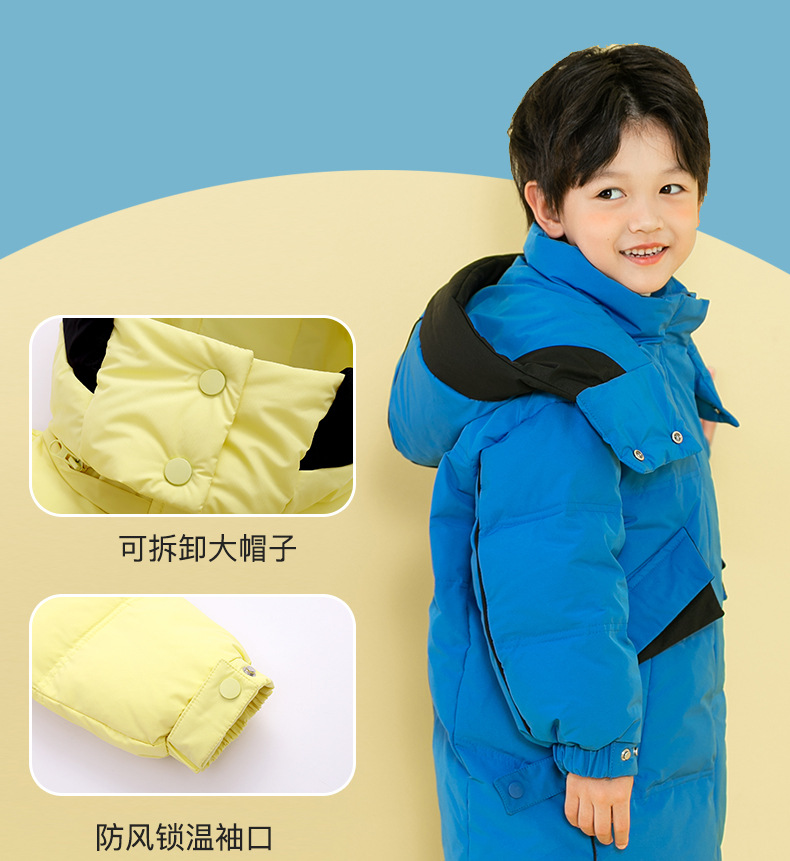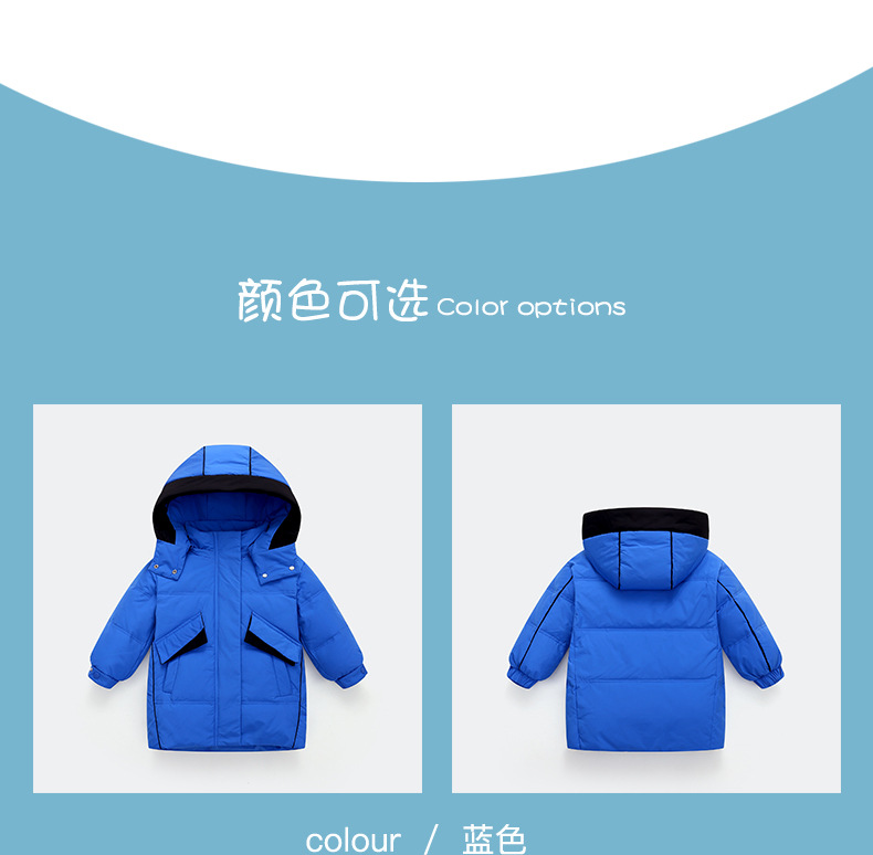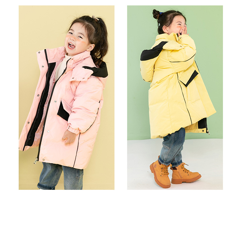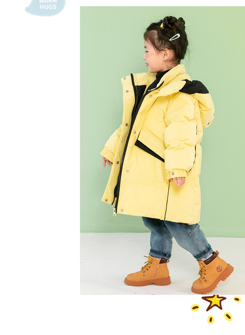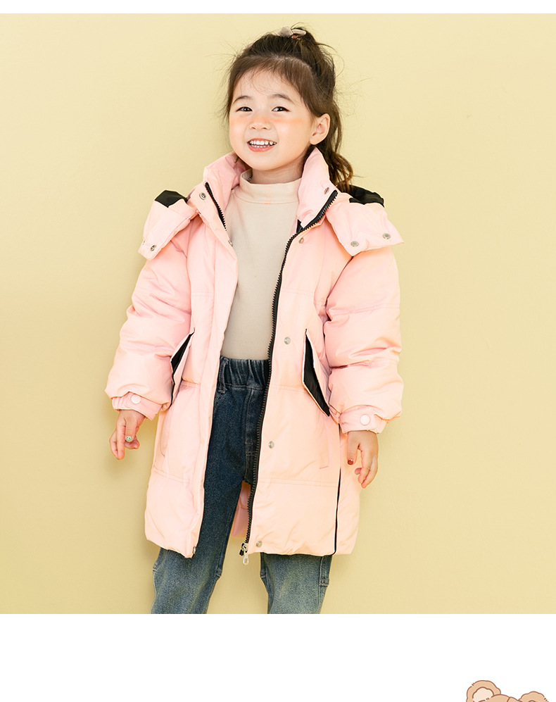 Chubby elefante invierno niños y niñas ropa infantil chaqueta infantil mediana y grande para niños color a juego con capucha cálido pato blanco abajo abrigo largo