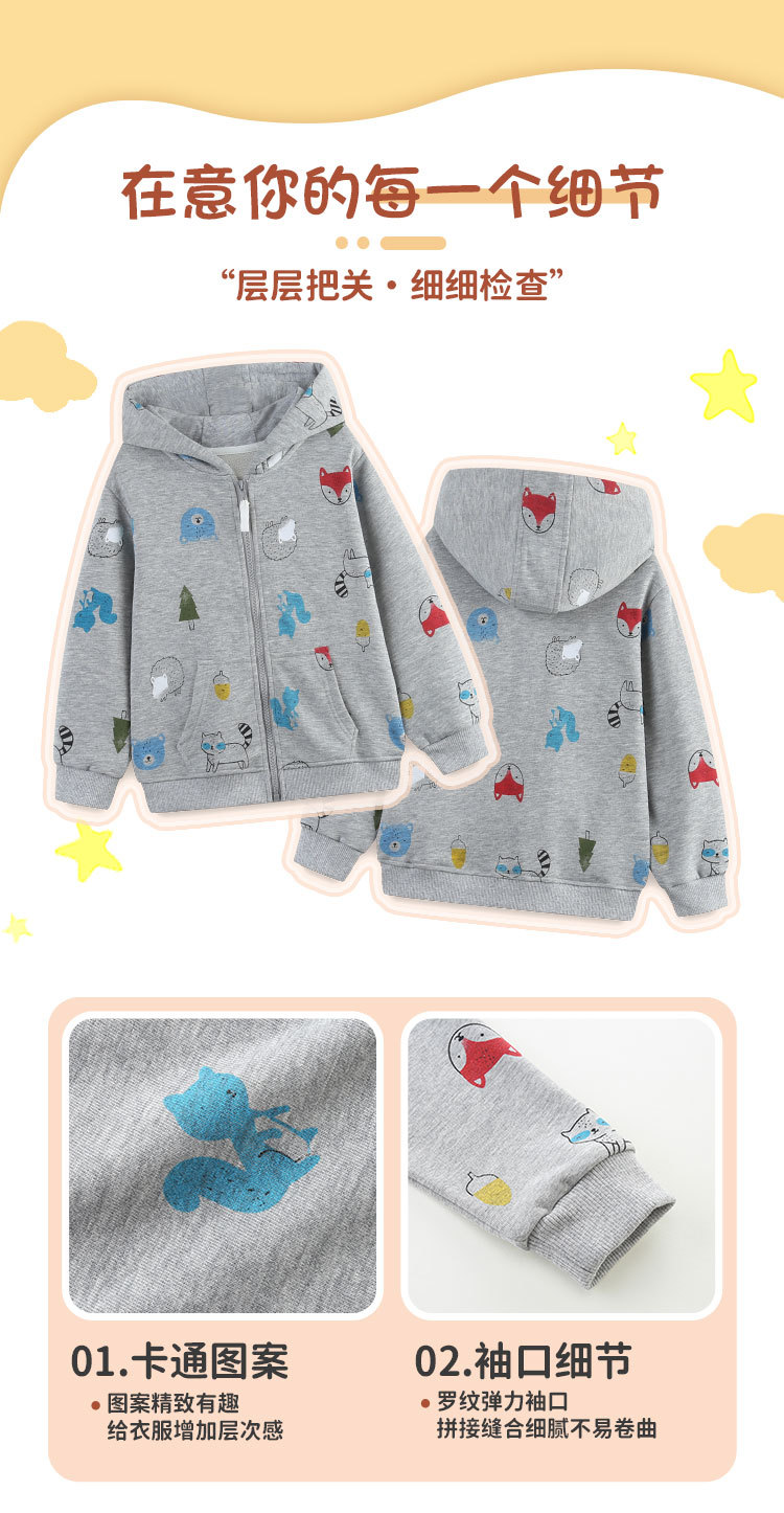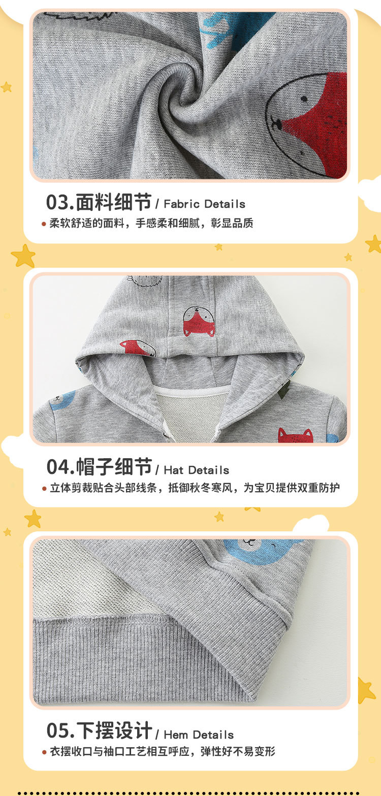 Otoño nuevo chaqueta de niño estilo europeo y americano con cremallera chaqueta infantil de algodón de punto impresa con sombrero chaqueta infantil
