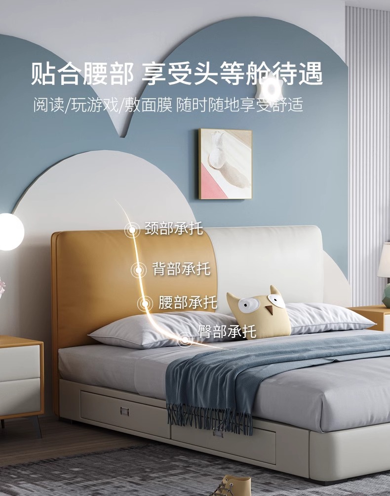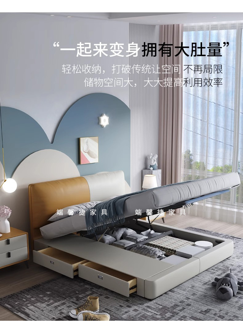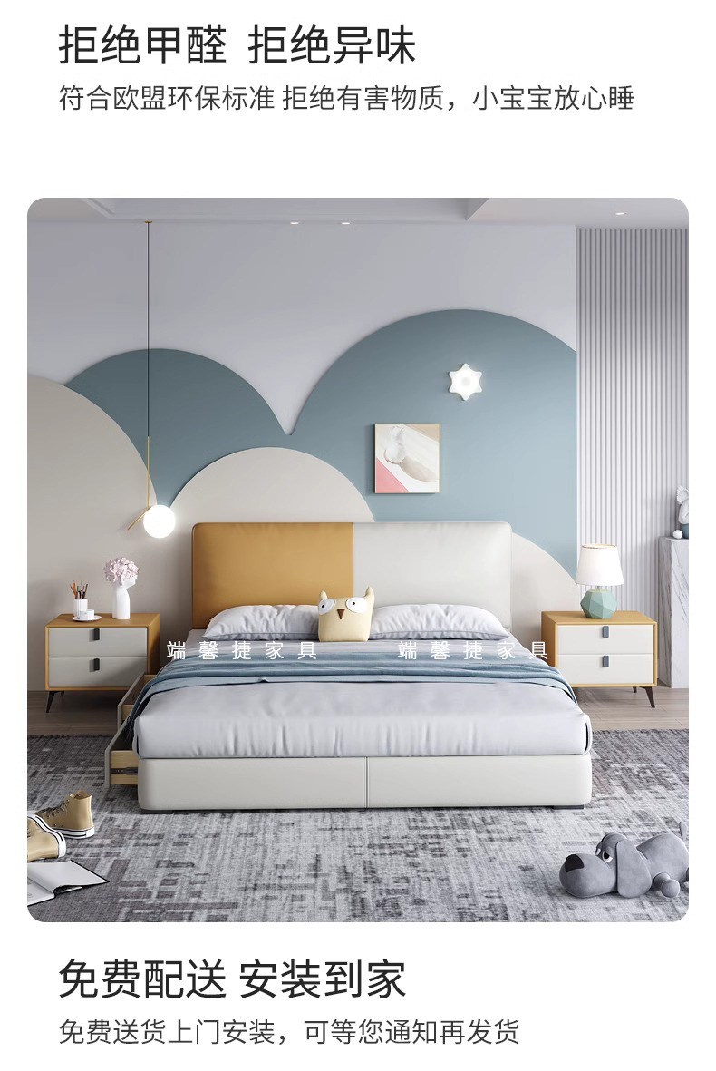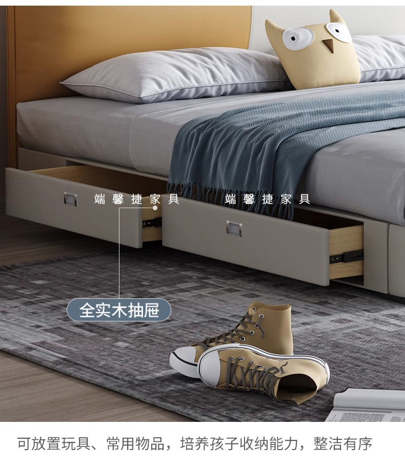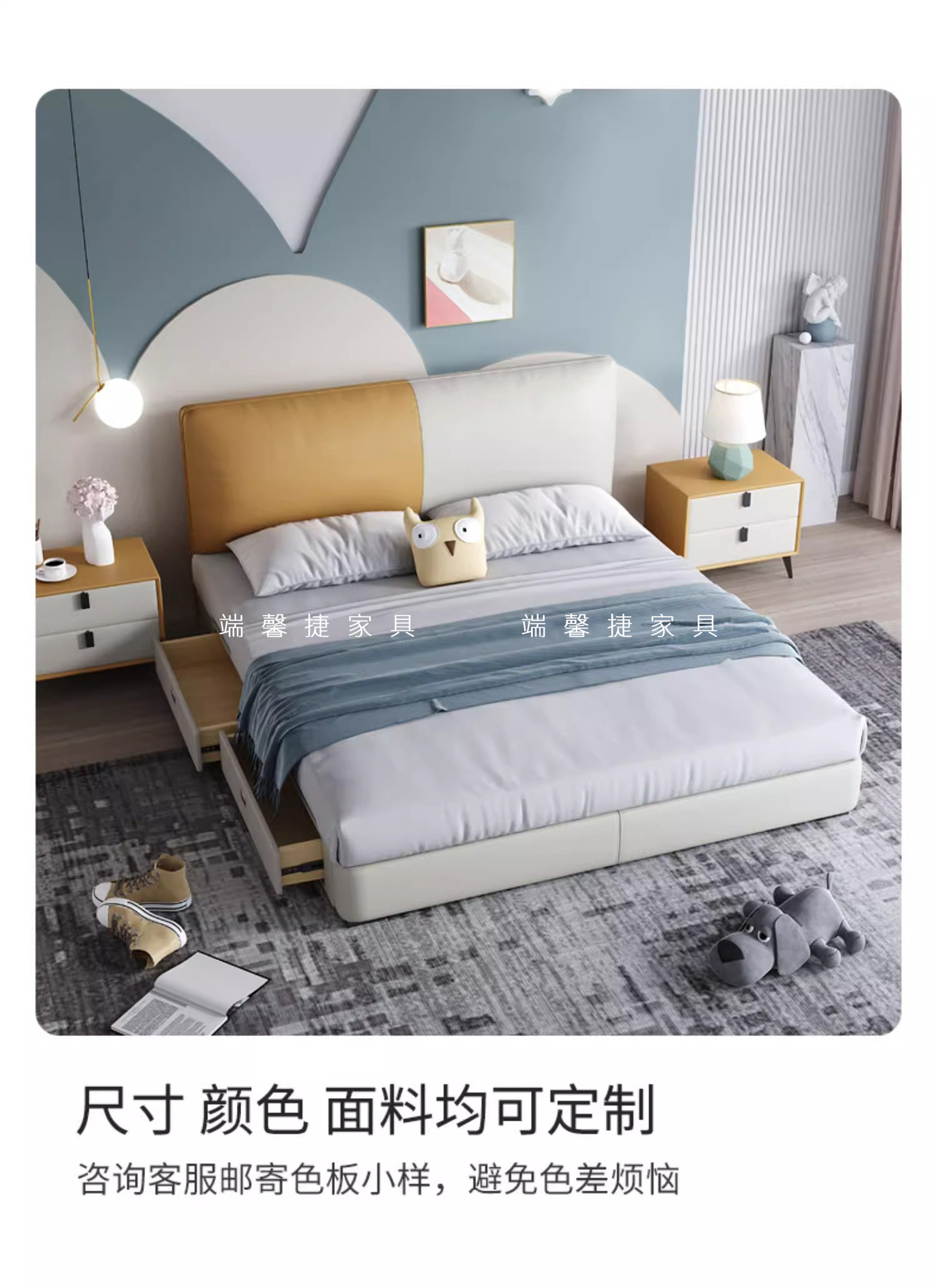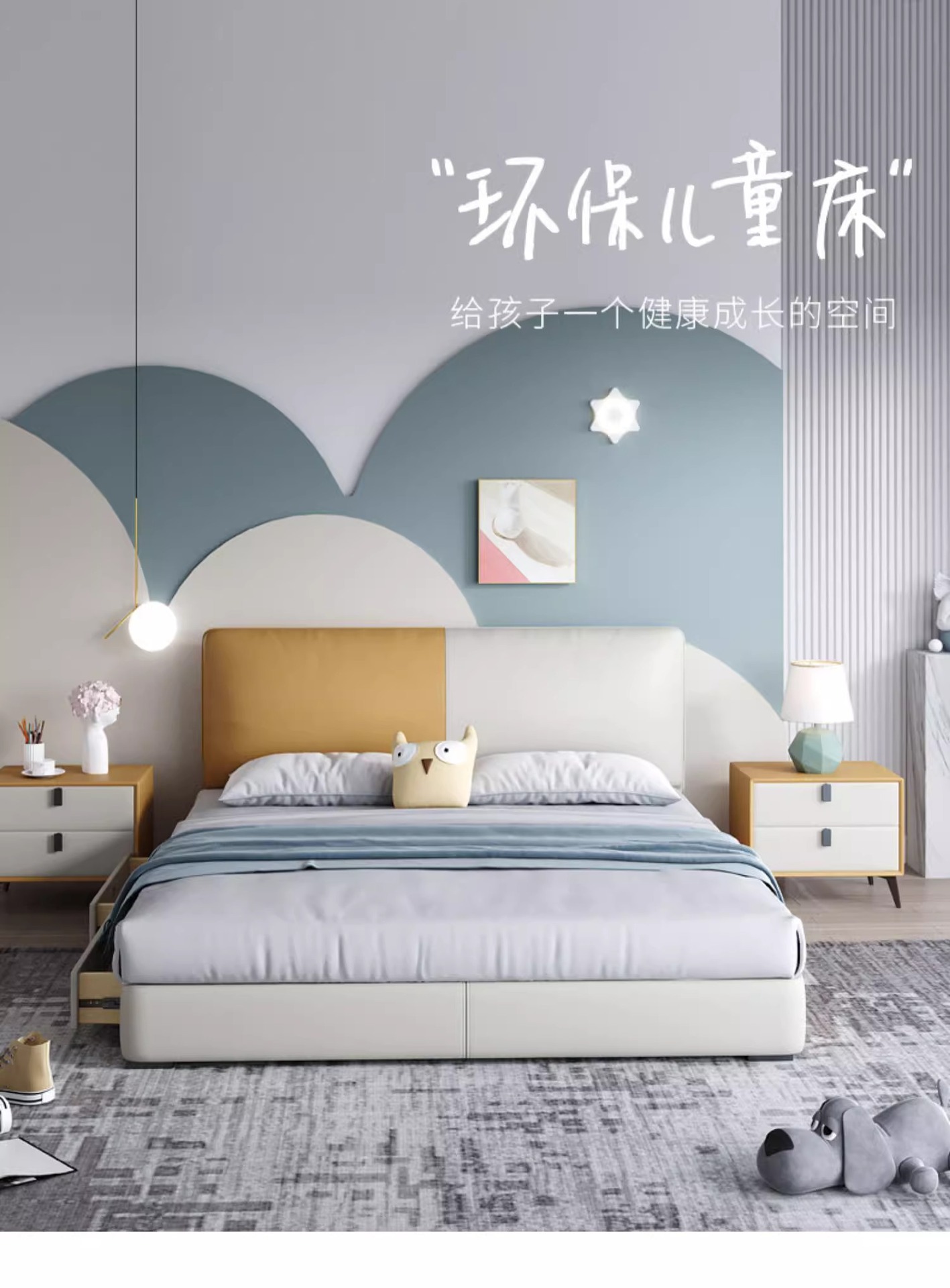 Camas infantiles modernas y simples para adolescentes, niños y niñas, dormitorio individual de 1.35 metros, cajón pequeño, almacenamiento de cama de cuero