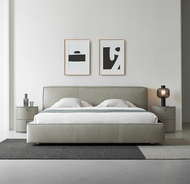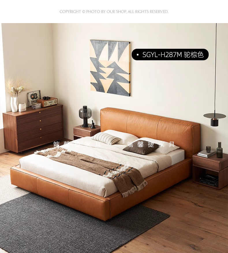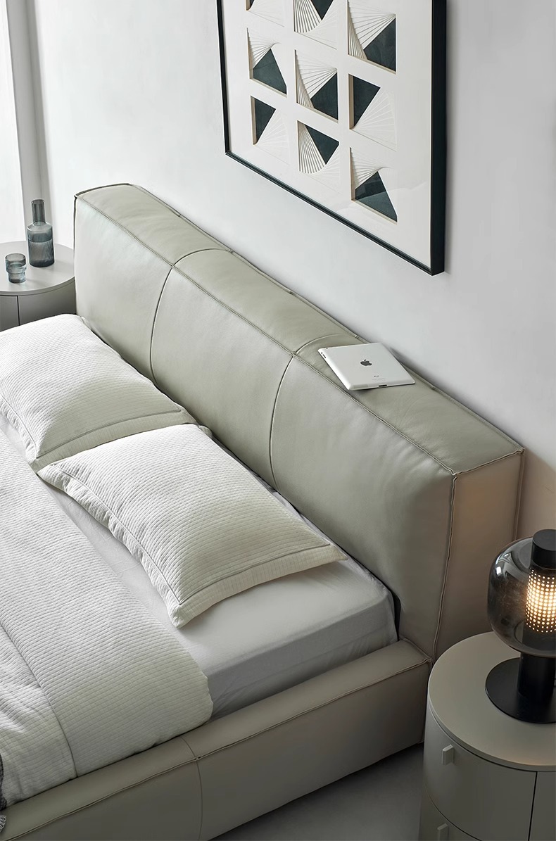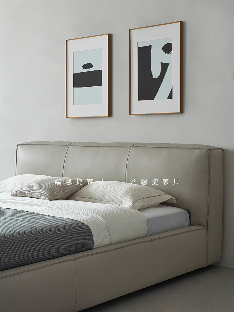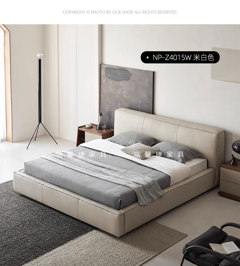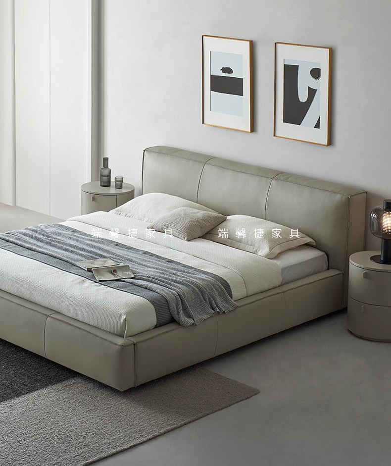 Toast italiano minimalista cama de cuero real moderno dormitorio principal de alta gama elegante cama de cuero completo cama doble cama de boda de diseño