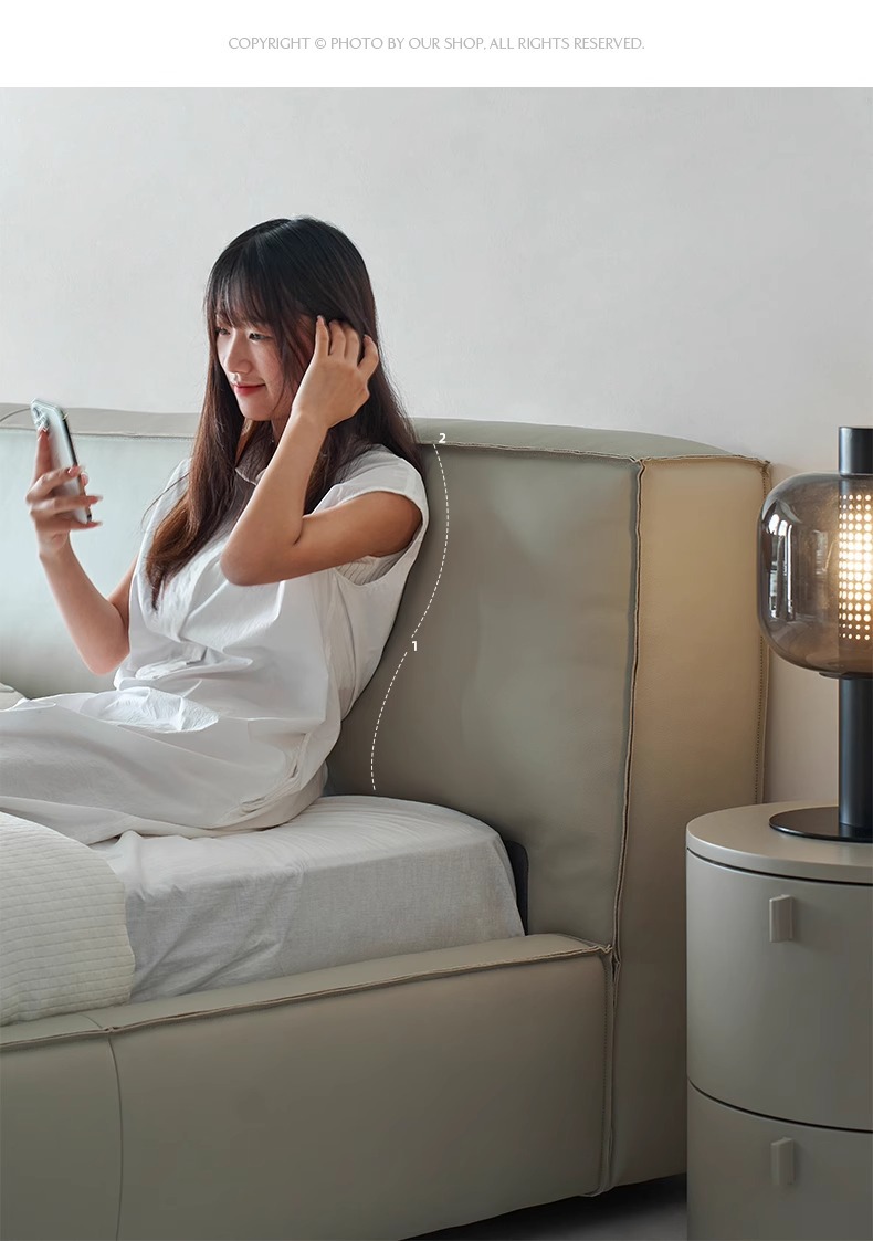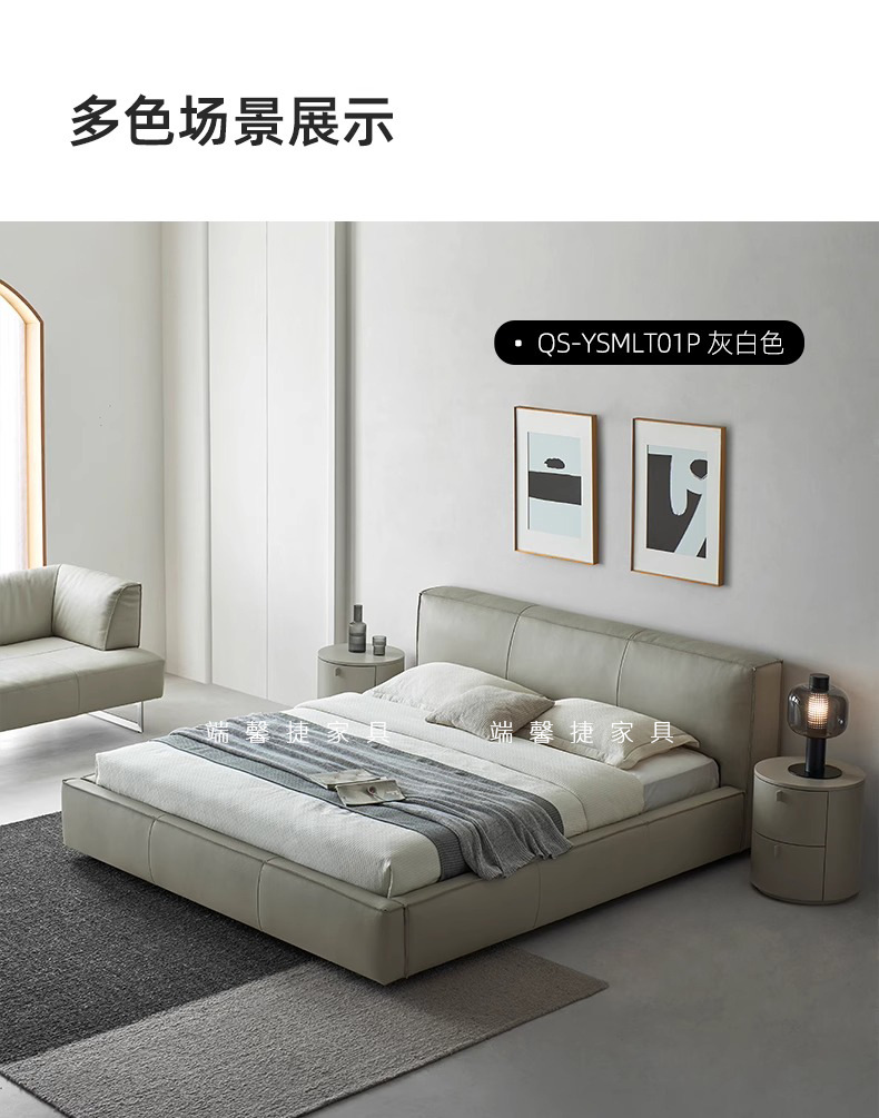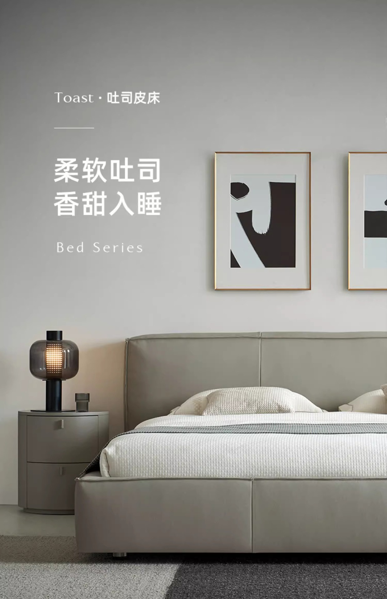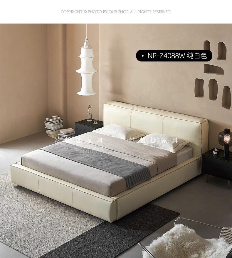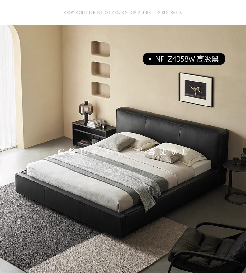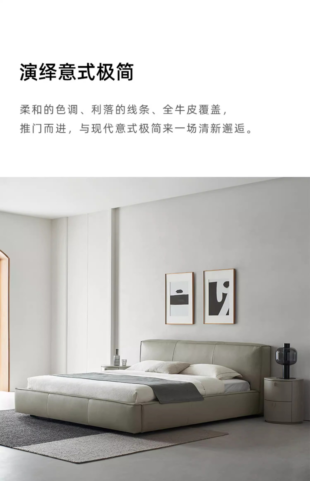 Toast italiano minimalista cama de cuero real moderno dormitorio principal de alta gama elegante cama de cuero completo cama doble cama de boda de diseño