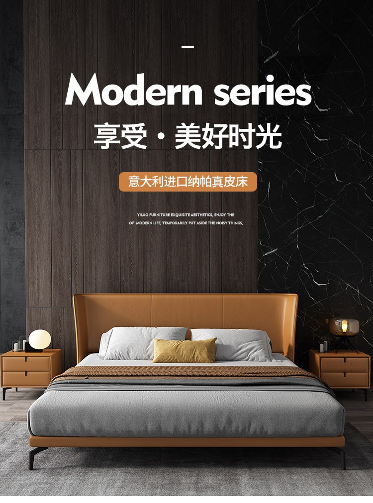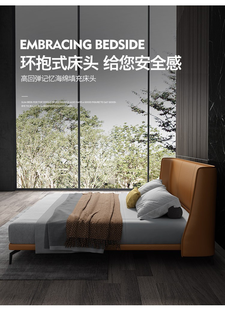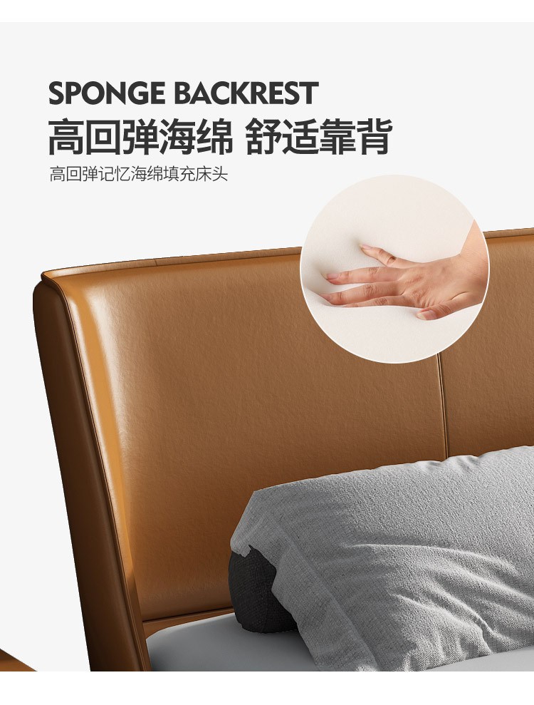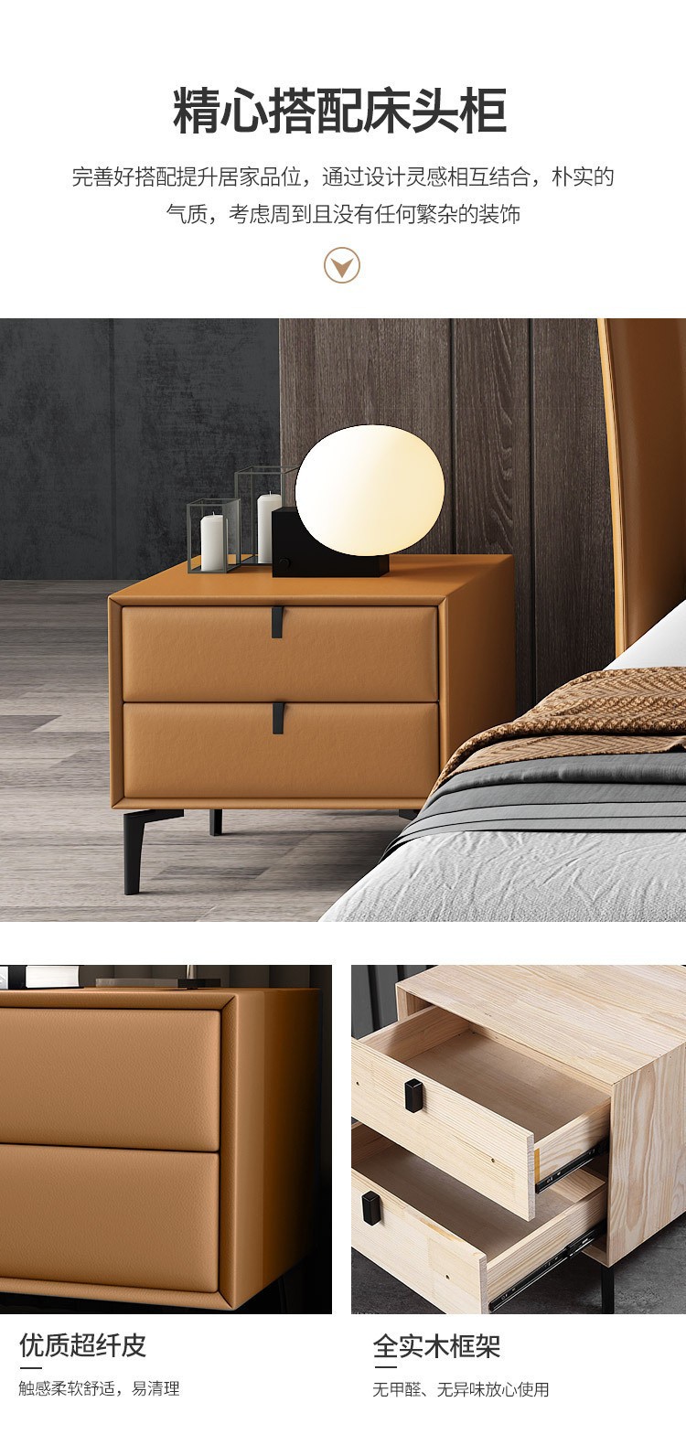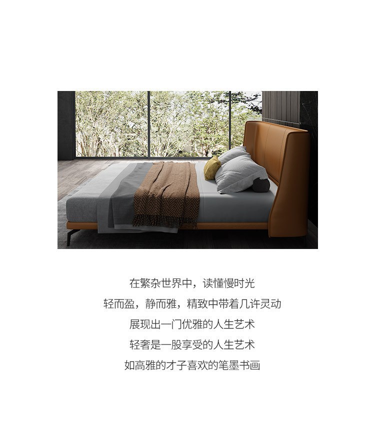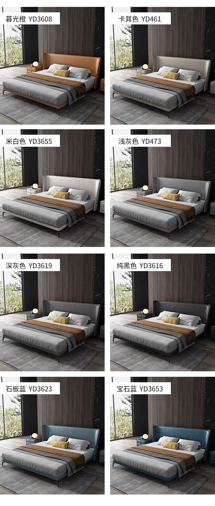 Cama de cuero real minimalista italiano moderno dormitorio principal minimalista cama naranja de gama alta elegante diseñador cama doble cama de boda