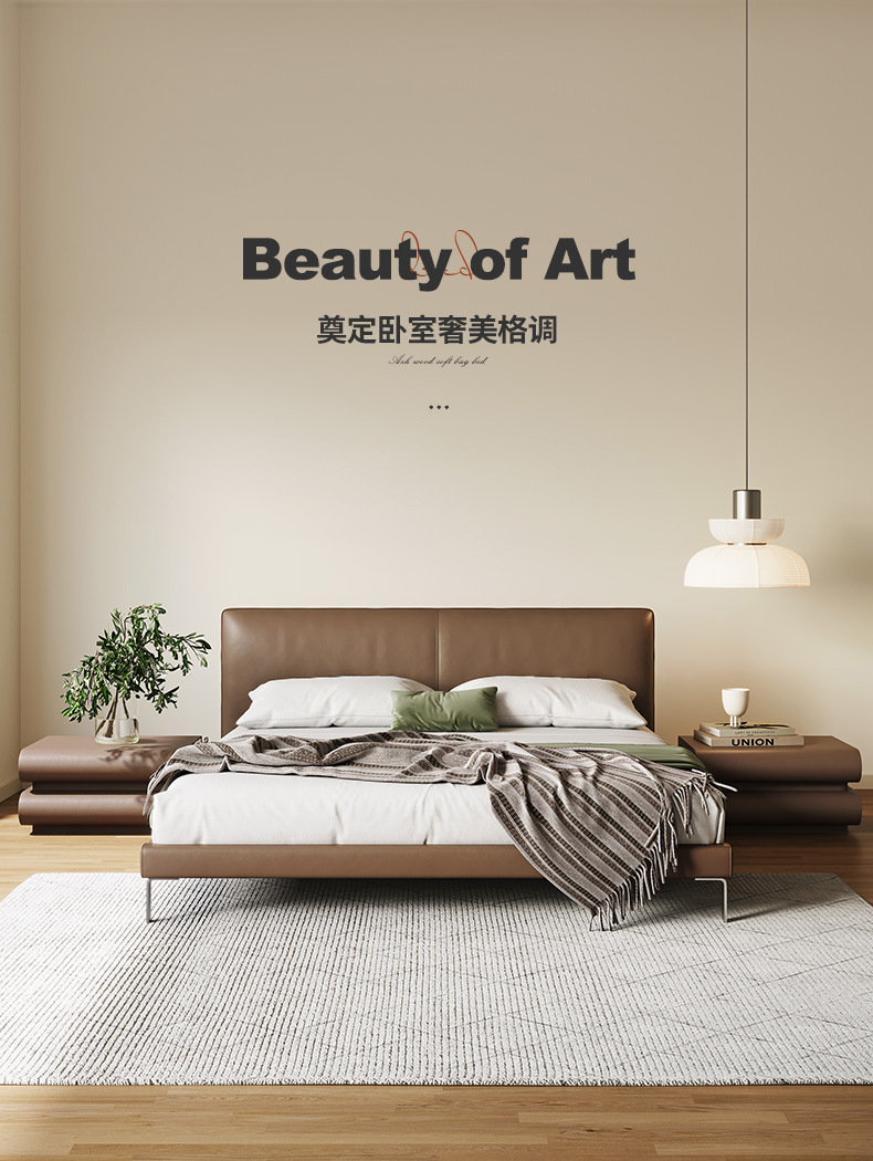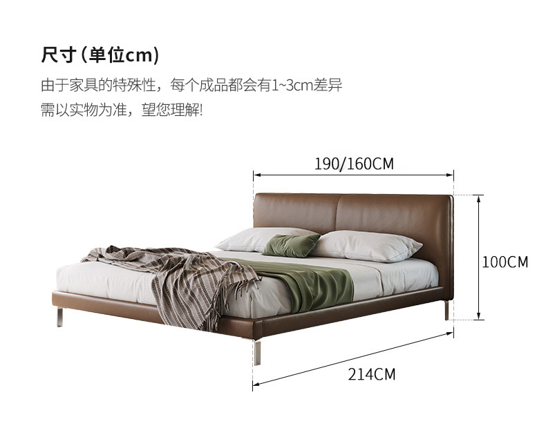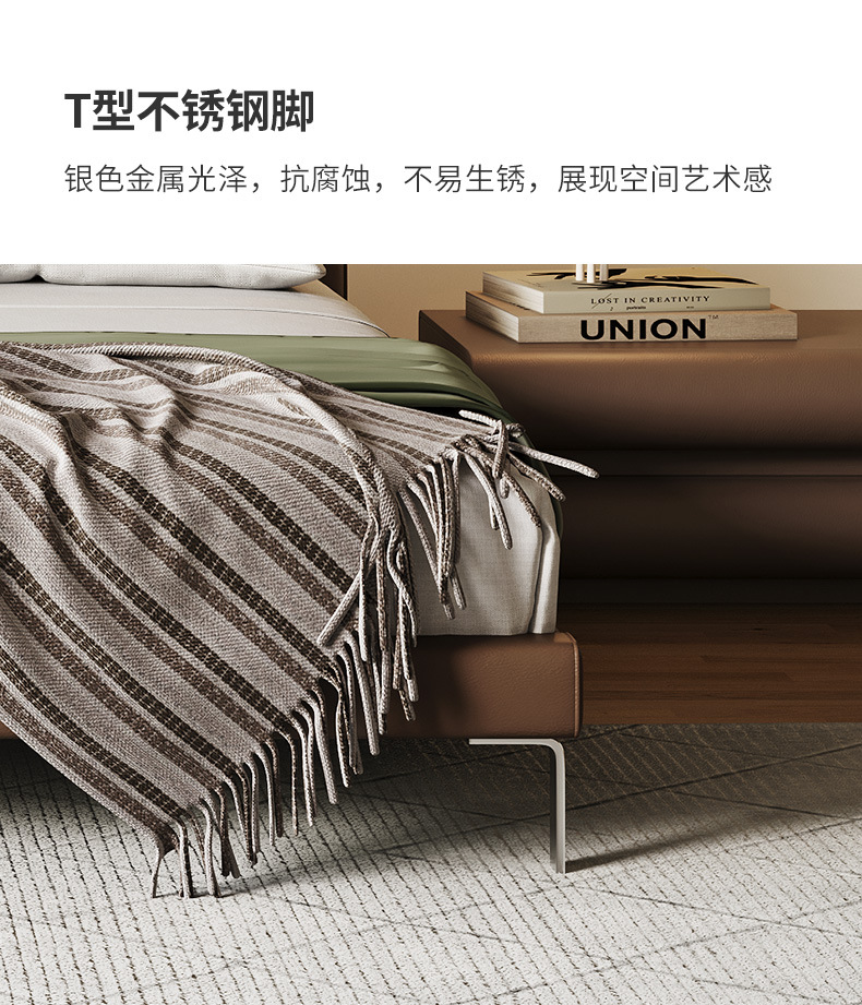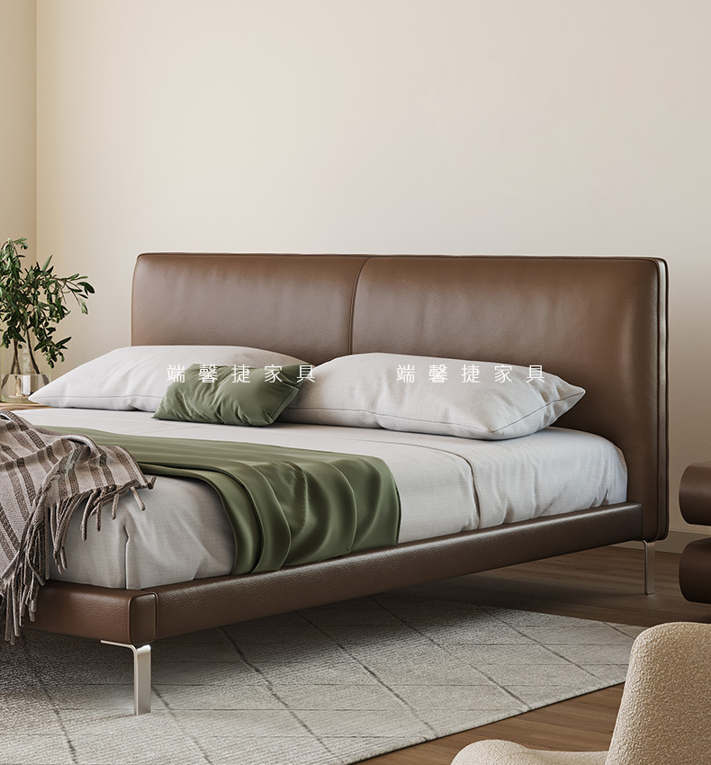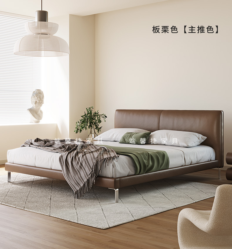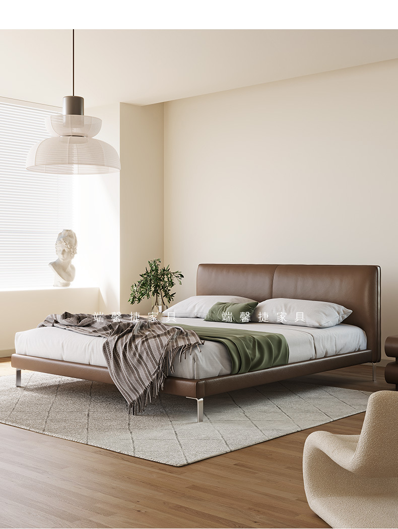 Cama de Cuero genuino moderno minimalista primera capa de piel de vaca cama doble 1,8 m Italiano minimalista retro diseñador de la cama de cuero genuino