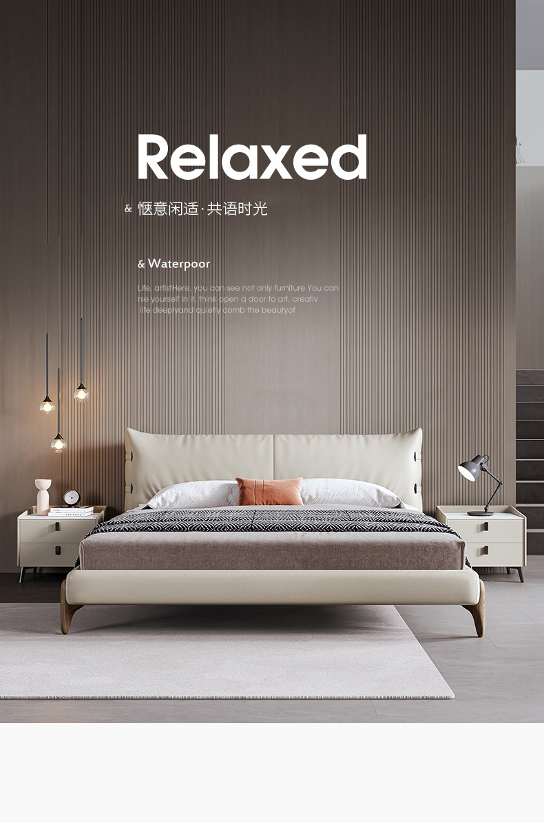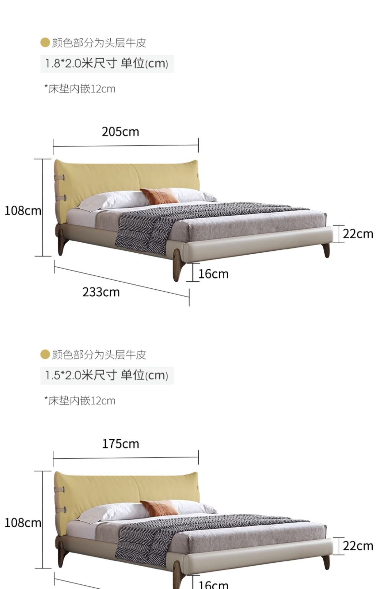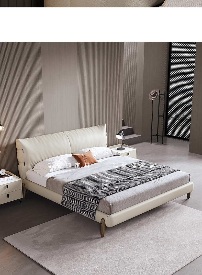 Moderno simple cama de cuero real dormitorio principal cama doble 1,8 m simple bolsa suave doble boda Cama grande cama 2023 nuevo