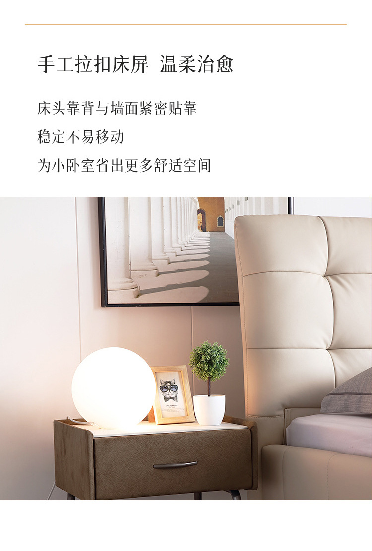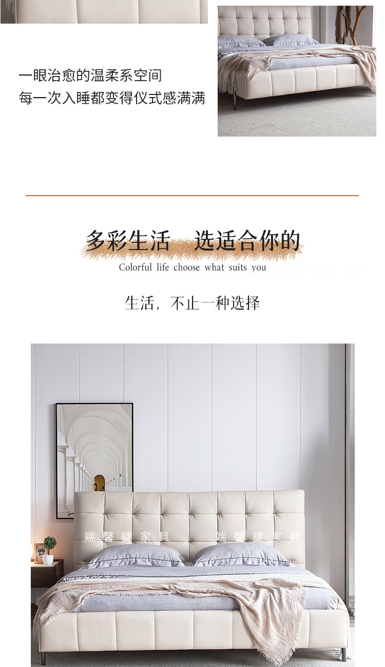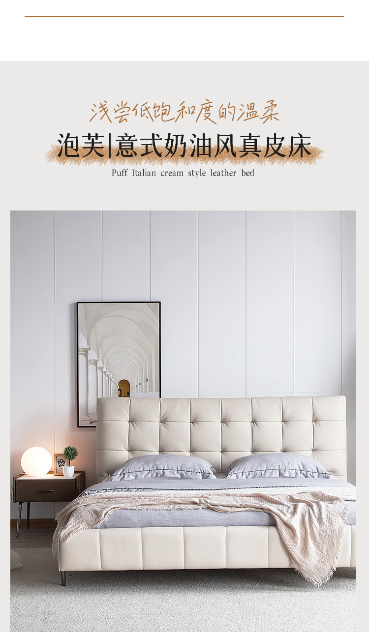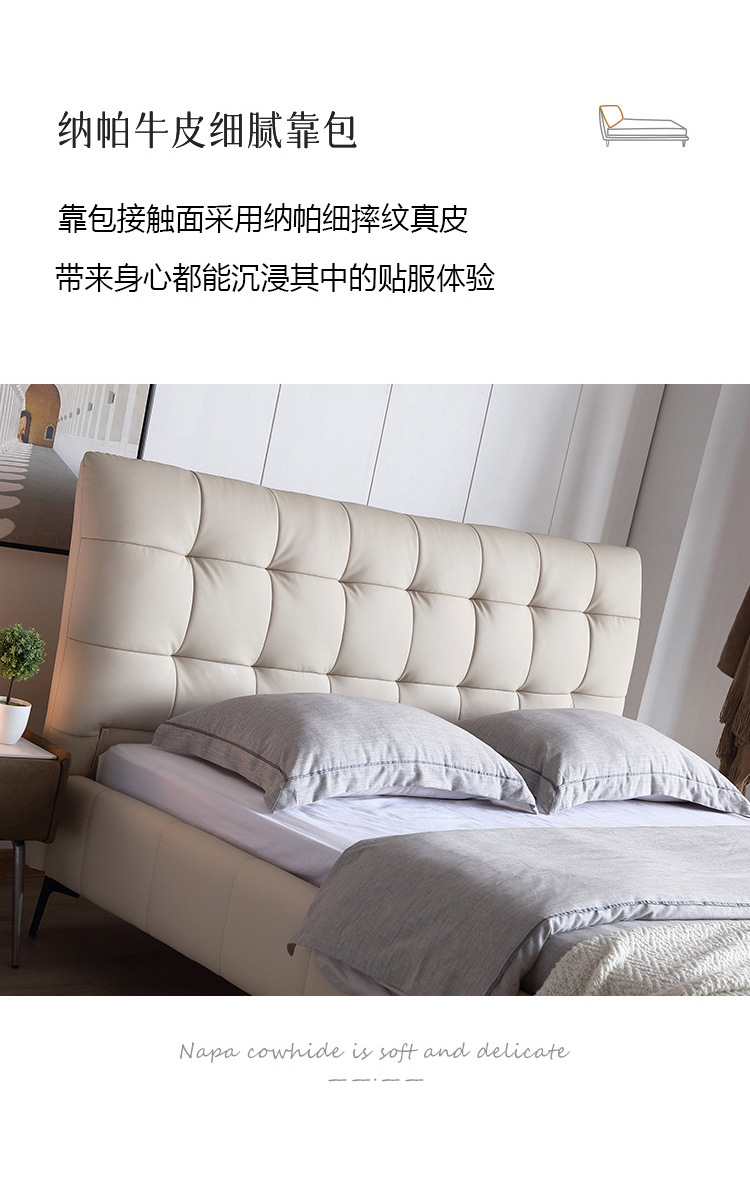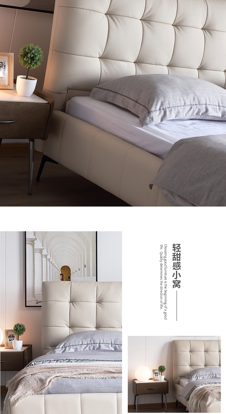 Cama de cuero genuino estilo crema cama doble minimalista moderno dormitorio principal cama de boda de 1,8 m diseñador tire hebilla cama de cuero cama suave