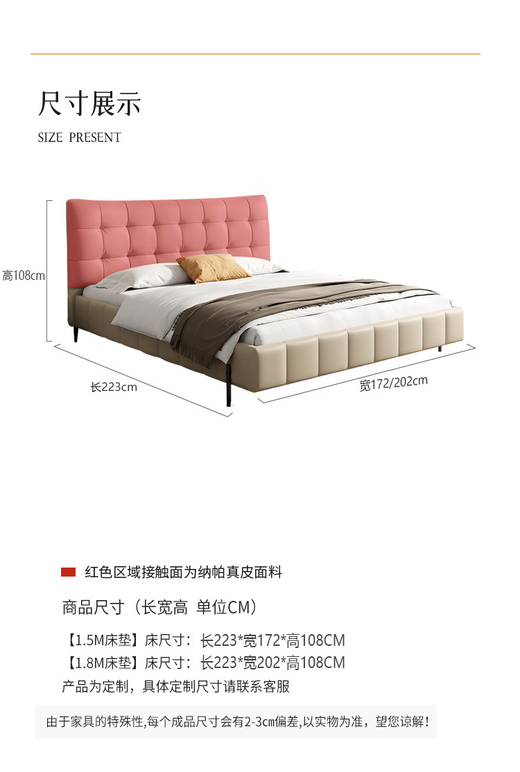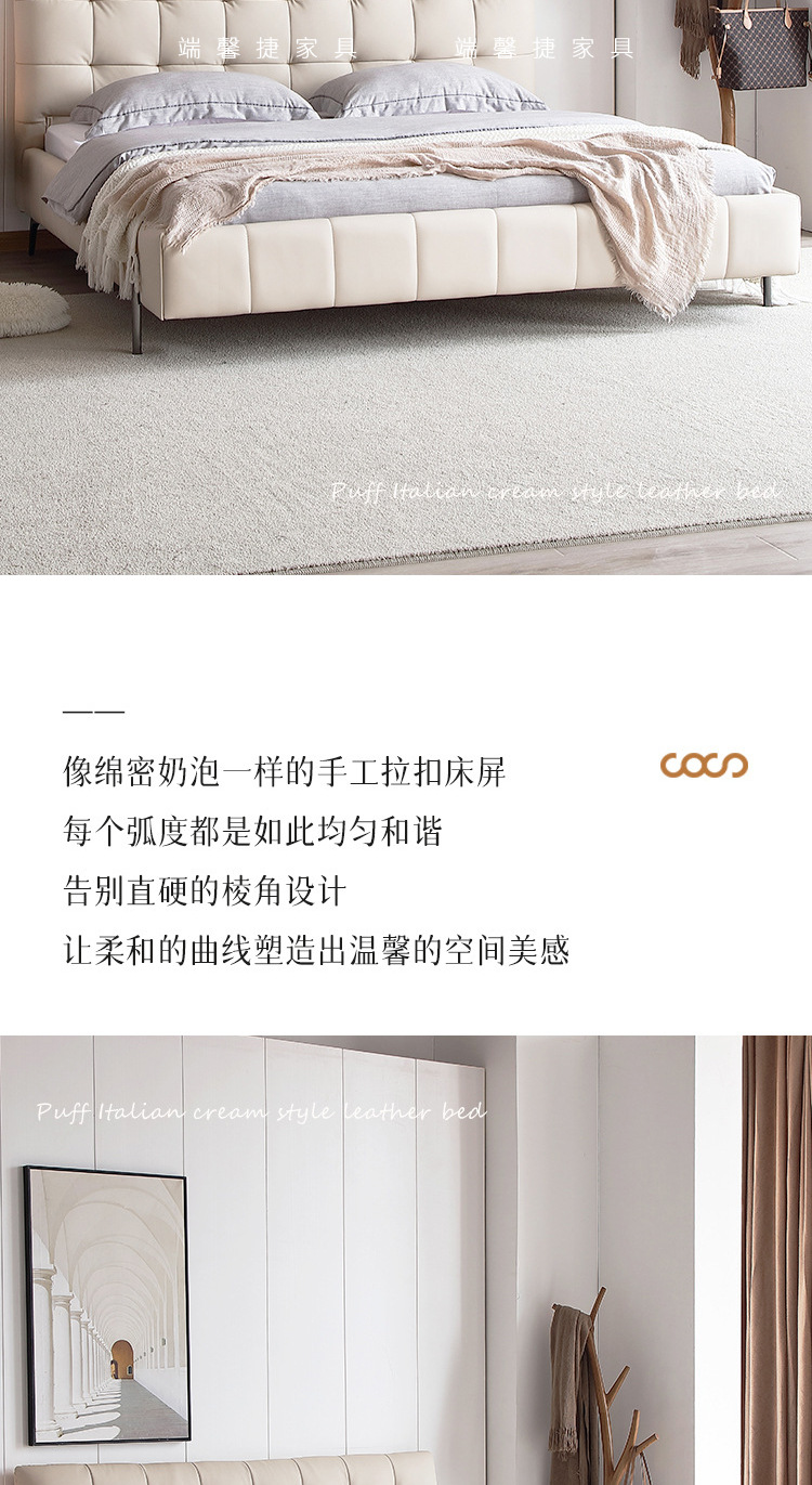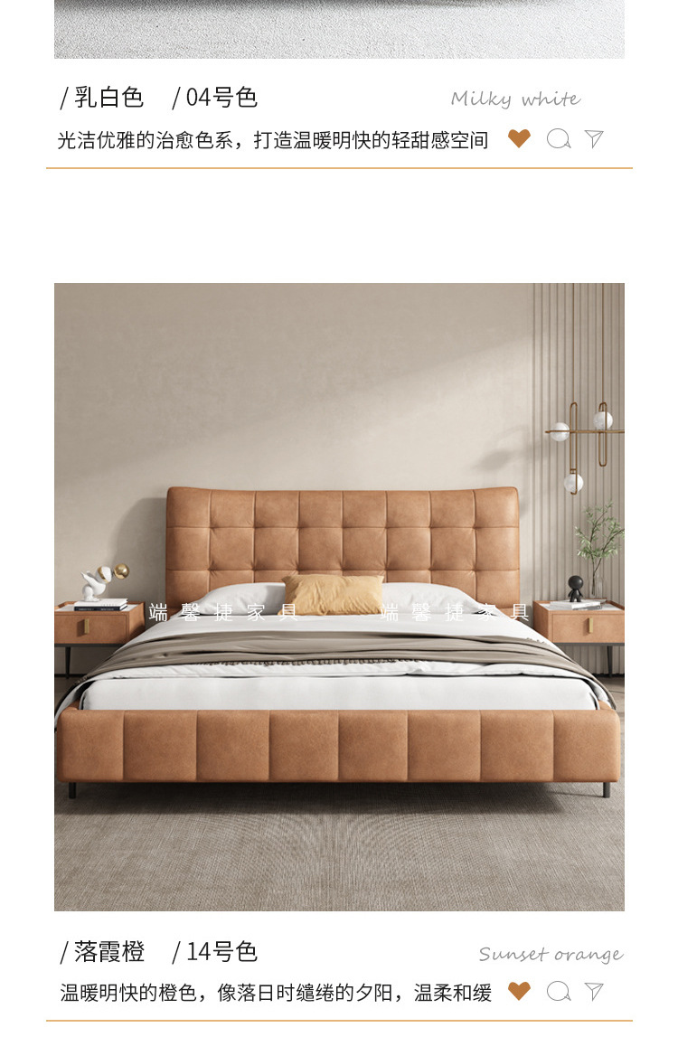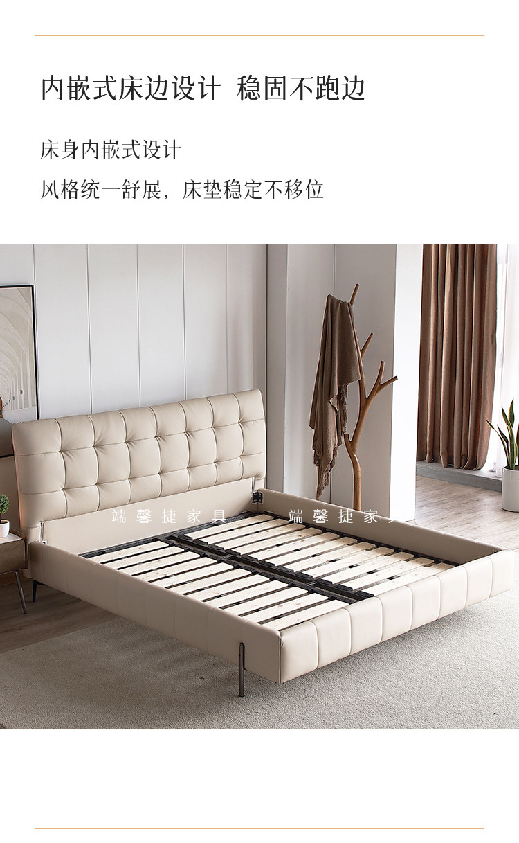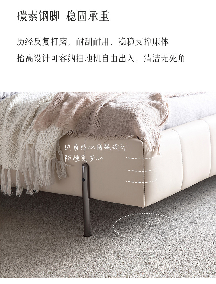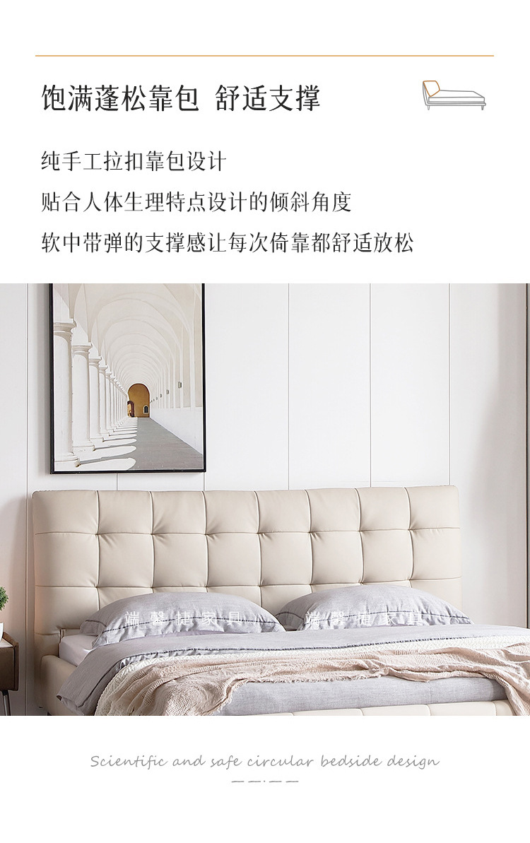 Cama de cuero genuino estilo crema cama doble minimalista moderno dormitorio principal cama de boda de 1,8 m diseñador tire hebilla cama de cuero cama suave