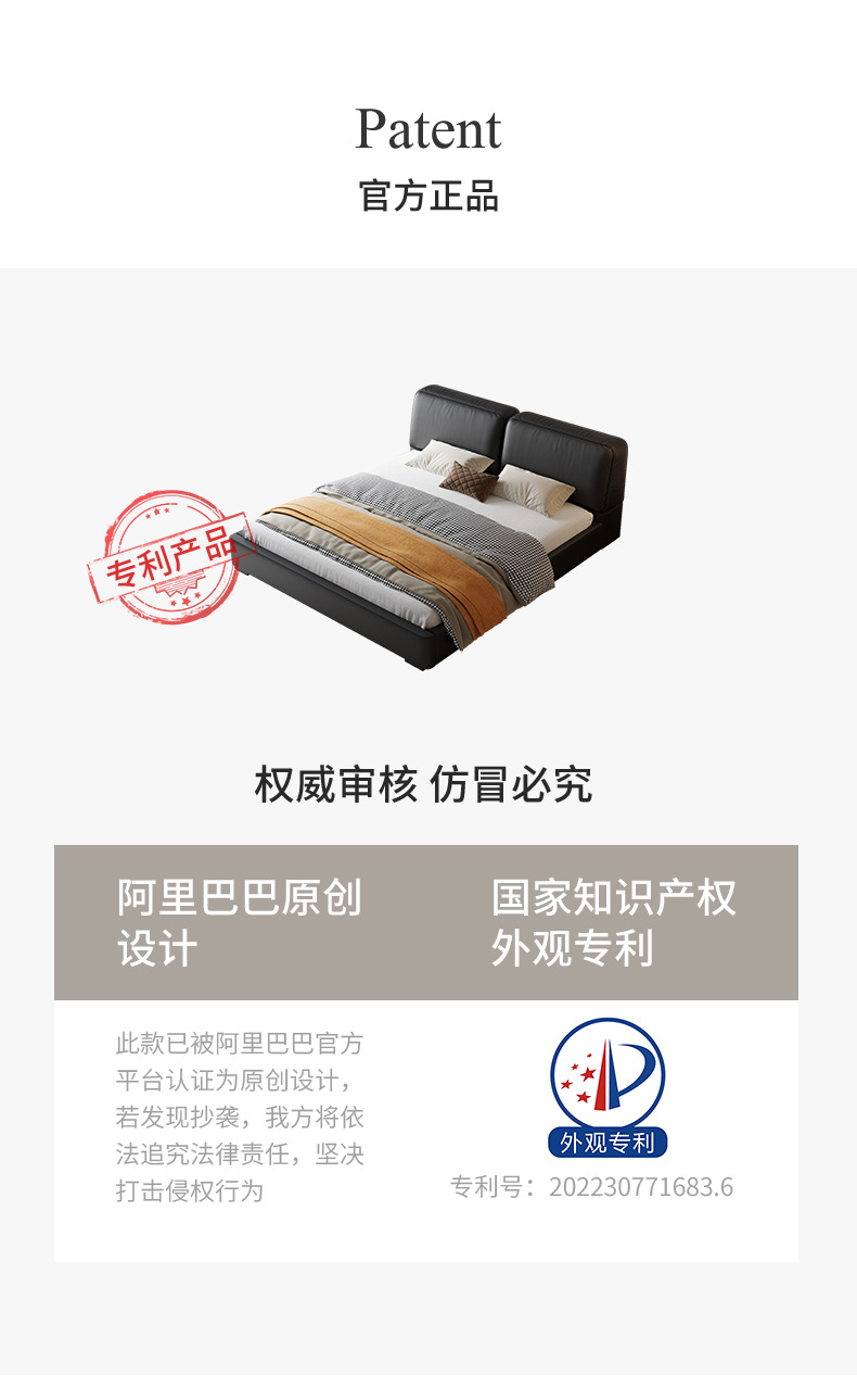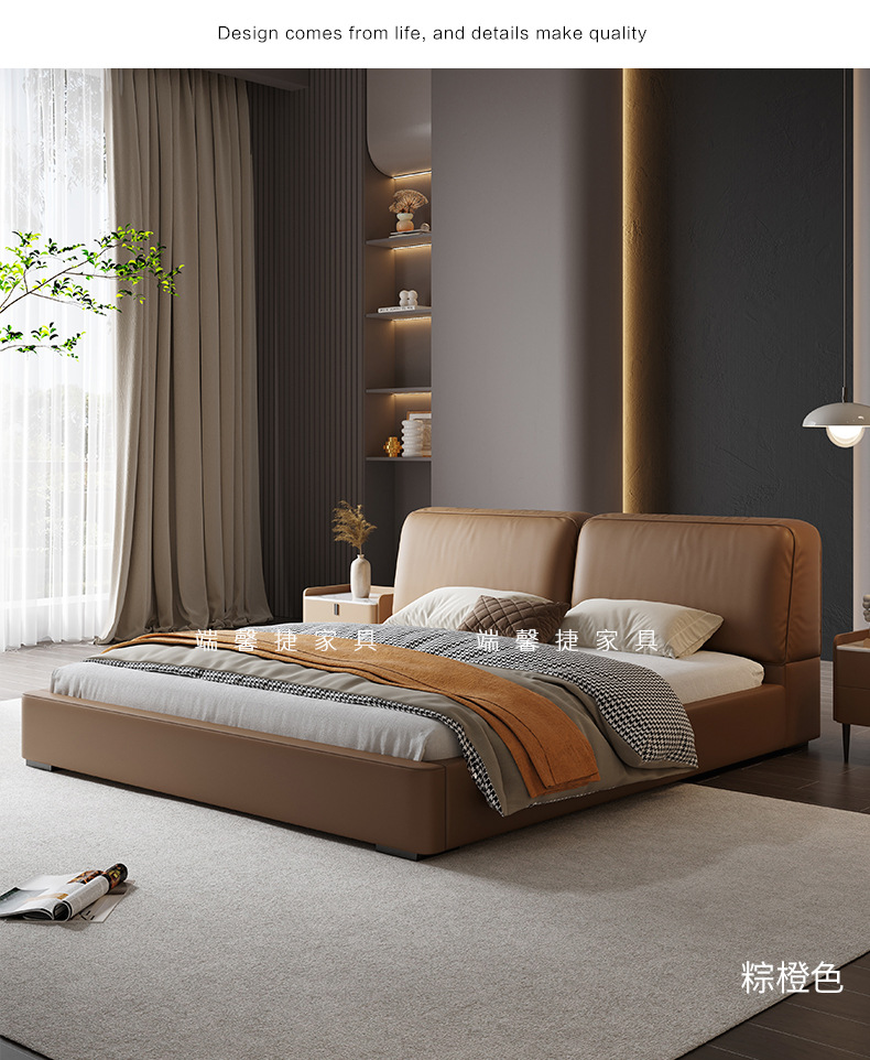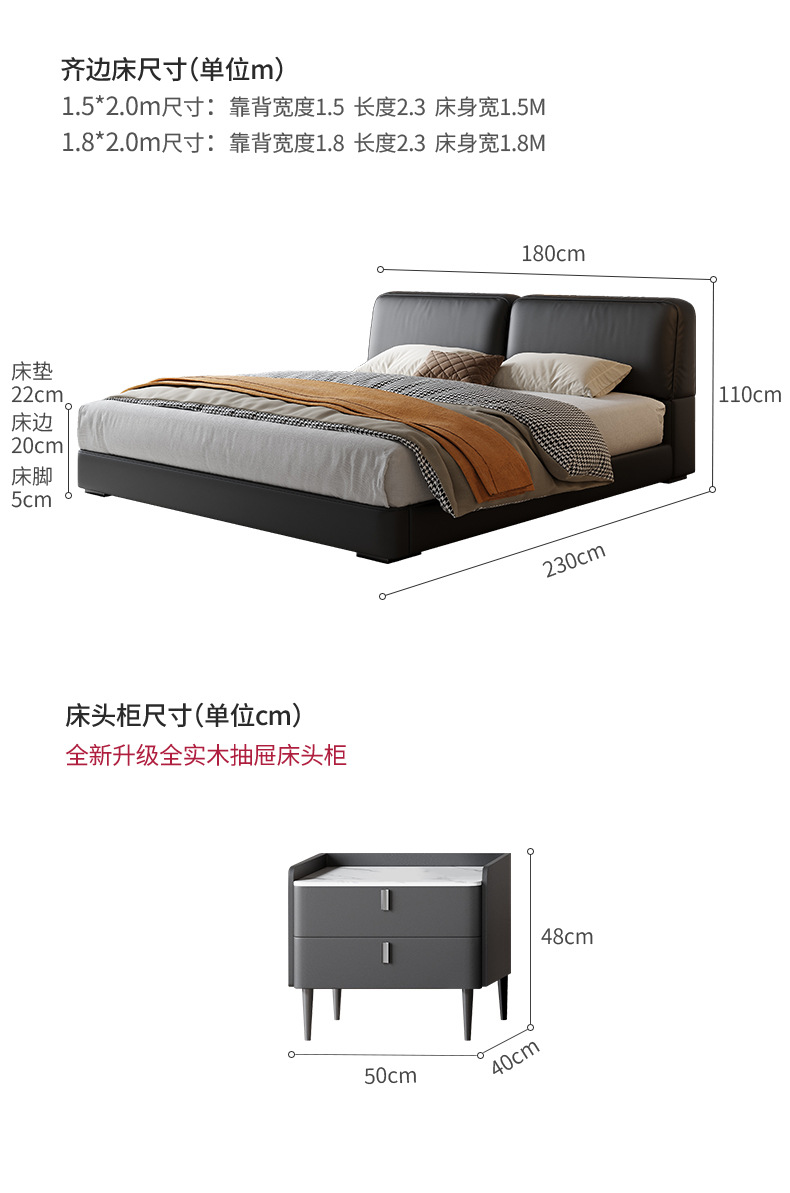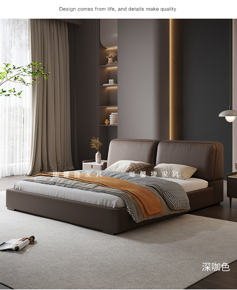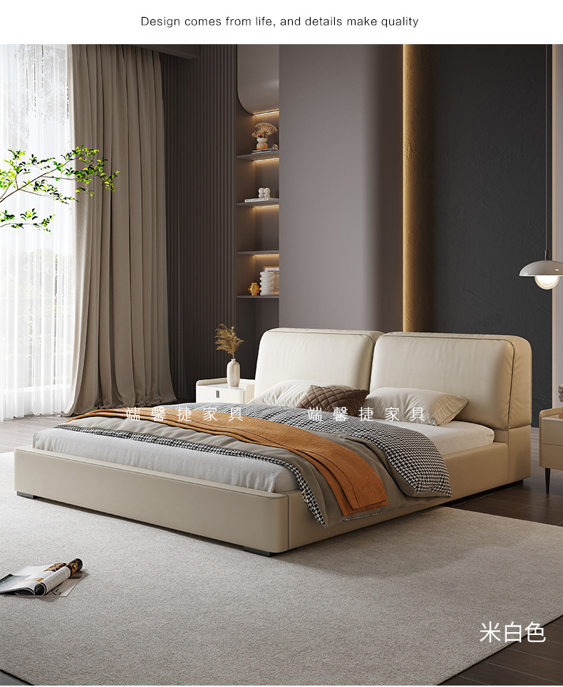 Imagen de verano cama de cuero genuino italiano minimalista gran vaca negra cuadrada cama doble 1,8 m Cama grande piso simple cama de boda negro