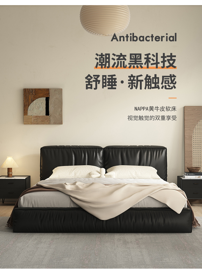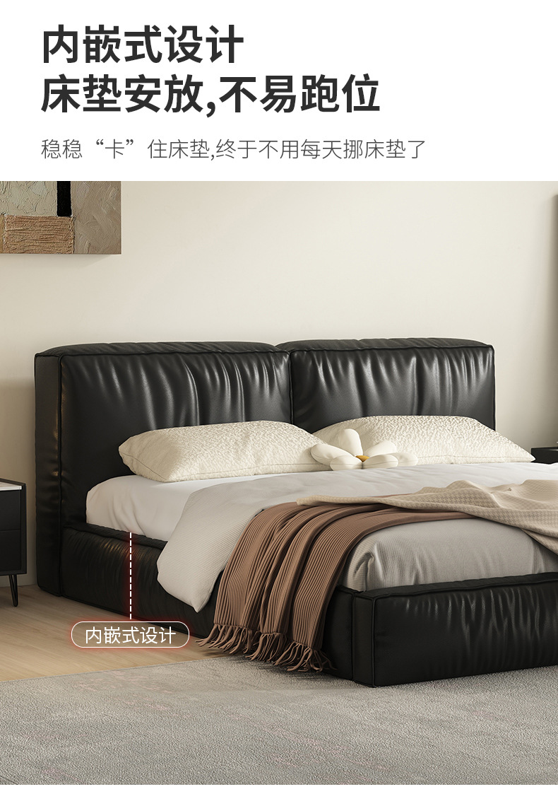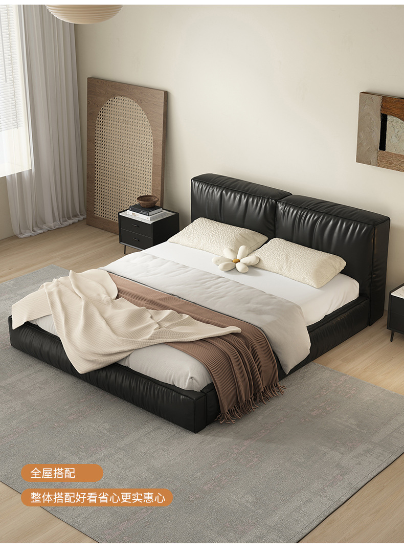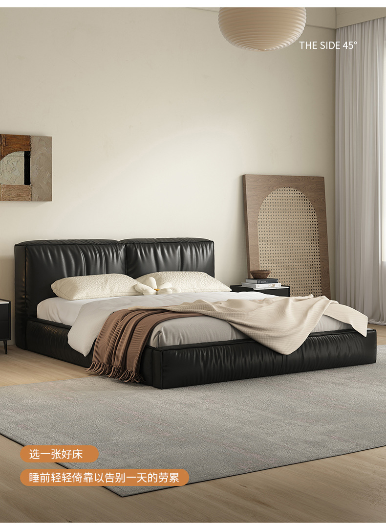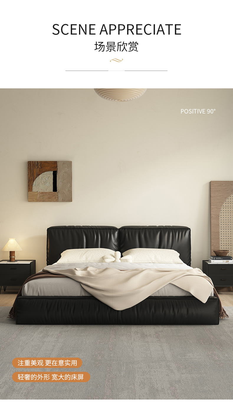 Bloqueo de tofu cama de cuero italiano minimalista cama doble cama principal cama de alta gama atmósfera cama de cuero negro fábrica directa