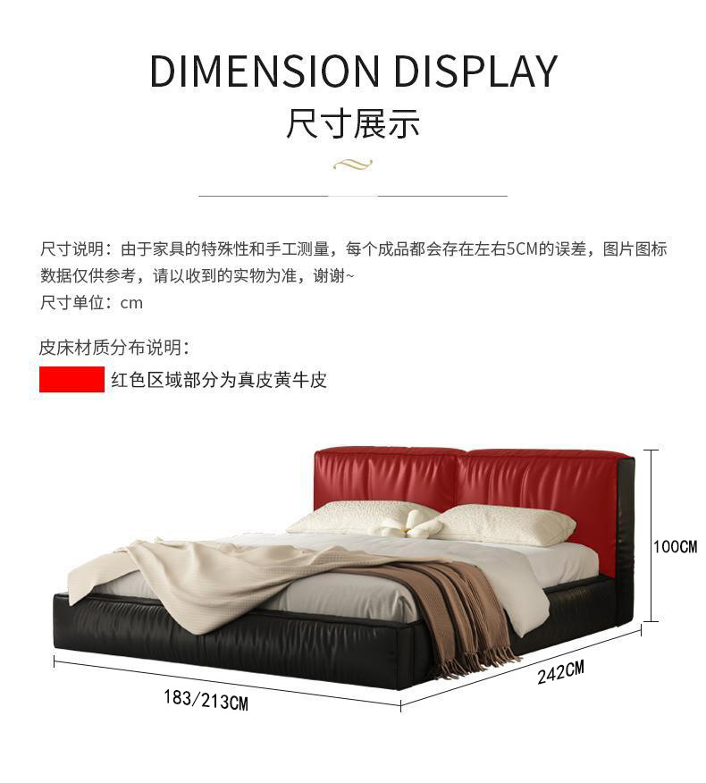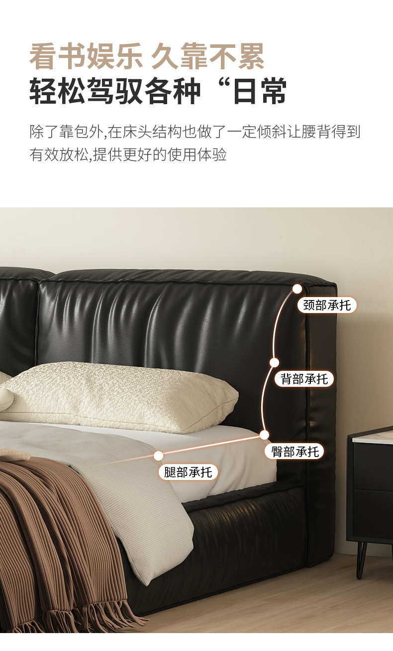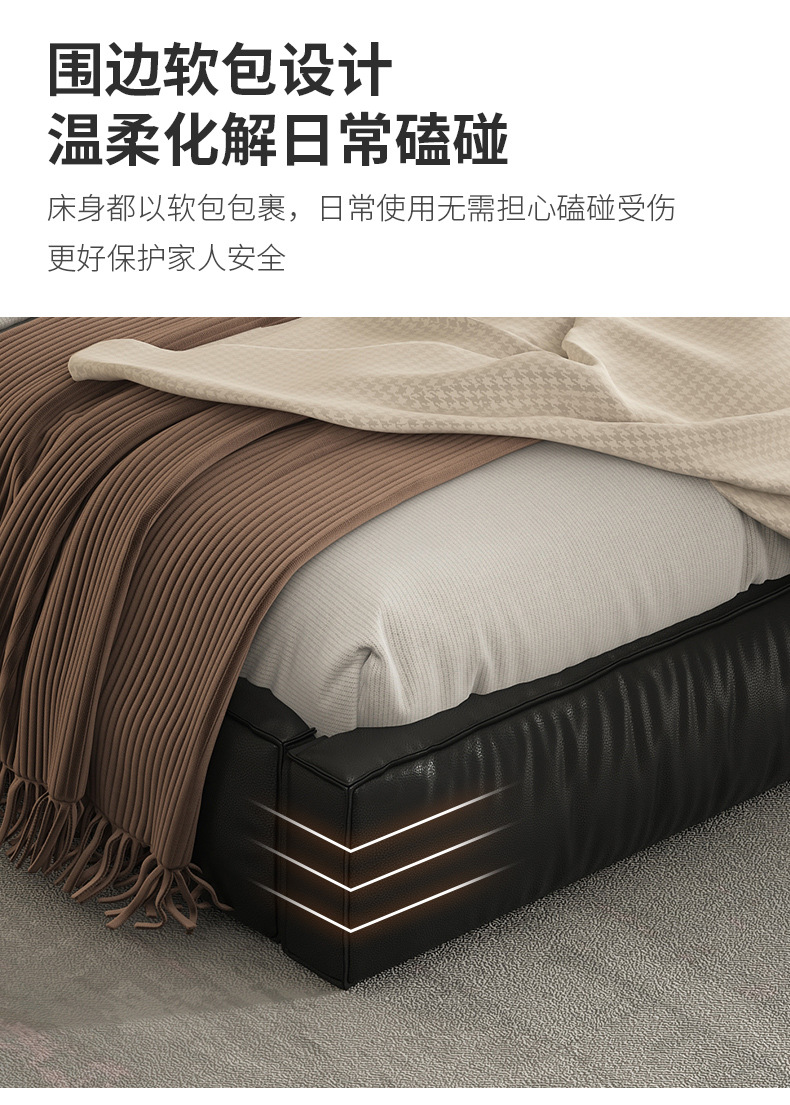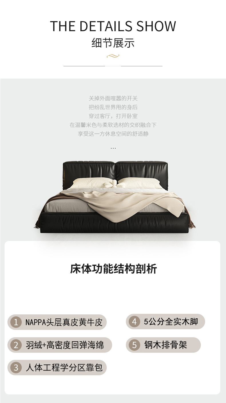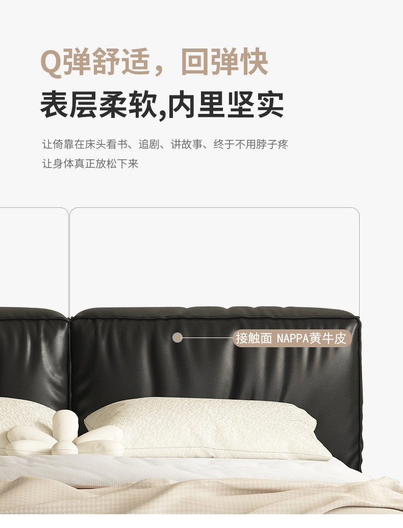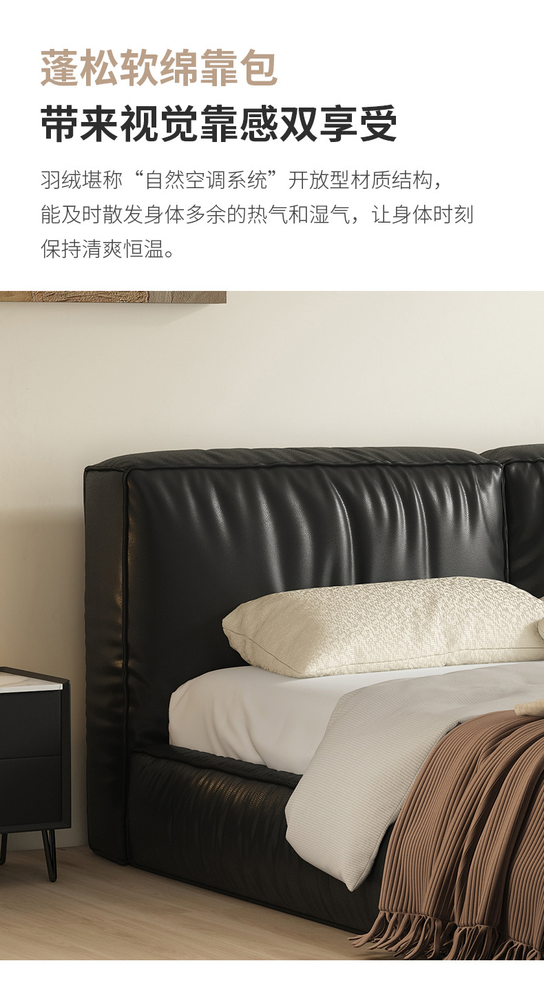 Bloqueo de tofu cama de cuero italiano minimalista cama doble cama principal cama de alta gama atmósfera cama de cuero negro fábrica directa