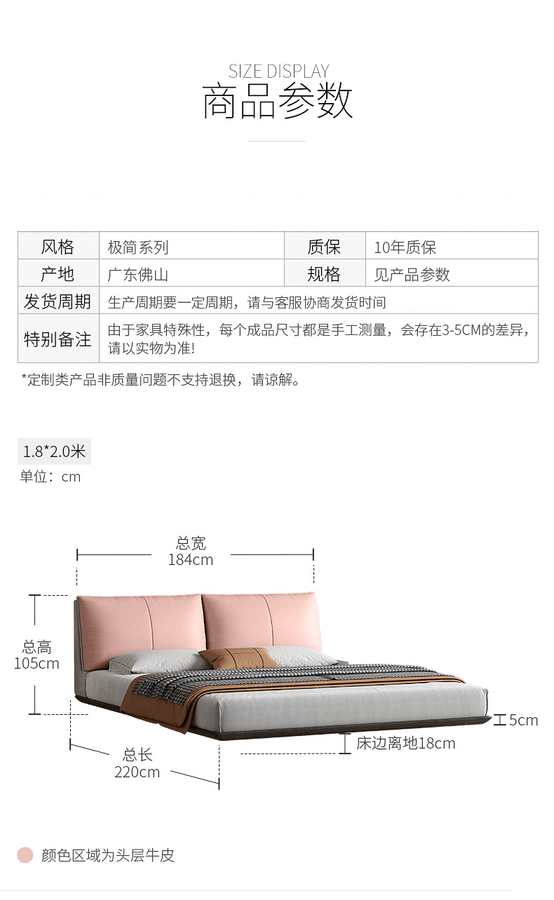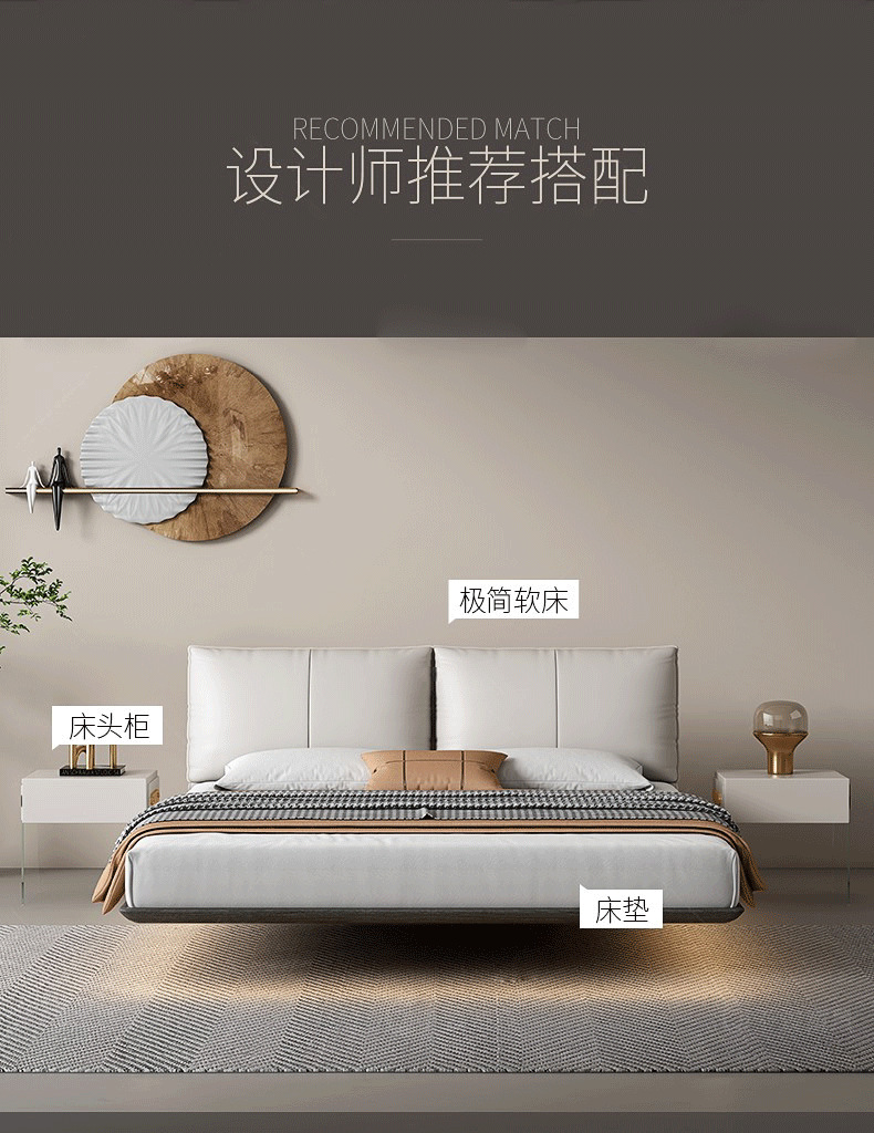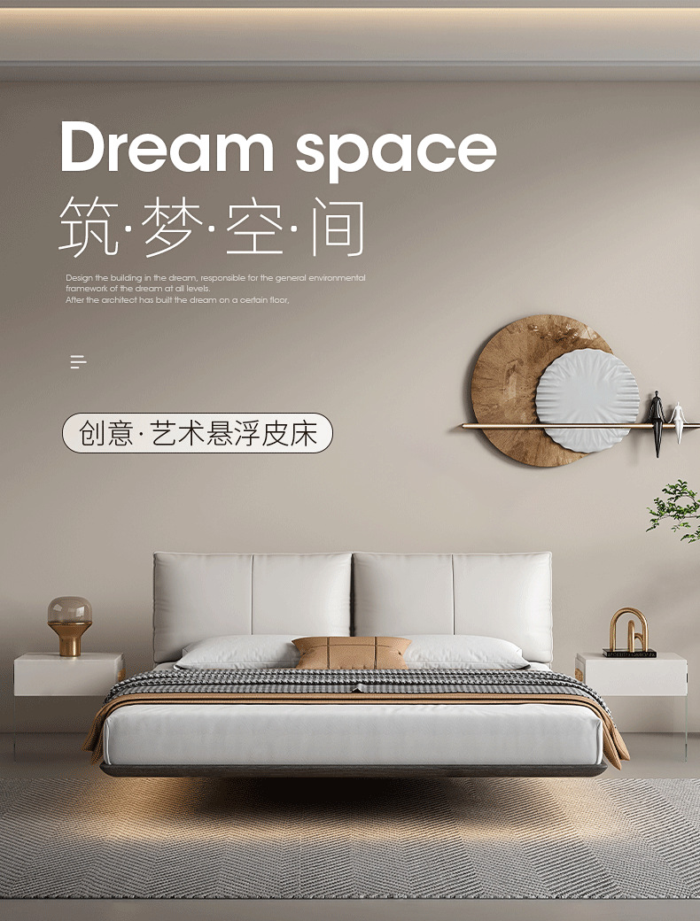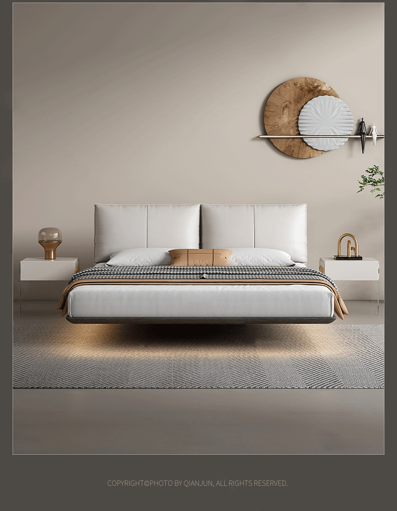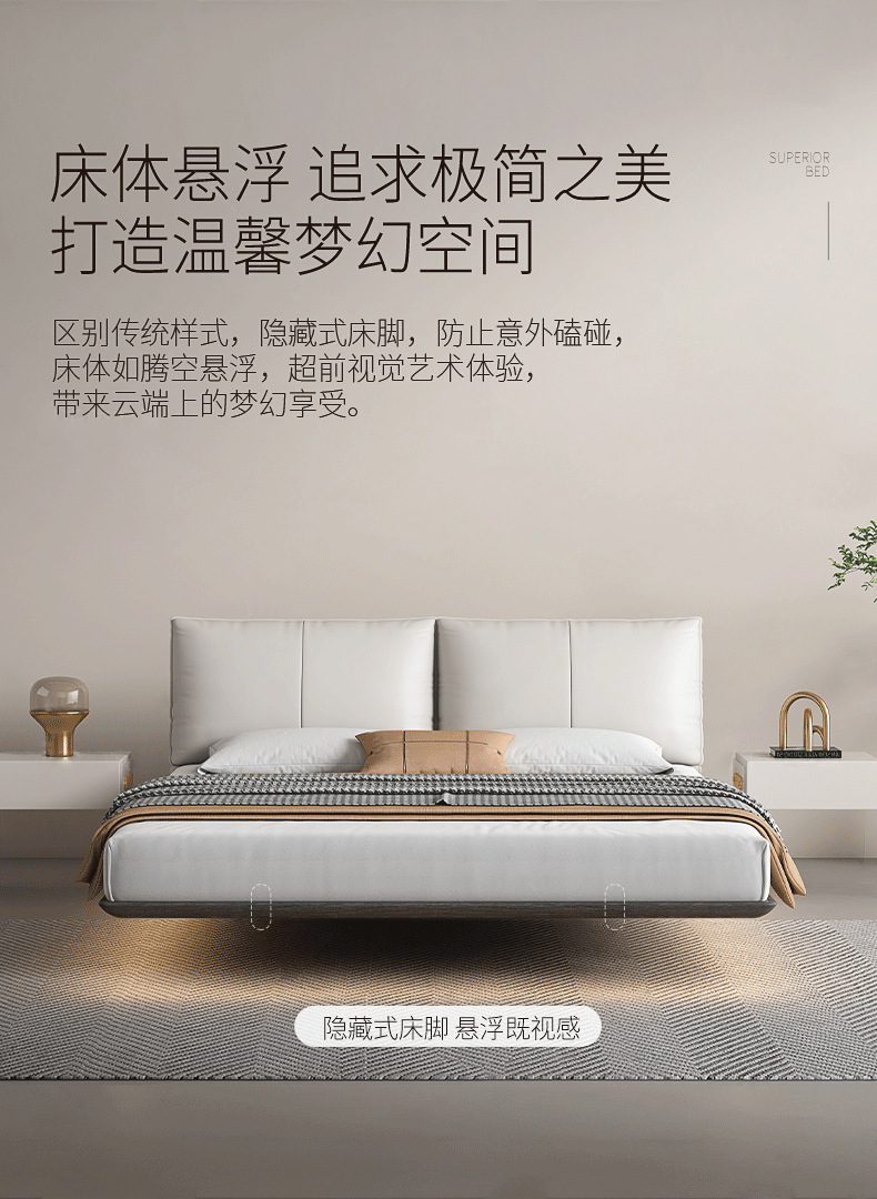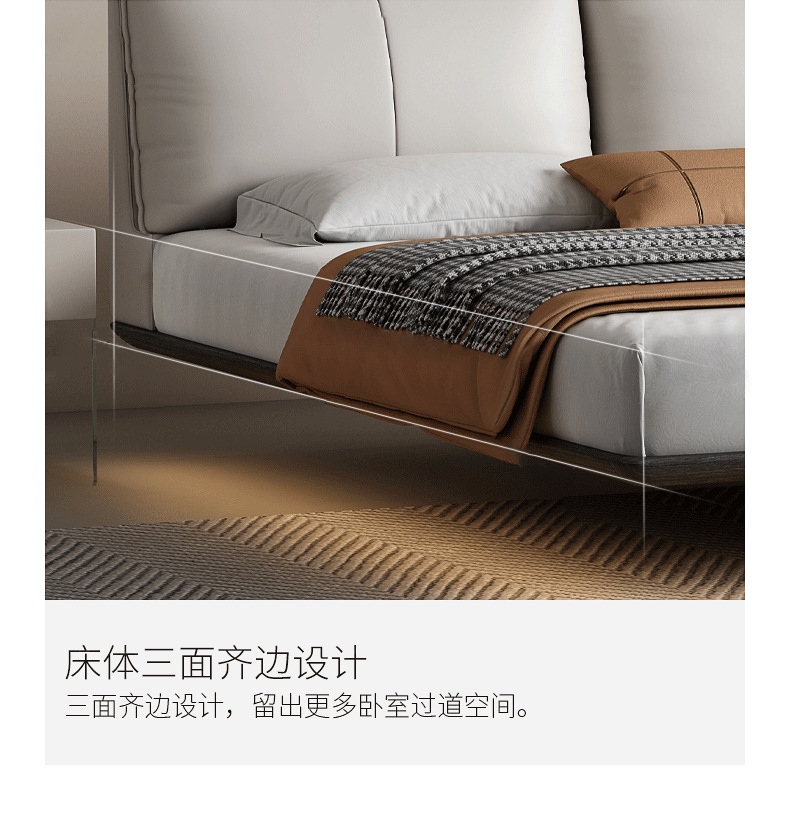Cama de cuero genuino italiano cama de suspensión minimalista cama doble dormitorio principal 1,8 m cama de boda simple cama suave ventas directas de la fábrica