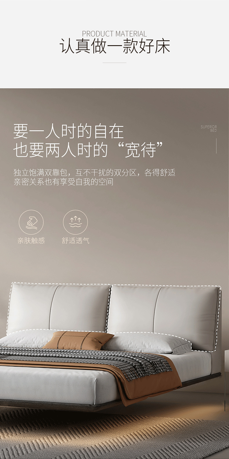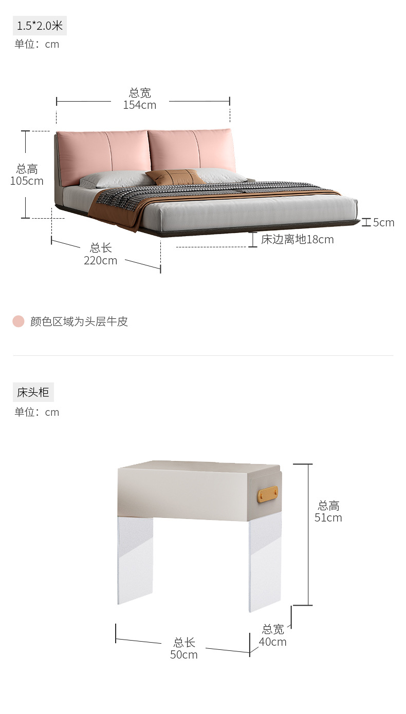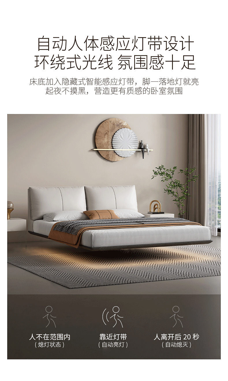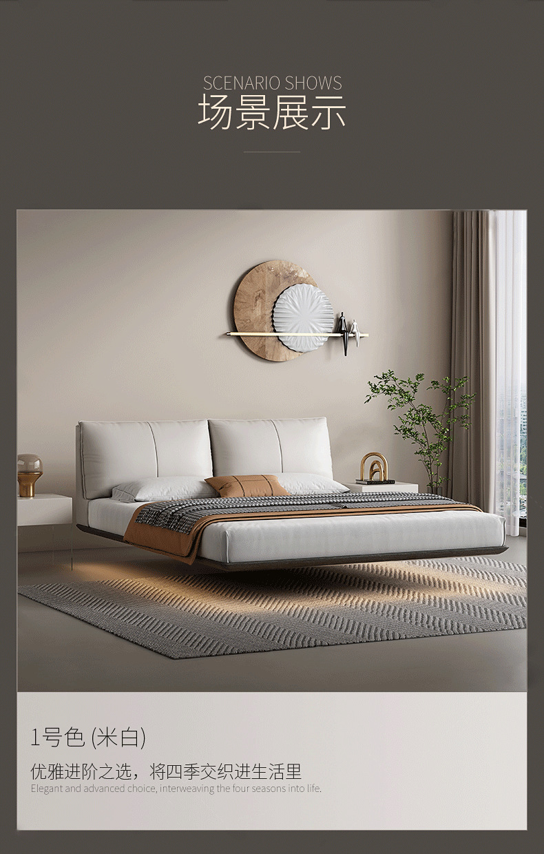Cama de cuero genuino italiano cama de suspensión minimalista cama doble dormitorio principal 1,8 m cama de boda simple cama suave ventas directas de la fábrica