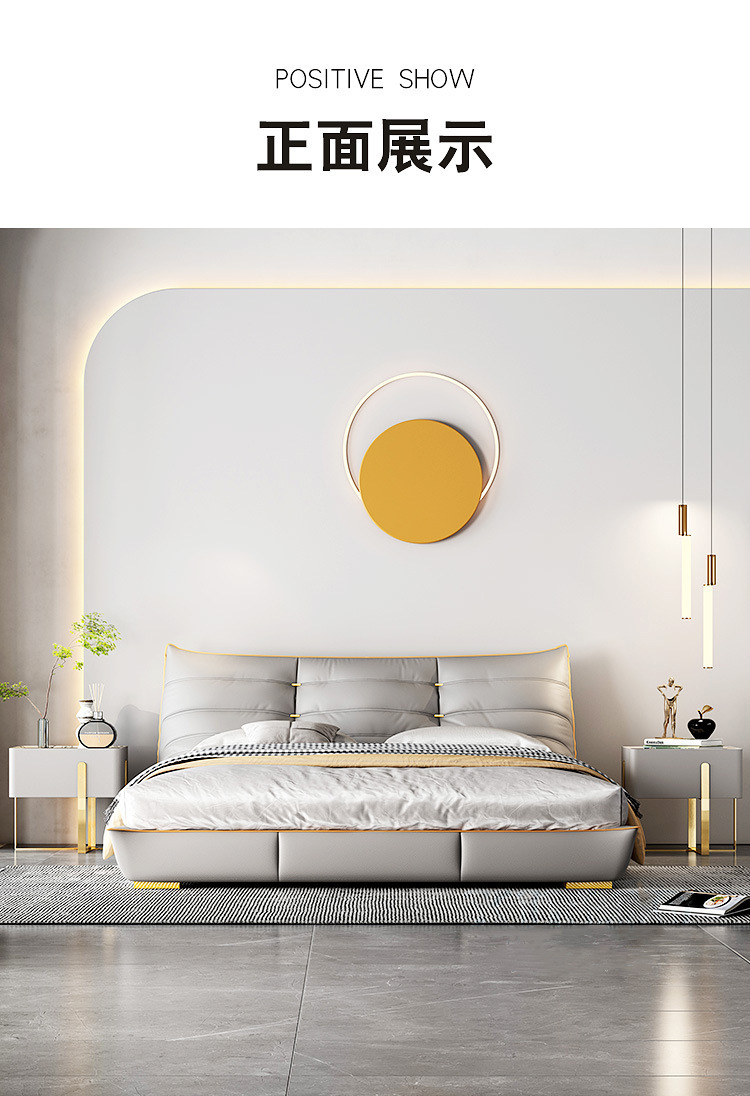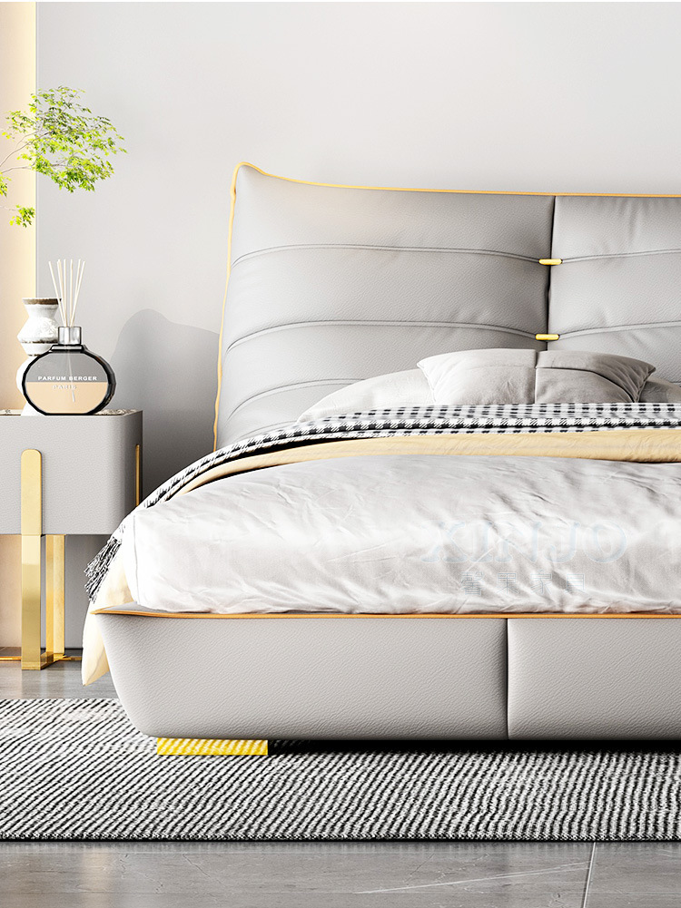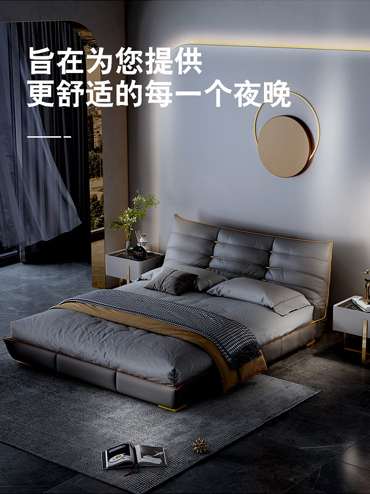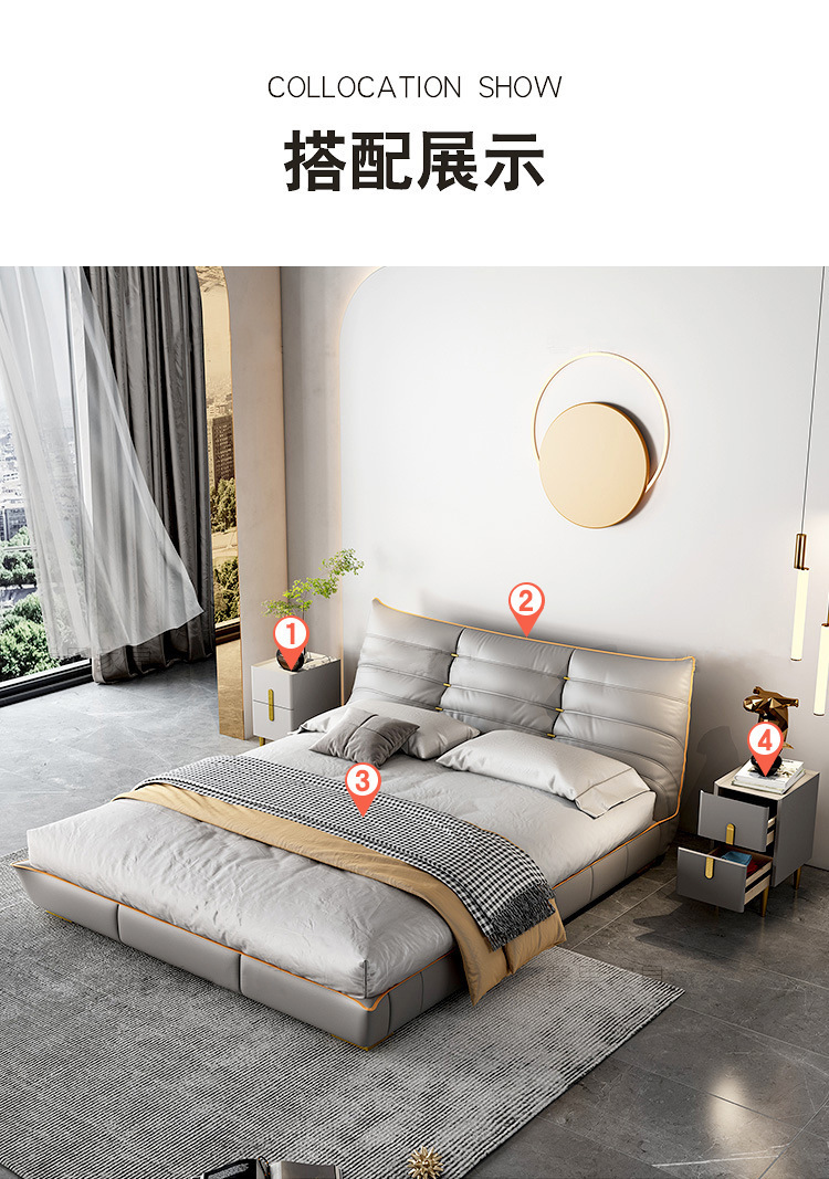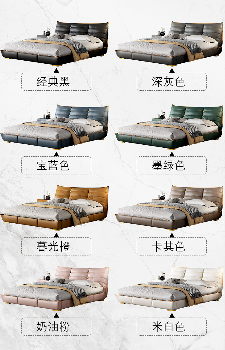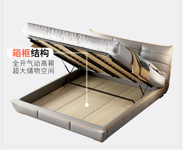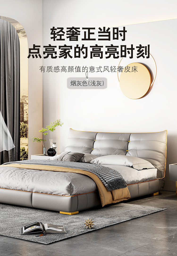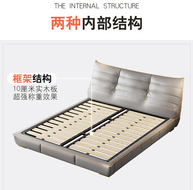 Luz de lujo cama de cuero genuino dormitorio principal italiano minimalista de alta gama elegante cama de boda simple Caterpillar cama doble 1,8 m muebles