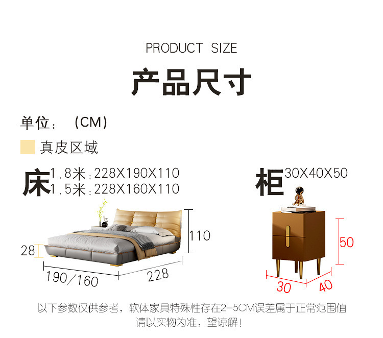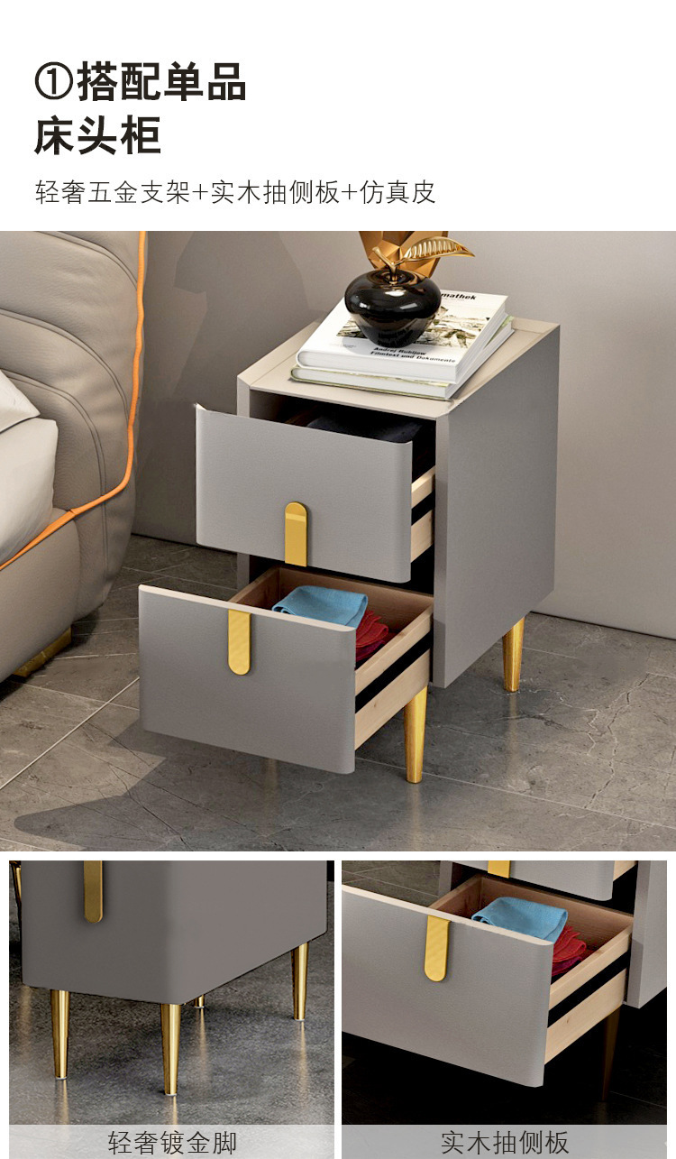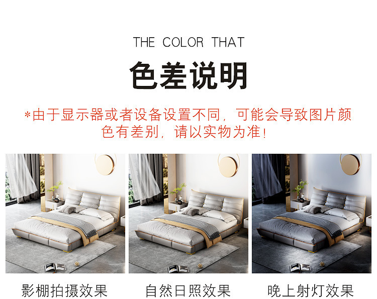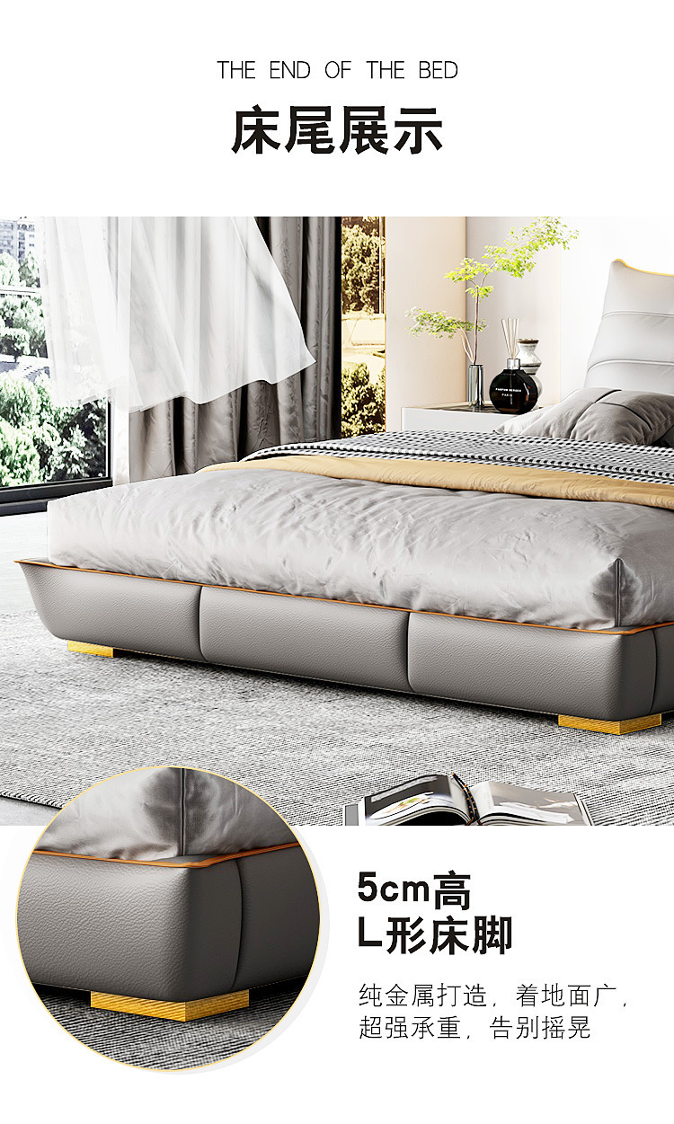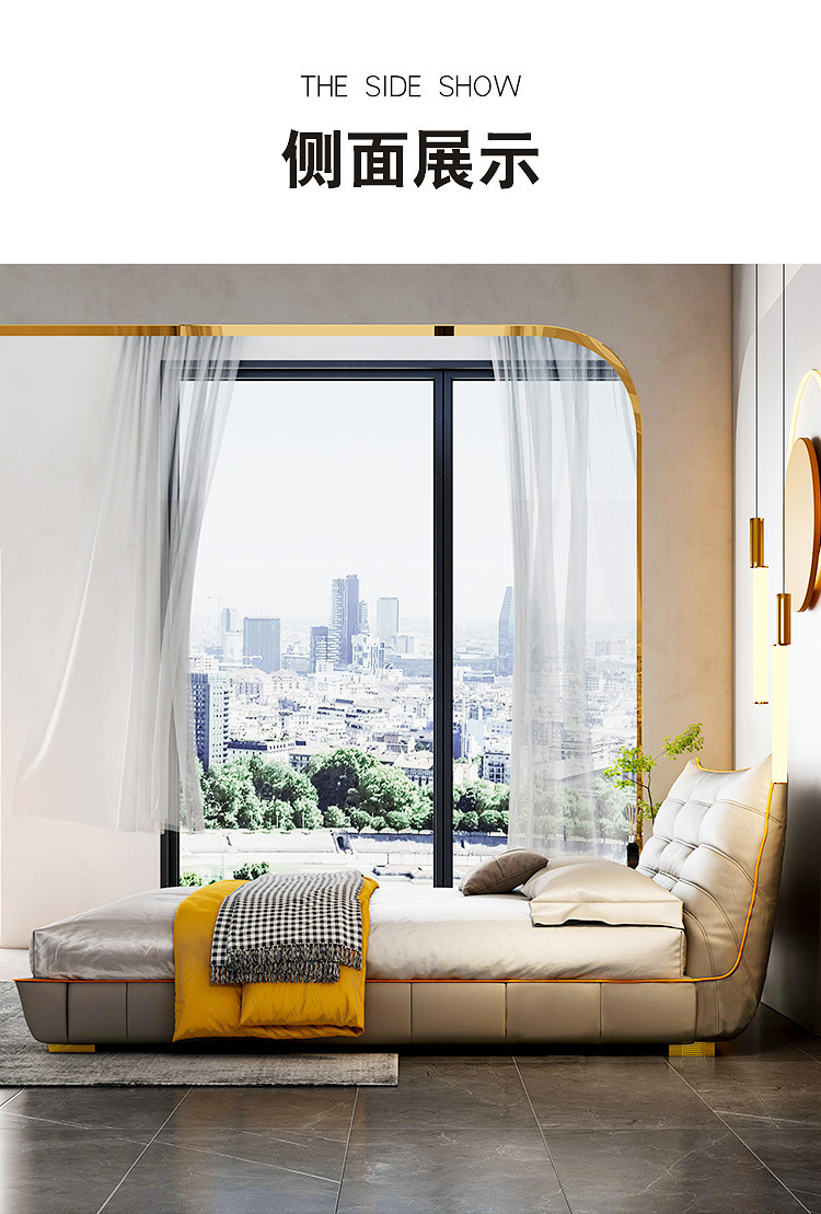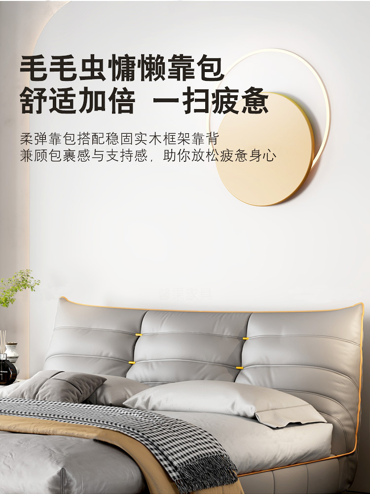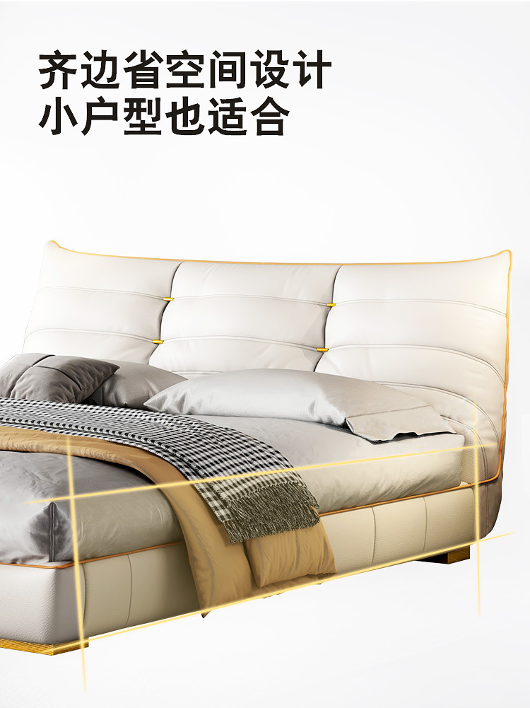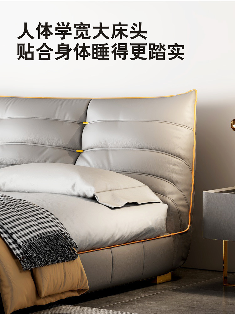 Luz de lujo cama de cuero genuino dormitorio principal italiano minimalista de alta gama elegante cama de boda simple Caterpillar cama doble 1,8 m muebles