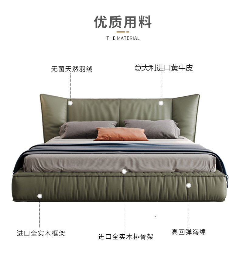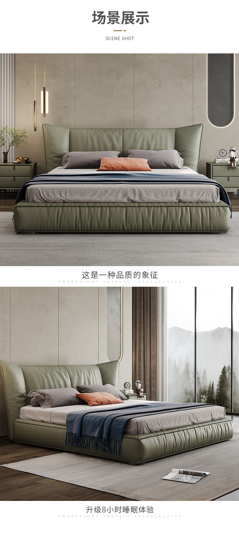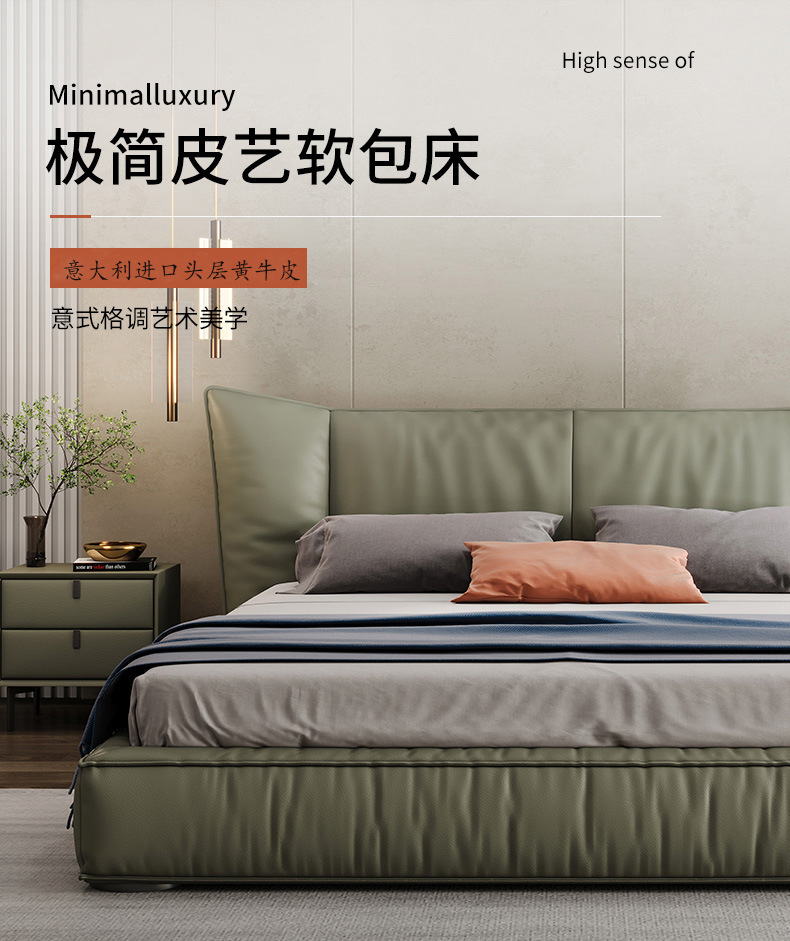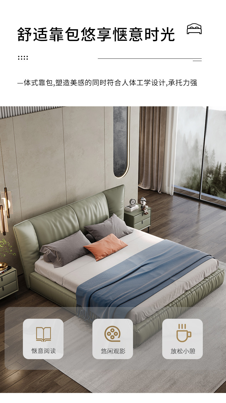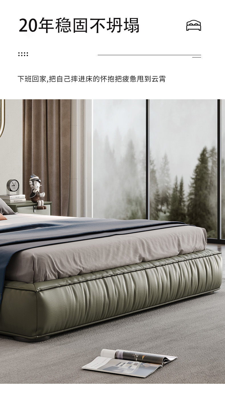 Cama de cuero genuino dormitorio principal elegante cama doble italiano minimalista primera capa piel de vaca simple bolsa suave cama de cuero 1,8*2 m cama de boda