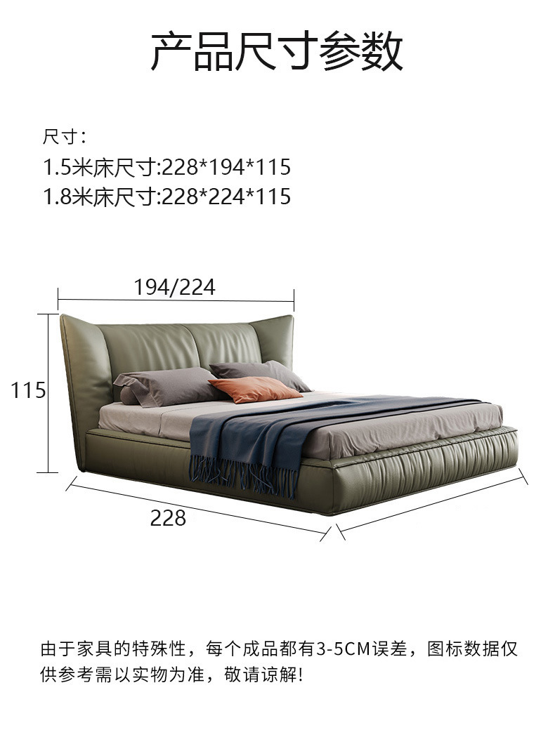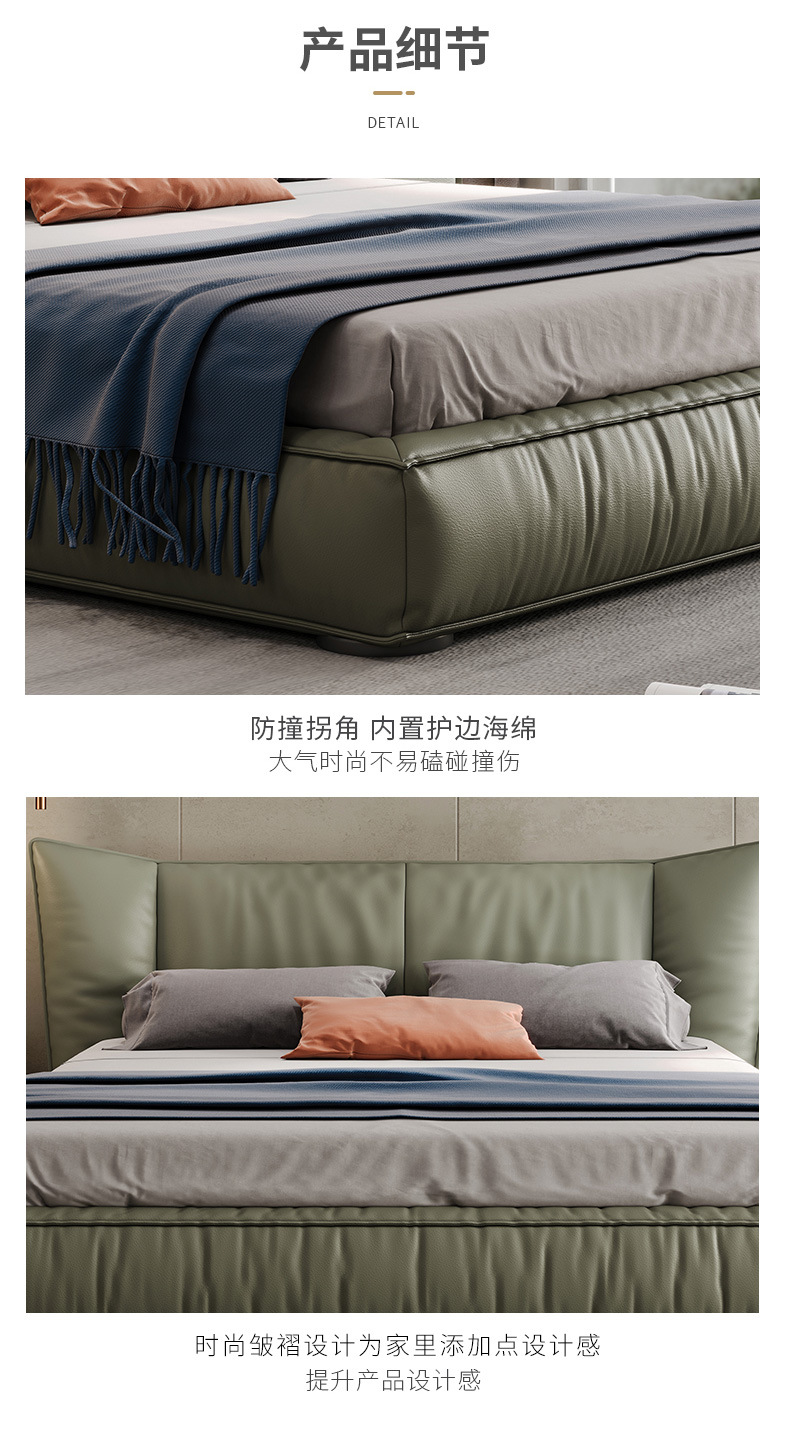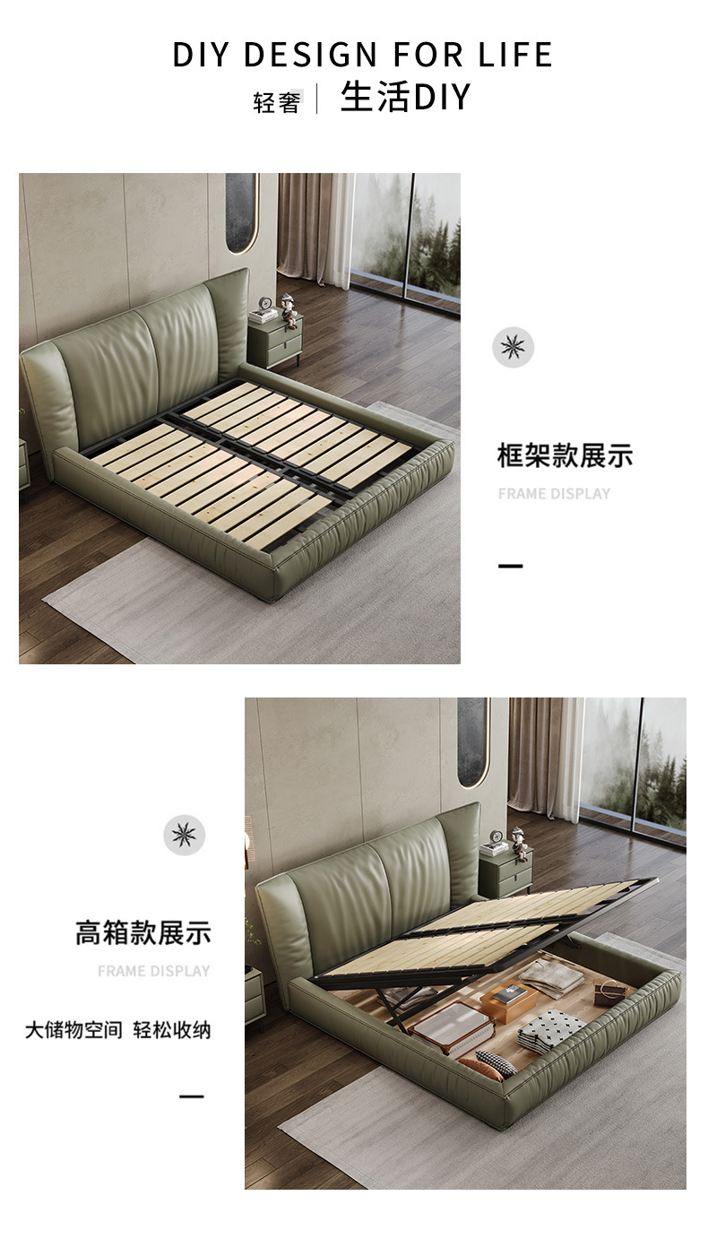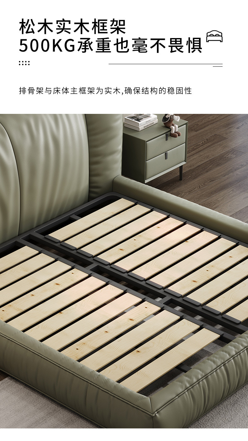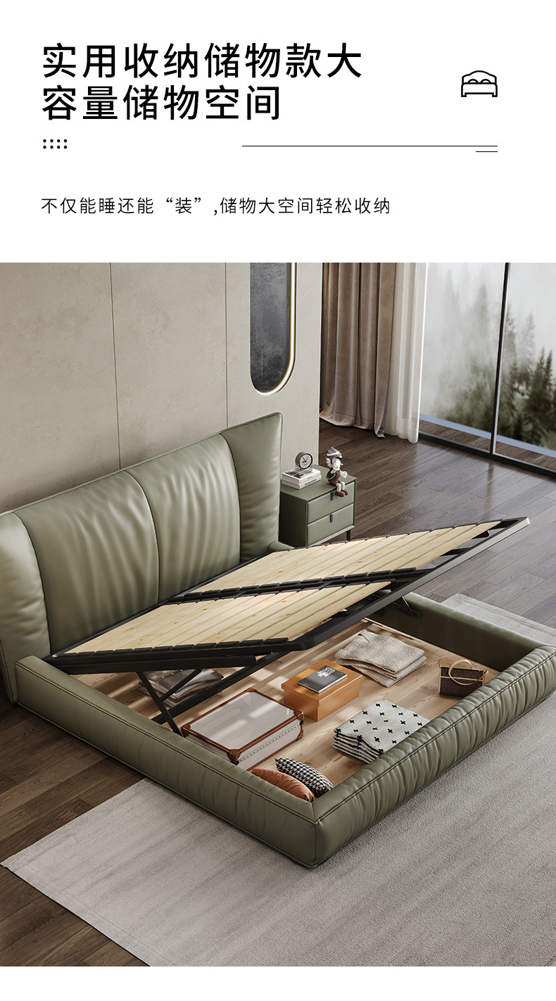 Cama de cuero genuino dormitorio principal elegante cama doble italiano minimalista primera capa piel de vaca simple bolsa suave cama de cuero 1,8*2 m cama de boda