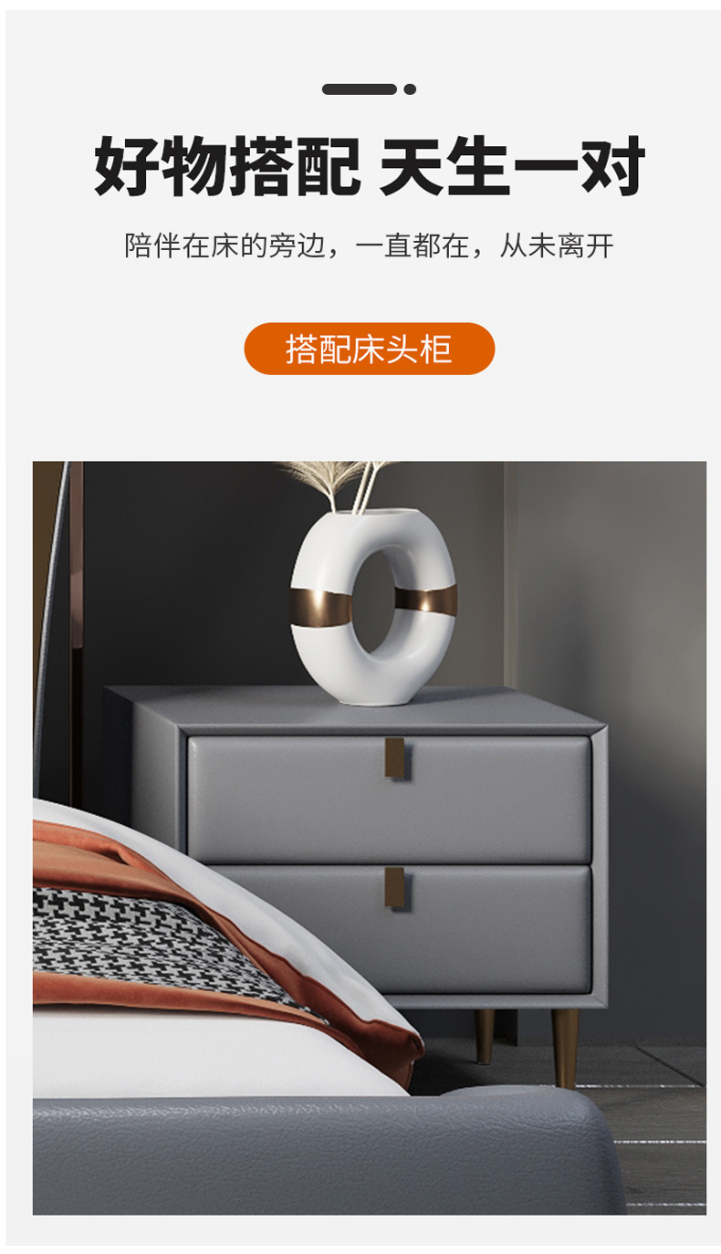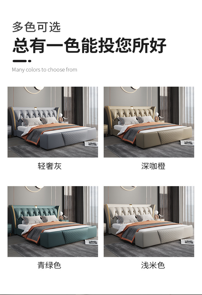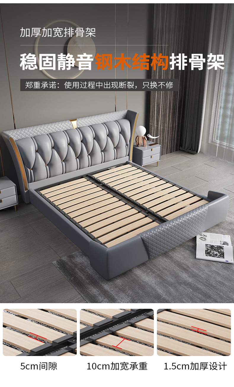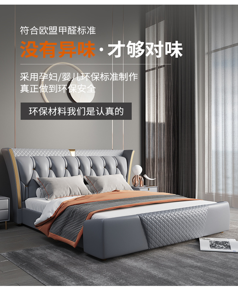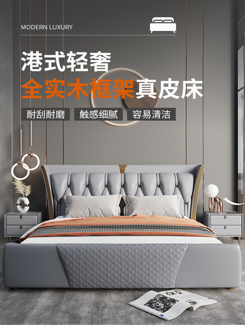 Luz de estilo italiano de lujo de cuero genuino cama moderna simple cama doble primera capa de piel de vaca dormitorio principal Internet celebridad cama suave de alta gama elegante cama de boda