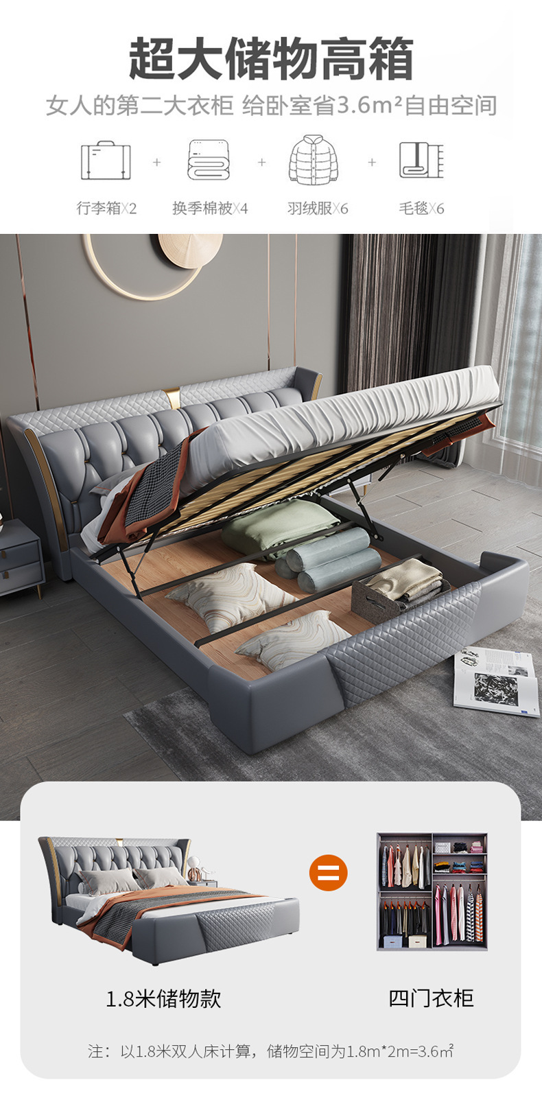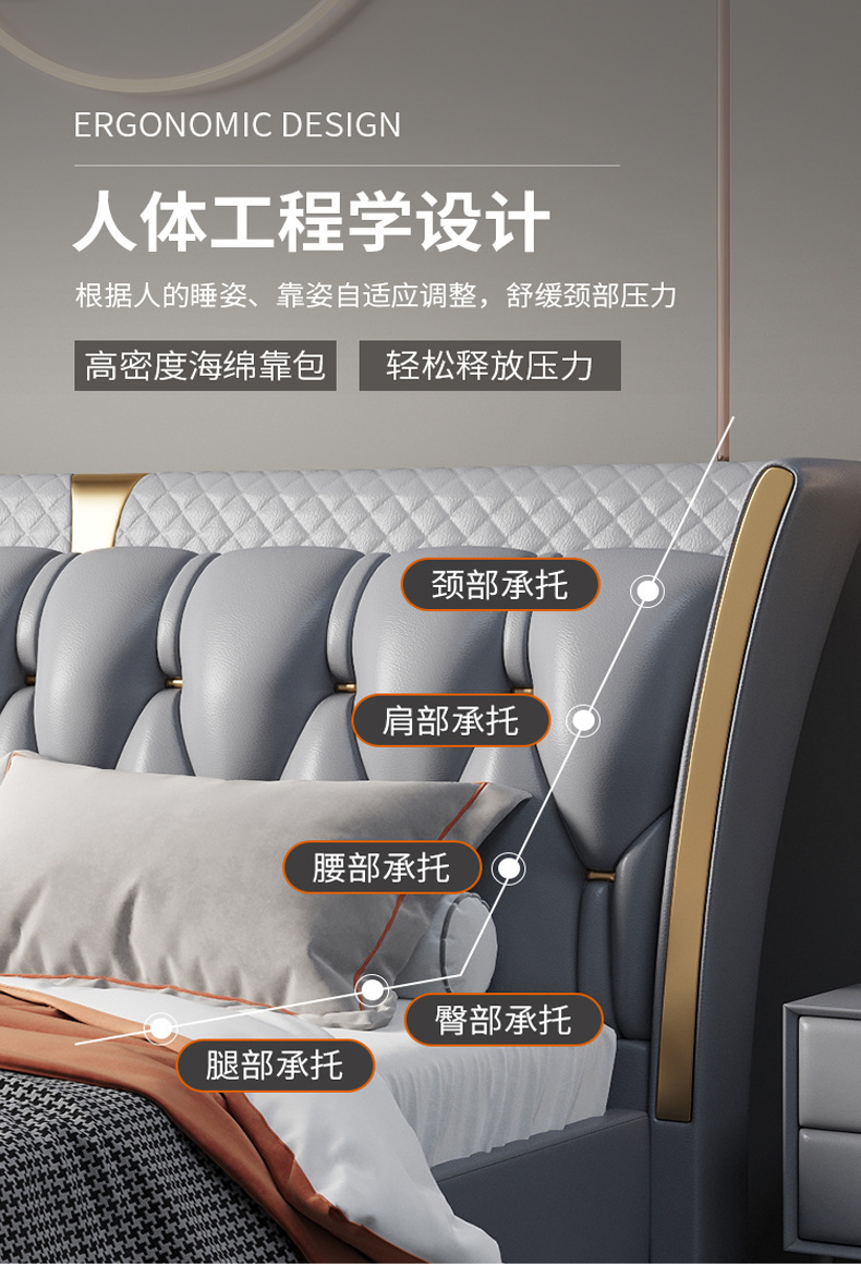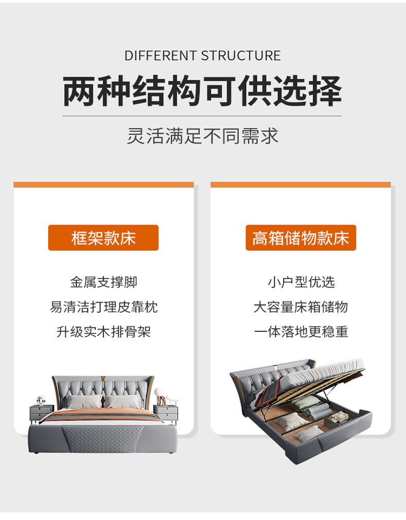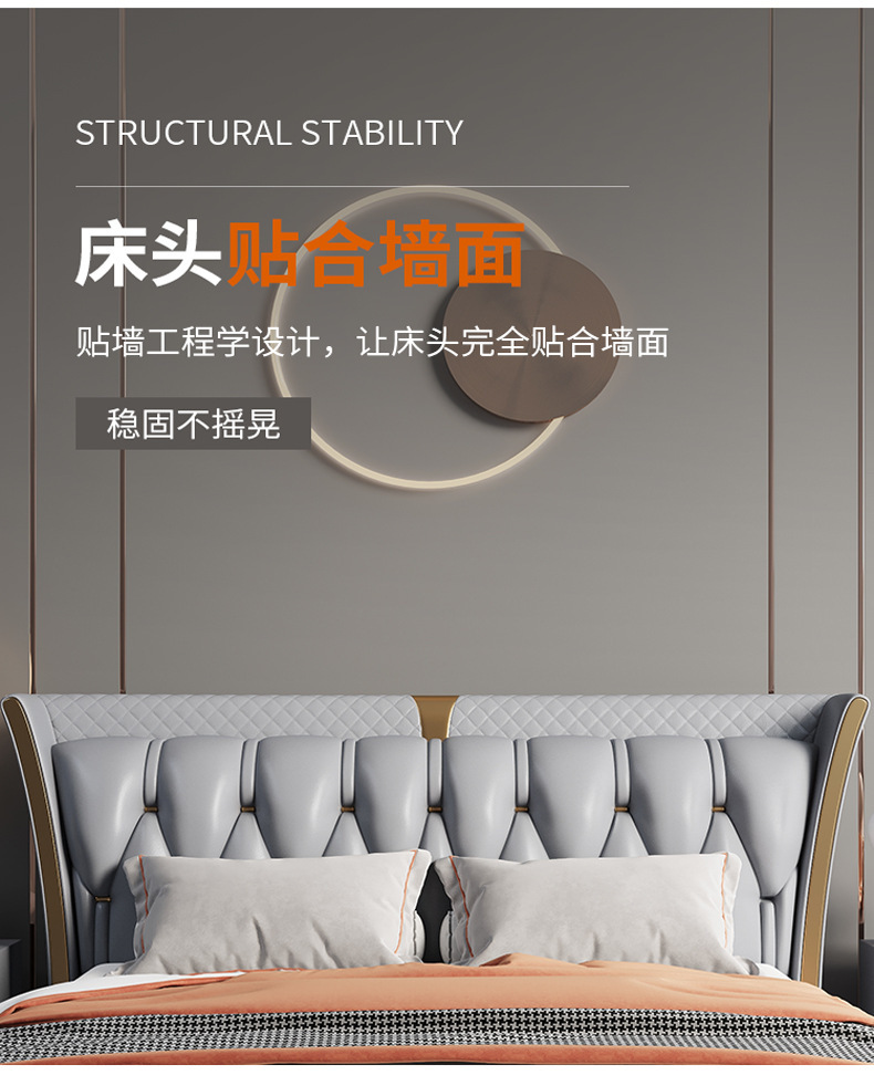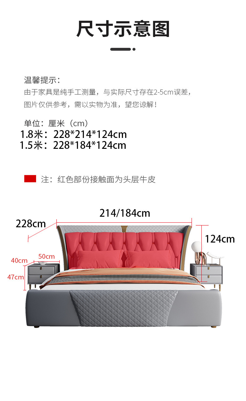 Luz de estilo italiano de lujo de cuero genuino cama moderna simple cama doble primera capa de piel de vaca dormitorio principal Internet celebridad cama suave de alta gama elegante cama de boda