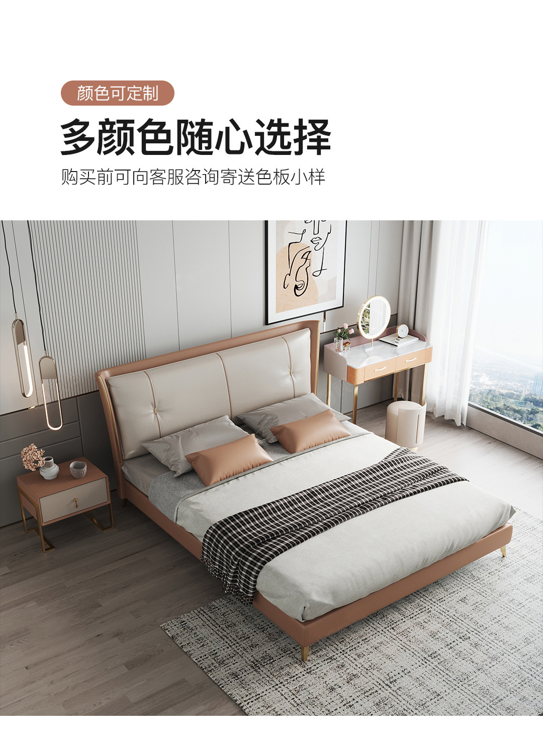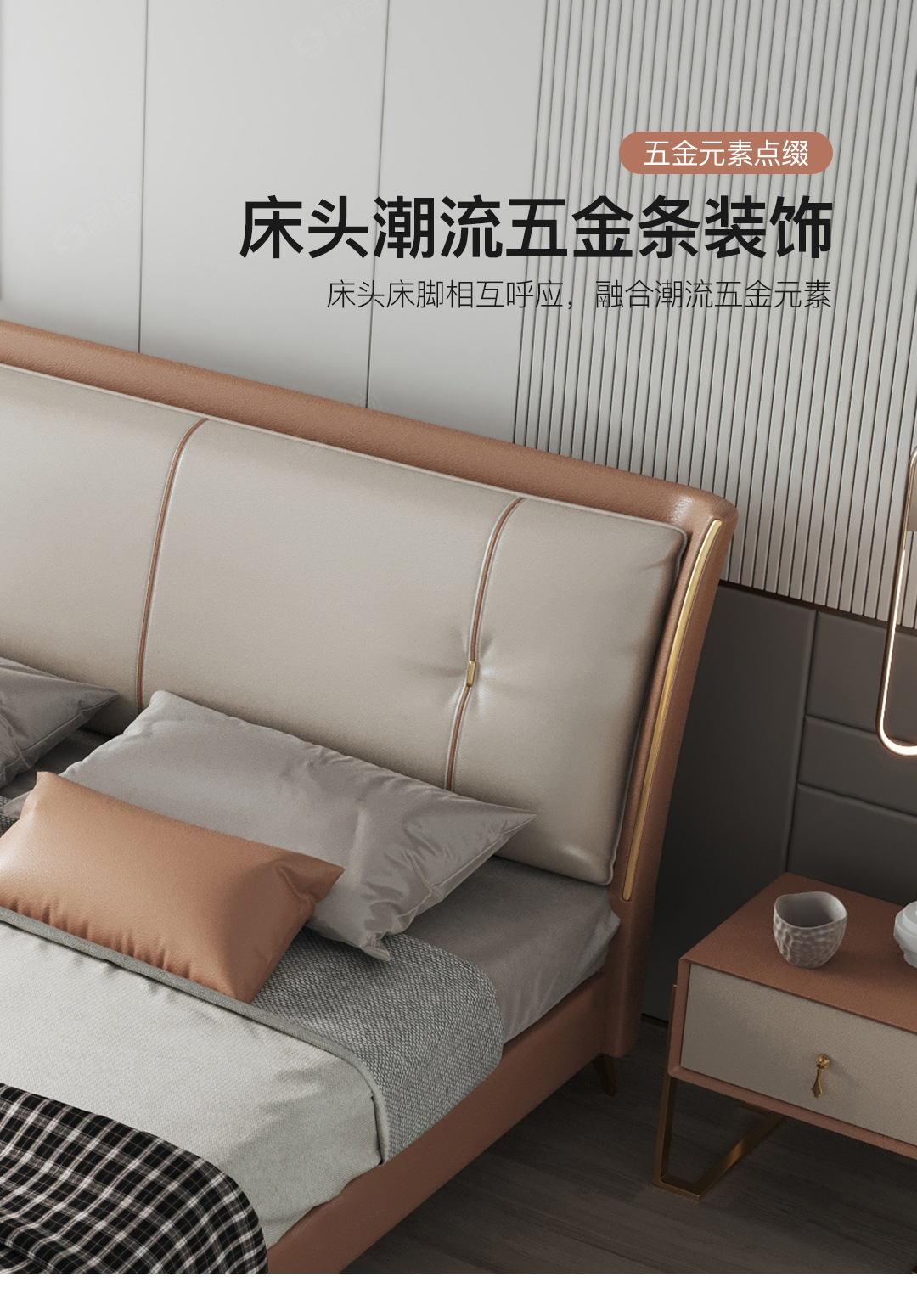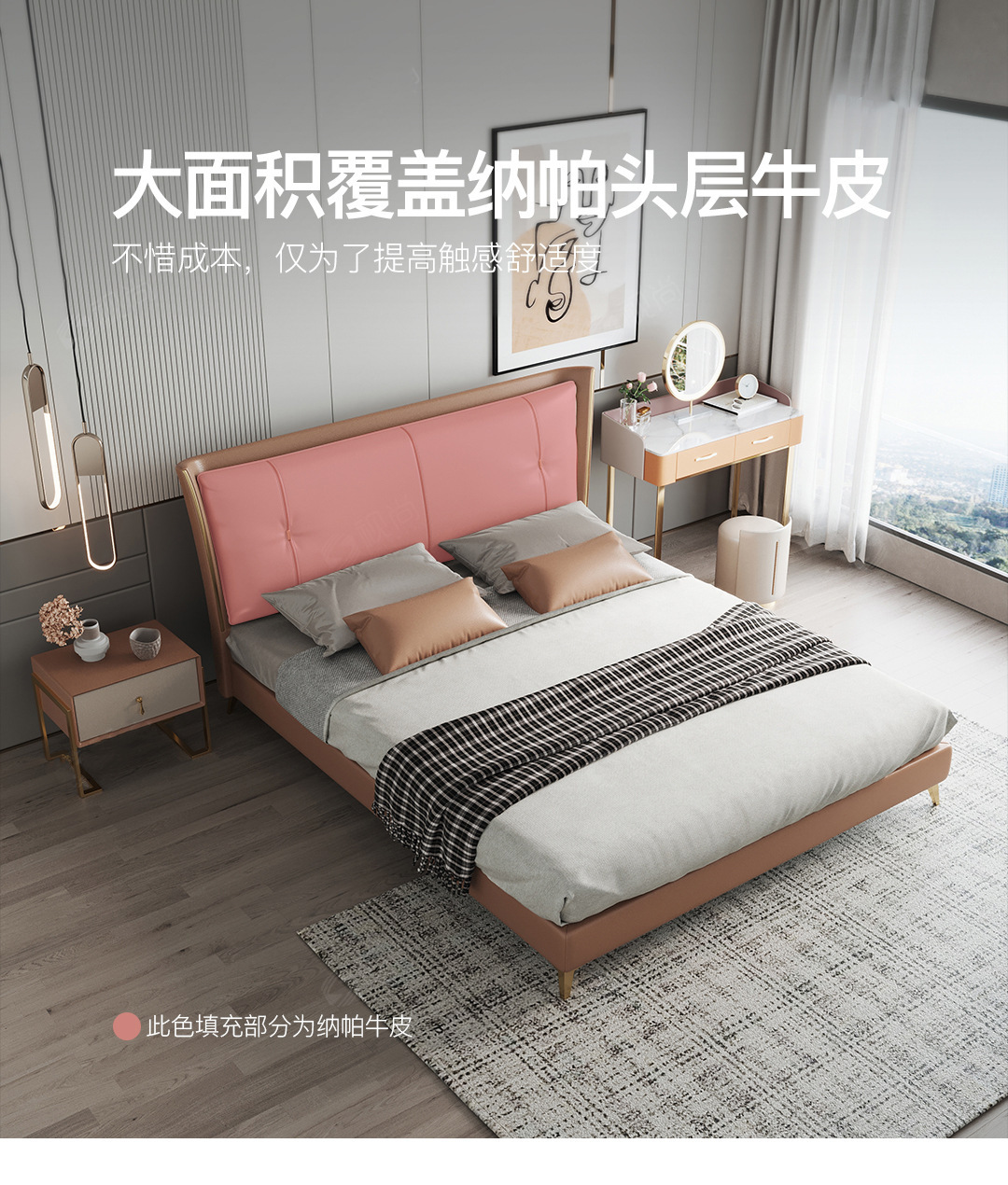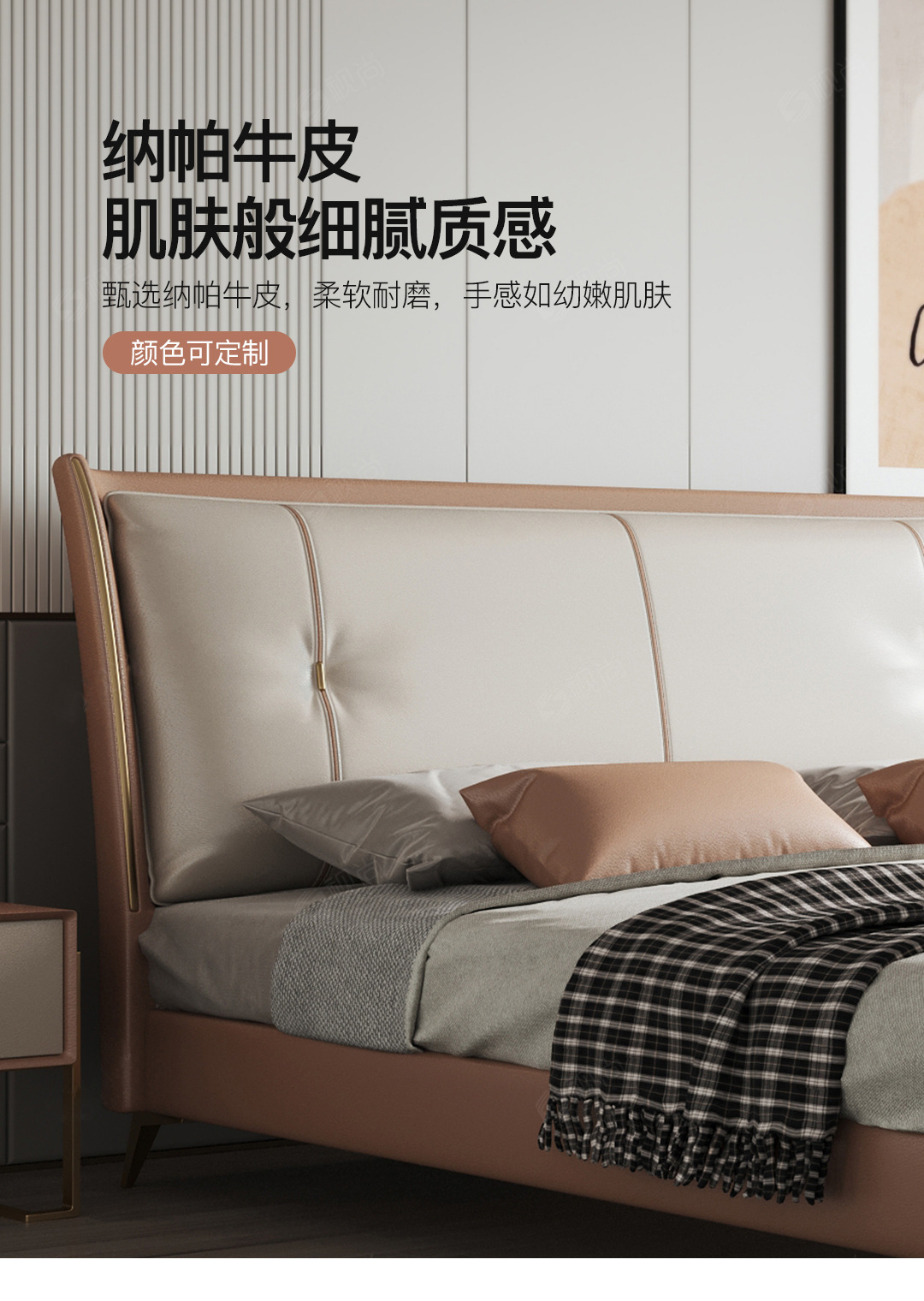 Luz de lujo moderno cama de cuero genuino primera capa de piel de vaca cama doble nórdica simple italiano pequeño apartamento cama de cuero dormitorio principal cama de boda
