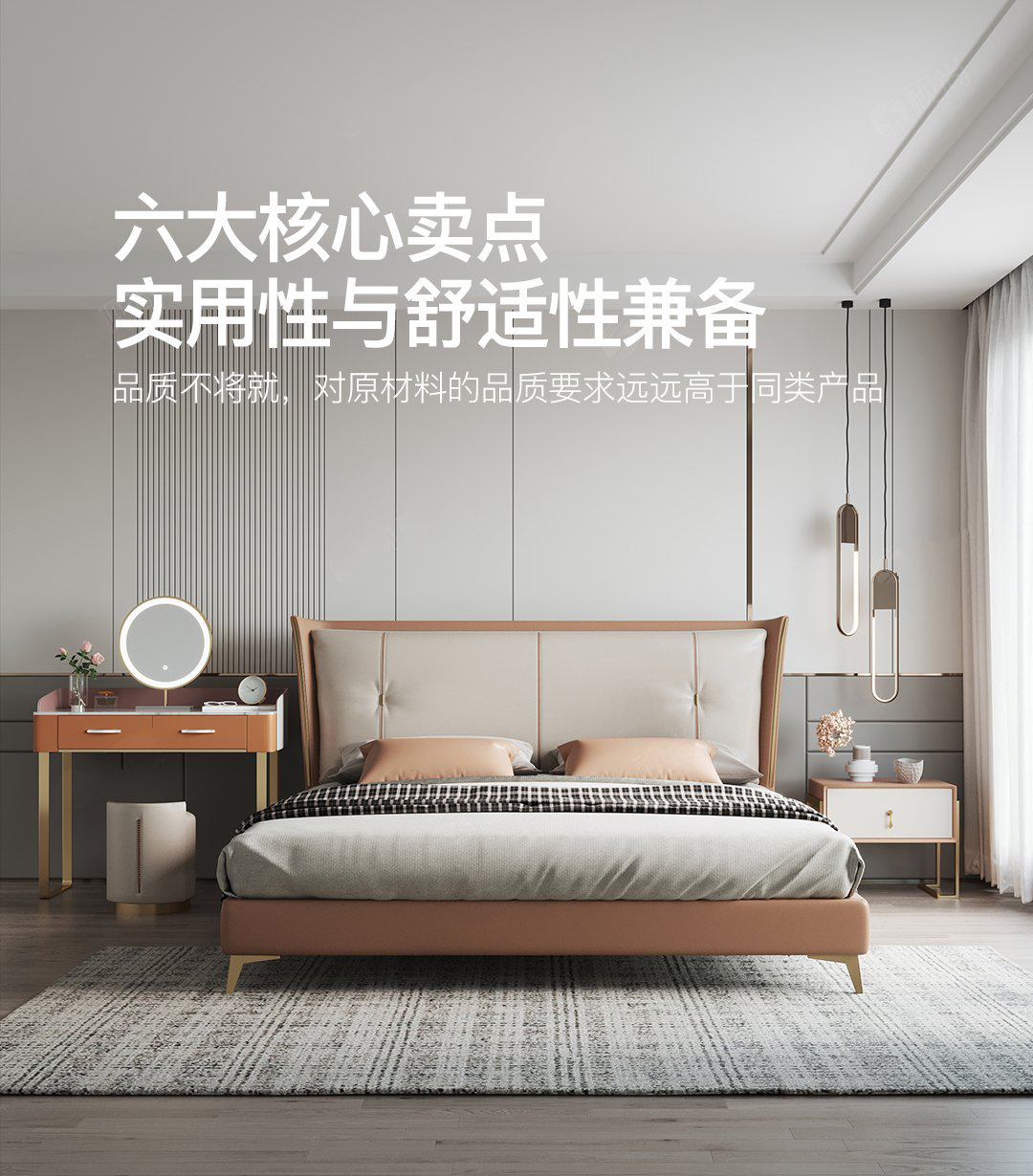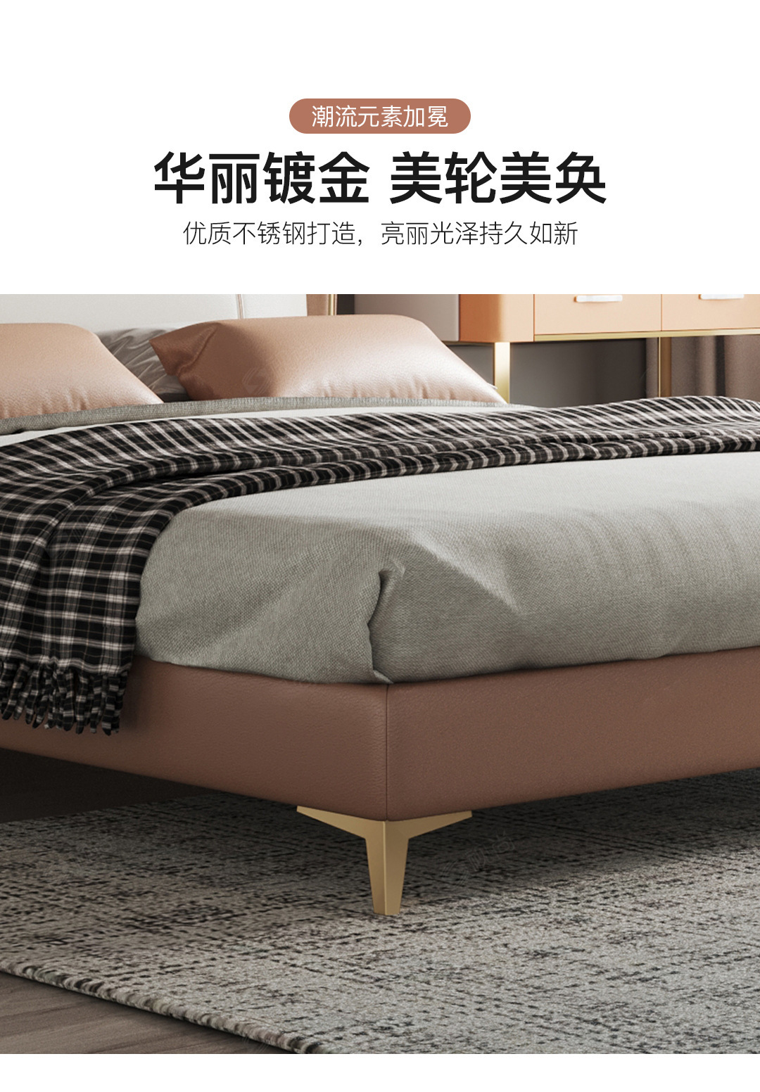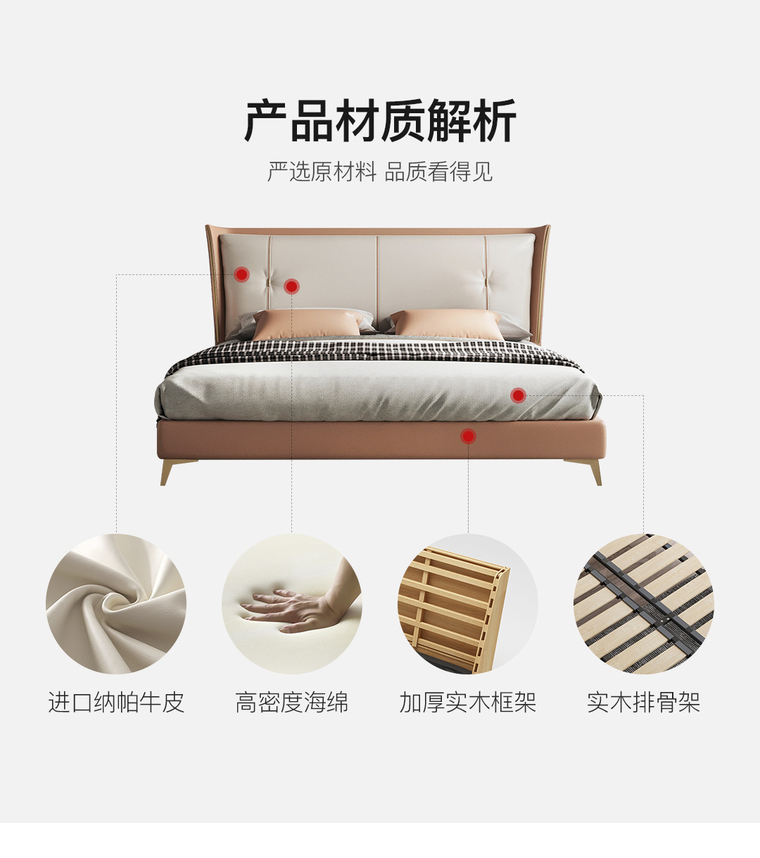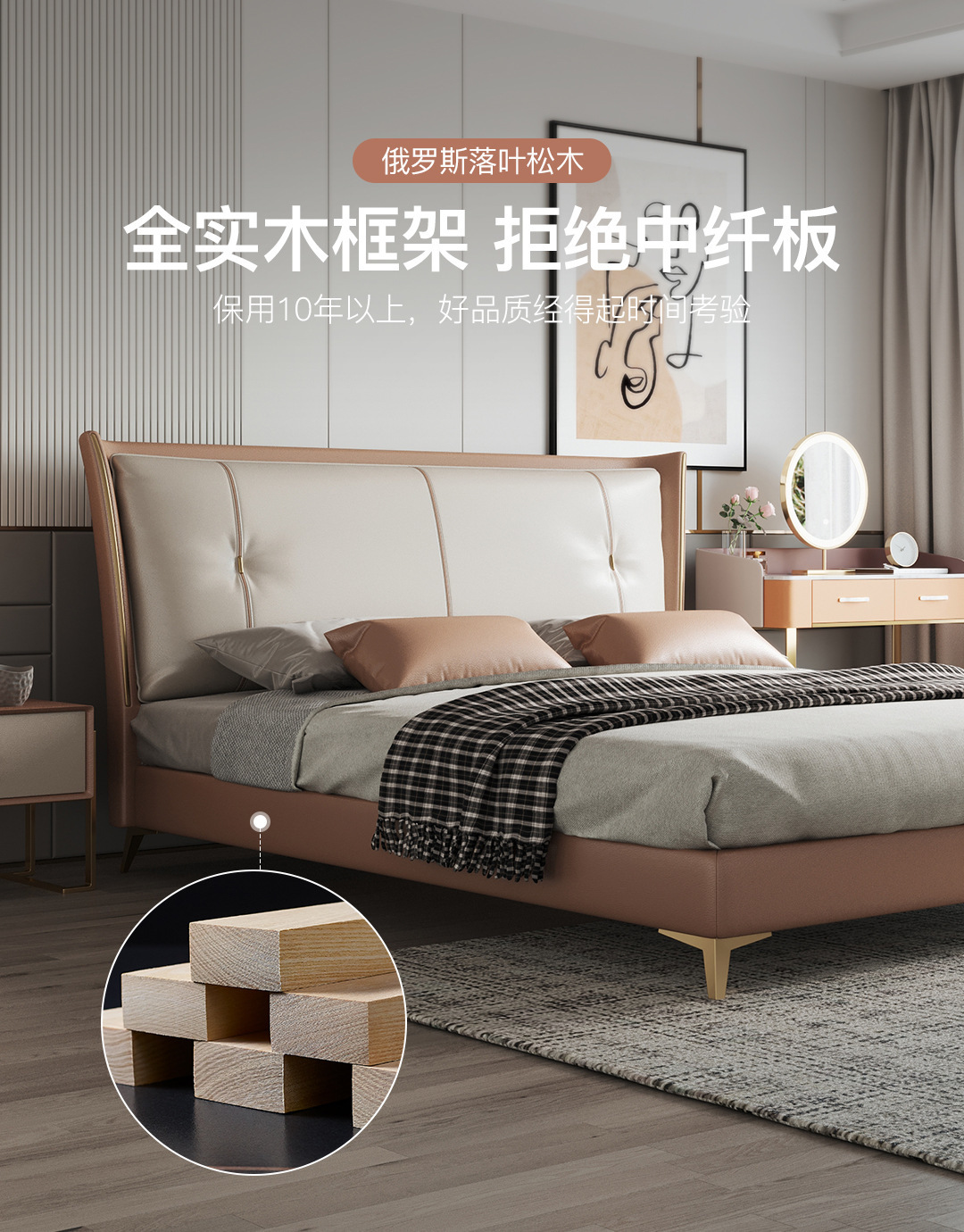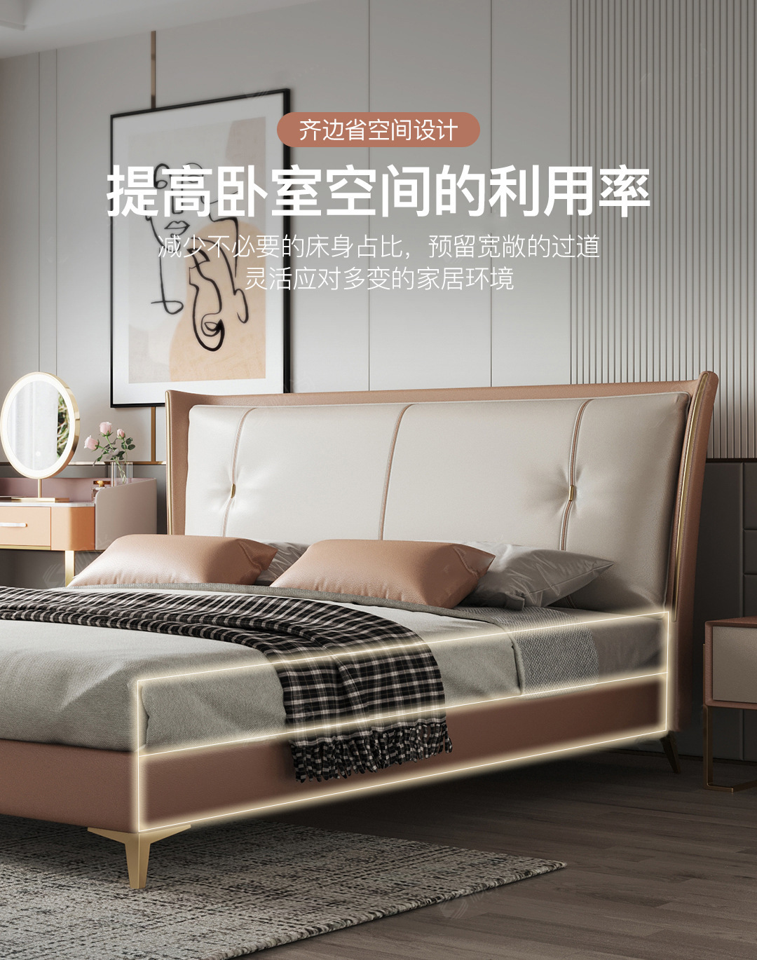 Luz de lujo moderno cama de cuero genuino primera capa de piel de vaca cama doble nórdica simple italiano pequeño apartamento cama de cuero dormitorio principal cama de boda