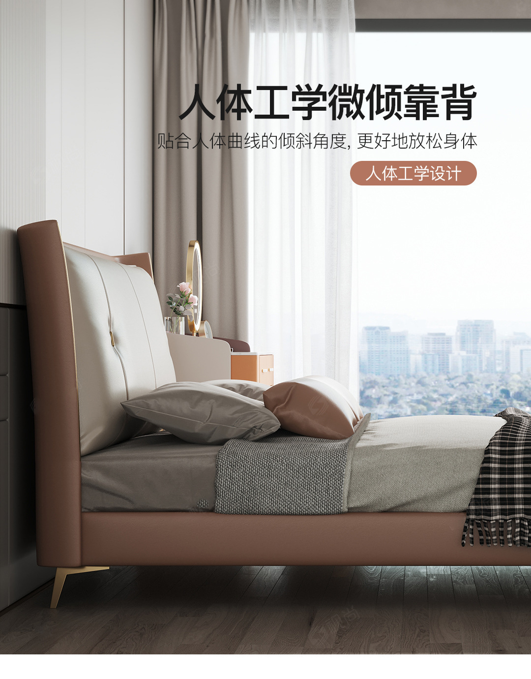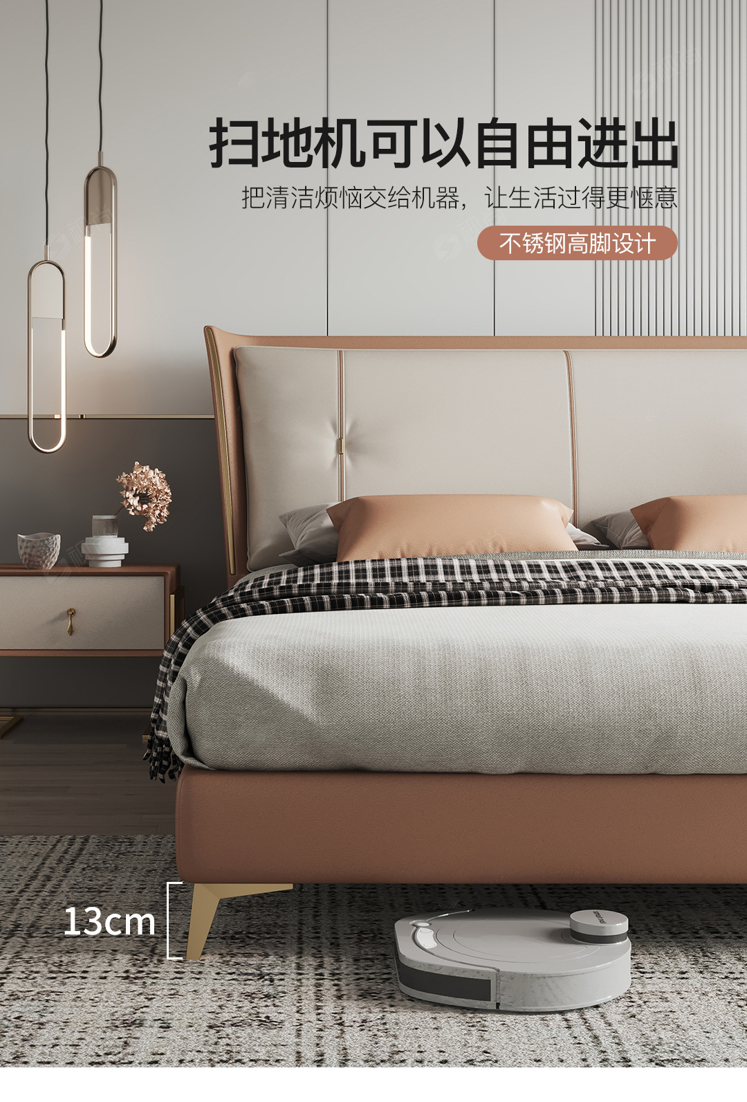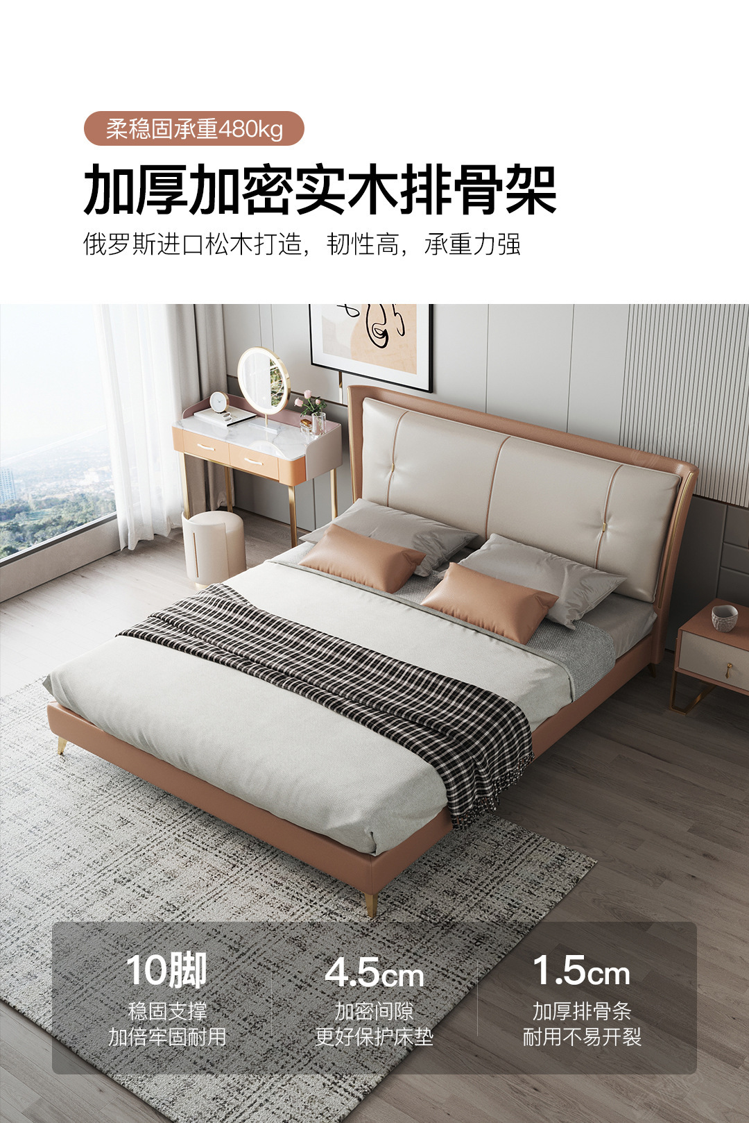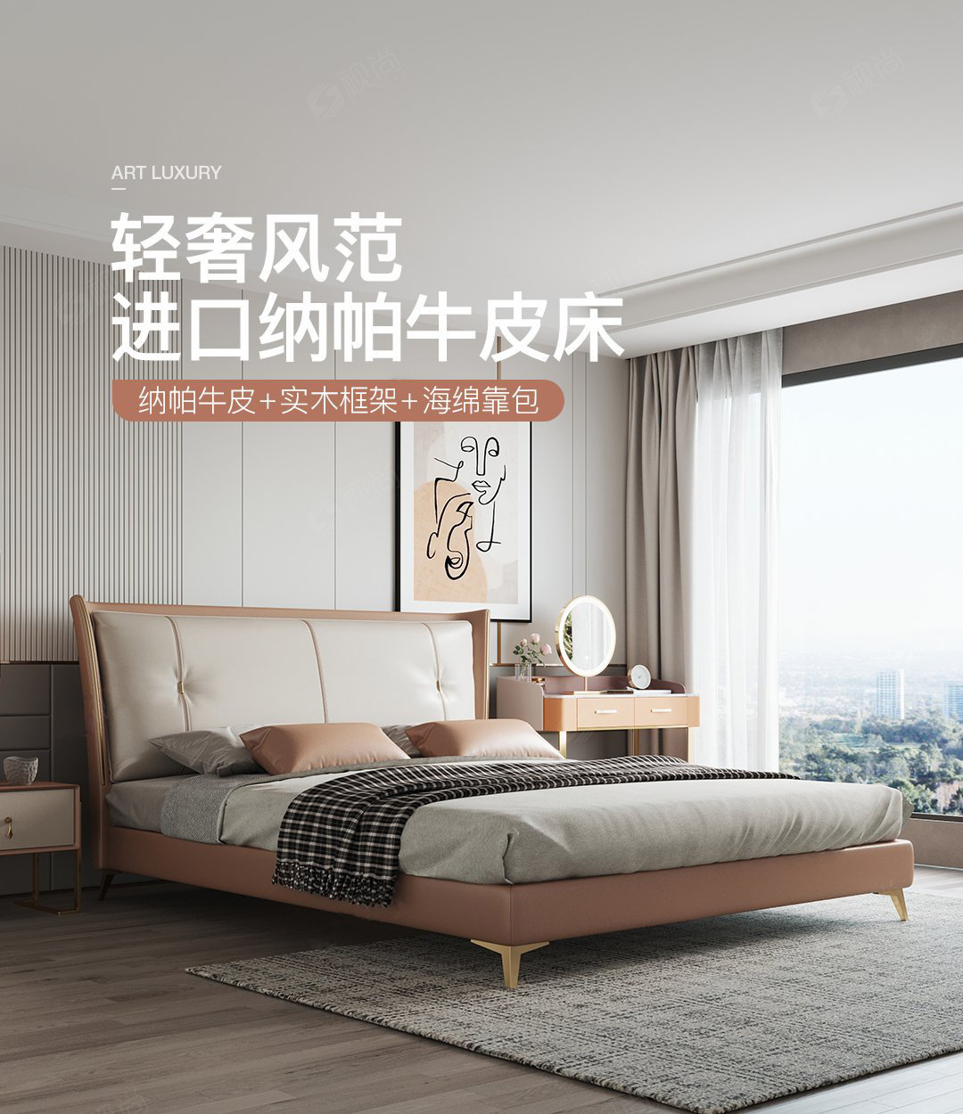 Luz de lujo moderno cama de cuero genuino primera capa de piel de vaca cama doble nórdica simple italiano pequeño apartamento cama de cuero dormitorio principal cama de boda
