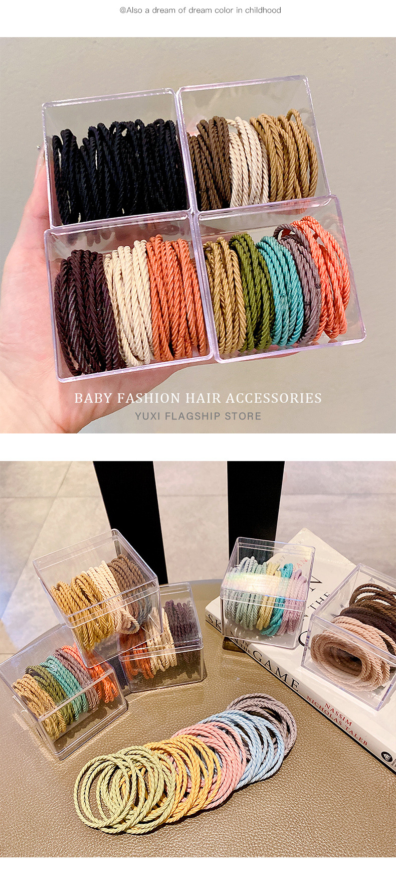 50 piezas en caja ~ banda de goma corbata de pelo femenino cuerda de cuero alta elástica durable pequeña cubierta de cuero Internet celebridad temperamento simple cuerda de pelo